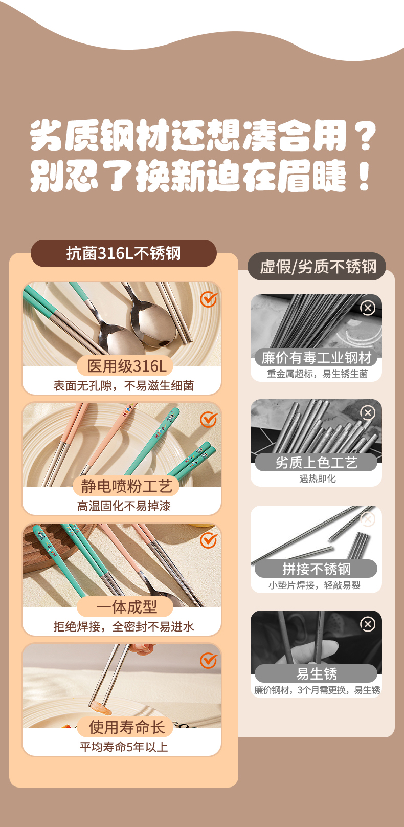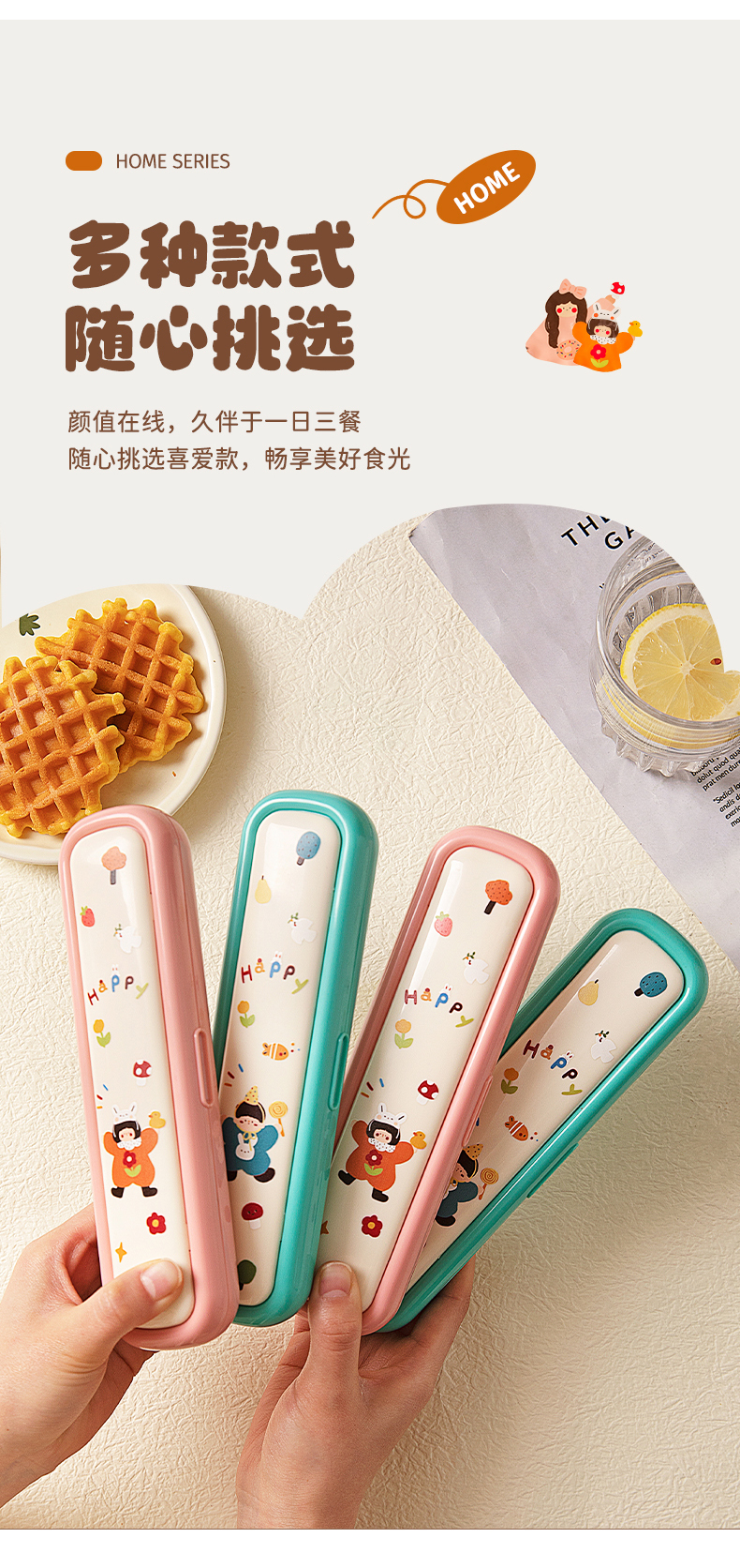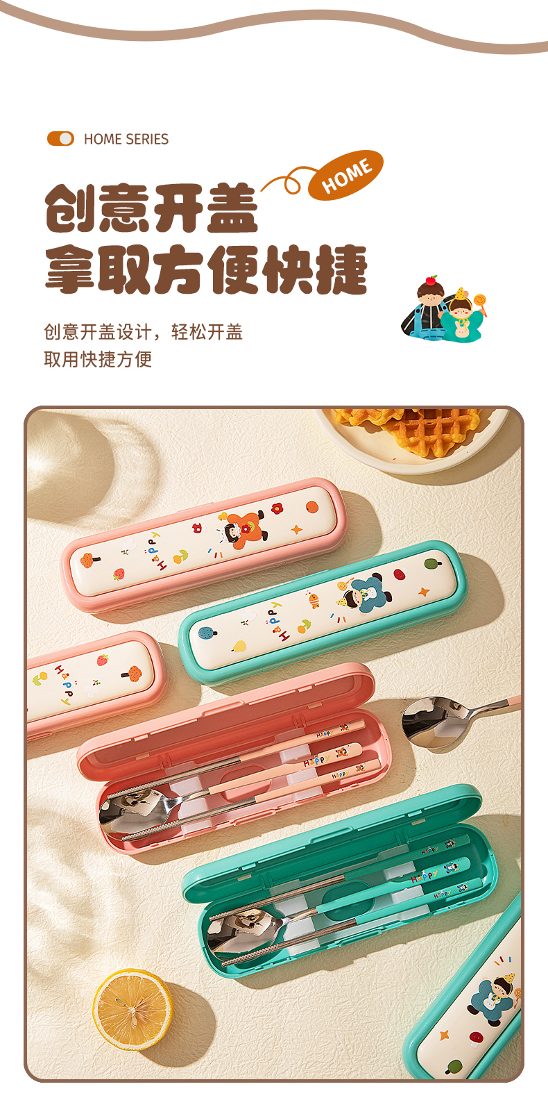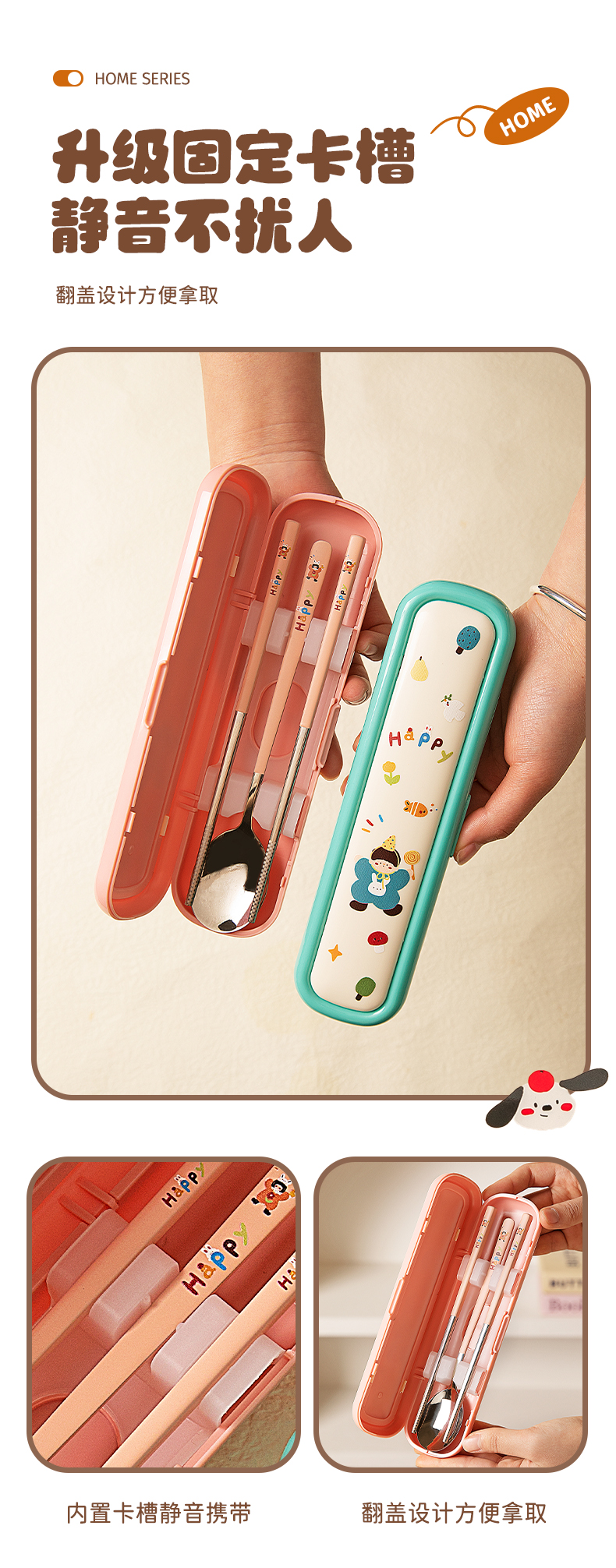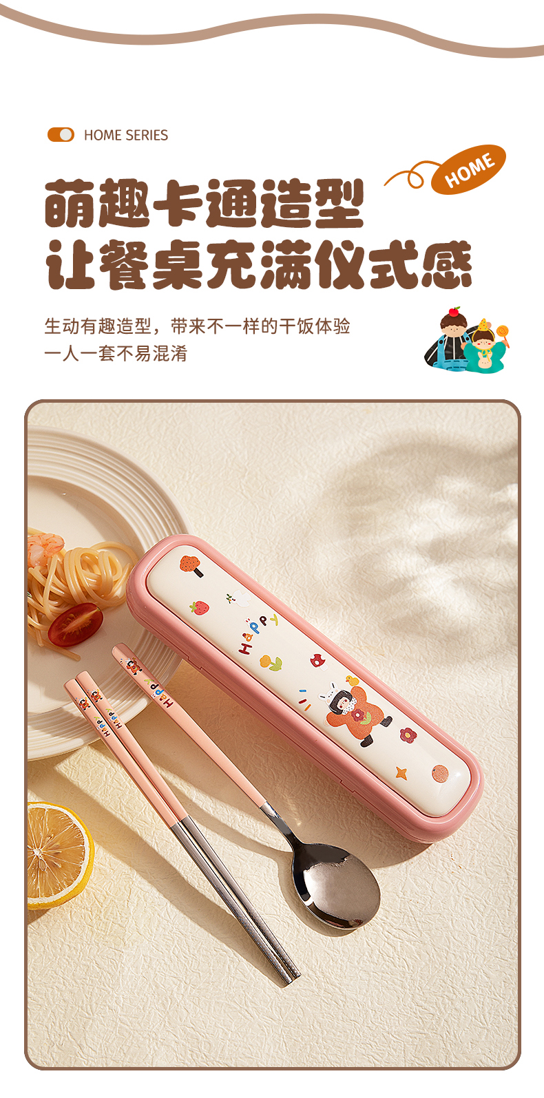 摩登主妇316L筷子勺子套装便捷餐具小学生一人专用外出携带收纳盒