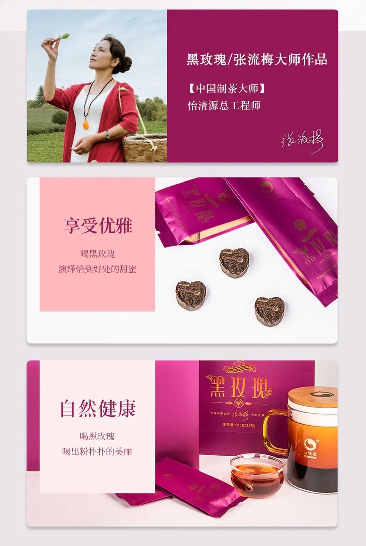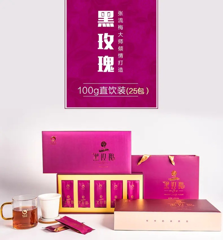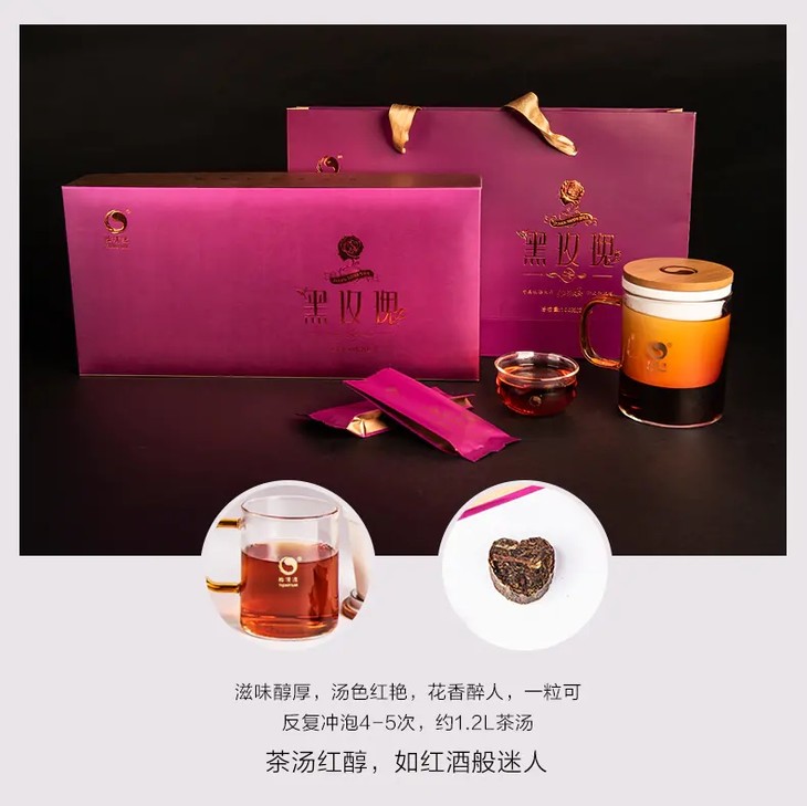 安化黑茶大师茶 黑玫瑰礼盒装100g心形颗粒25小袋