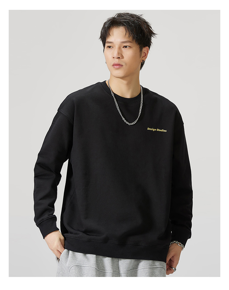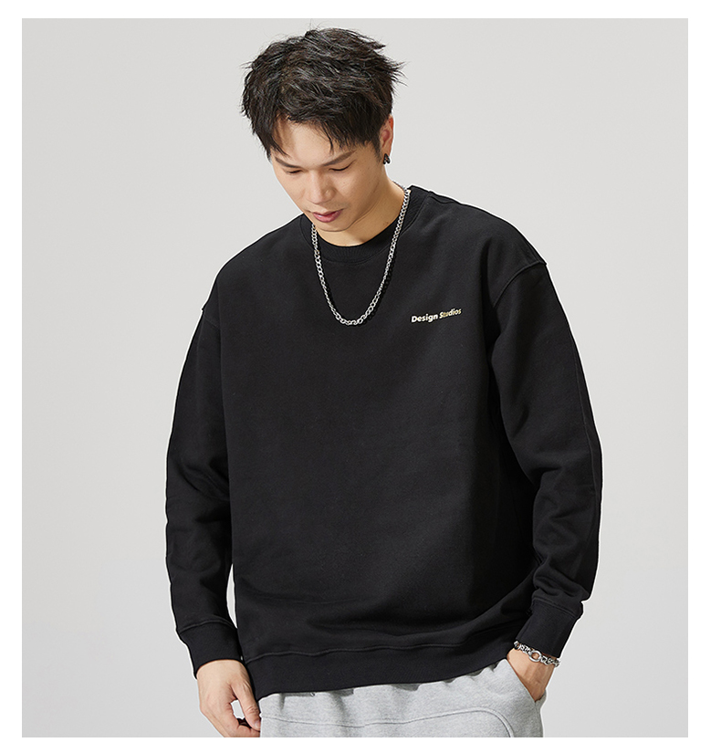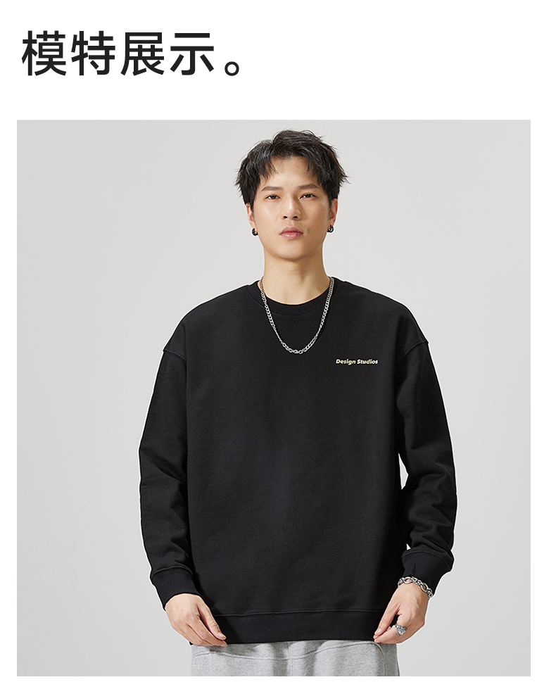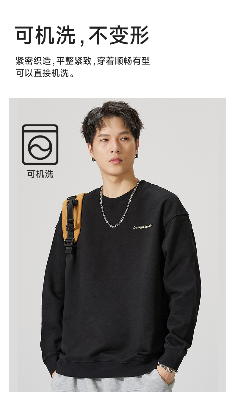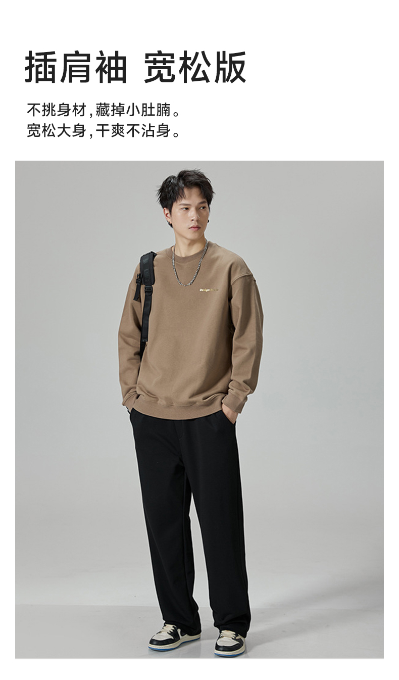 【重磅纯棉】【新款DQ】大依优型大码男装圆领卫衣长袖T恤撞色插肩袖潮胖简约宽松休闲男士打底上衣