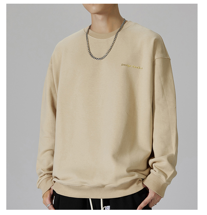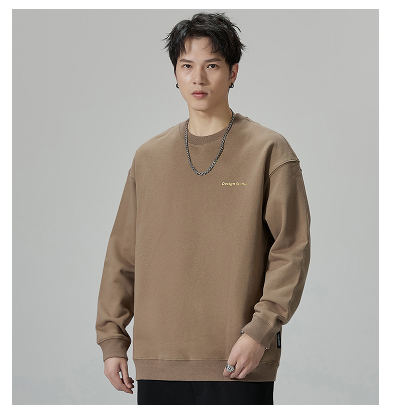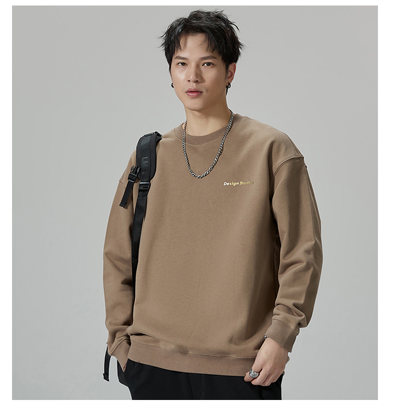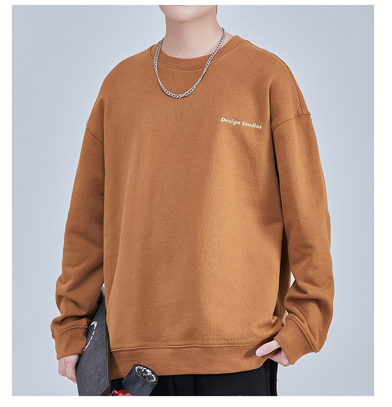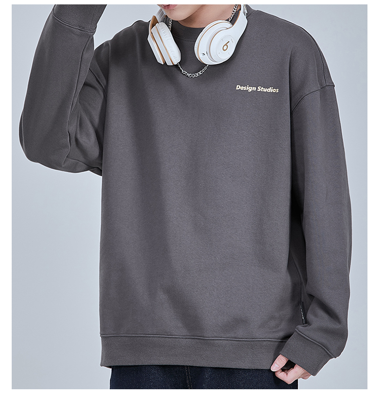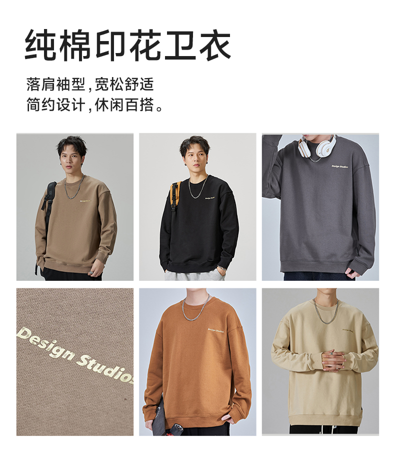 【重磅纯棉】【新款DQ】大依优型大码男装圆领卫衣长袖T恤撞色插肩袖潮胖简约宽松休闲男士打底上衣