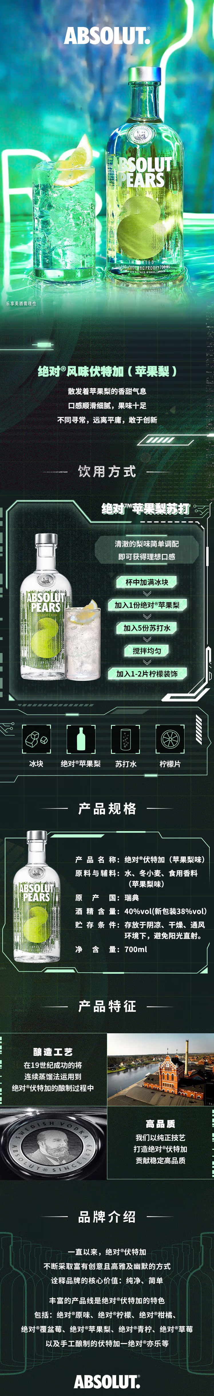ABSOLUT绝对伏特加 40度 苹果梨味