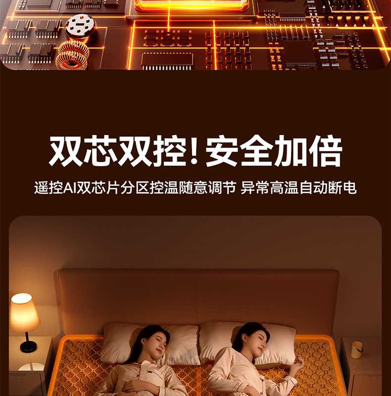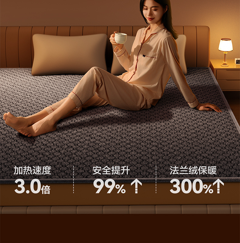 【石墨烯智能电热毯】新款双人暖被机电褥子 双控调温单人法兰绒电热毯