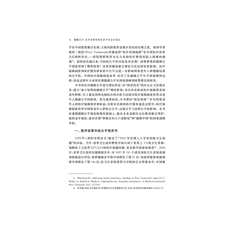 书名:健康公平:医疗保障制度改革中的老年福祉