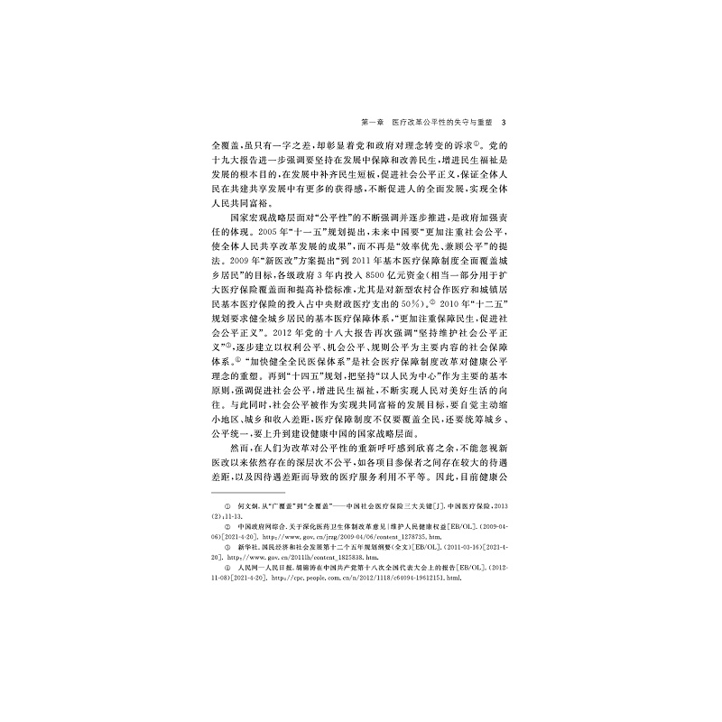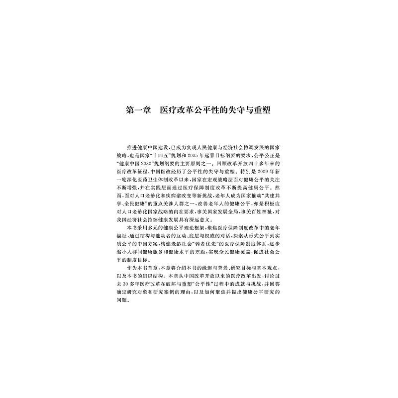 伴随着改革开放开始的中国医疗改革由于受到过度市场化的影响,一直在质疑声中前行。进入21世纪,社会医疗保障制度改革标志着中国医改“健康公平”之路的回归;2009年开始的新医改更是增加了财政投入,致力于解决“看病难”、“看病贵”问题。然而,经历了医改十年,在公平正义理念不断被强调的背后,对“健康公平”的理论界定与实证研究仍然相对匮乏。如今,在“积极应对人口老龄化”的国家战略背景下,本书采用多元的健康公平理论框架,聚焦于医疗保障制度改革对老年群体健康公平的影响,通过结构与能动者的互动、底层与quanwei的对话,探索从形式公平到实质公平的解决方案,构建中国老龄社会“弱者优先”的医疗保障制度,从而实现老年人健康风险的降低、医疗需求的满足乃至健康权益的保护。