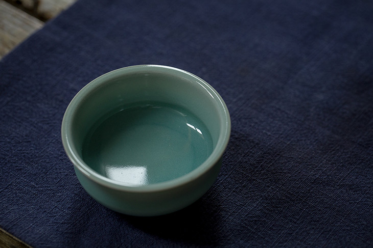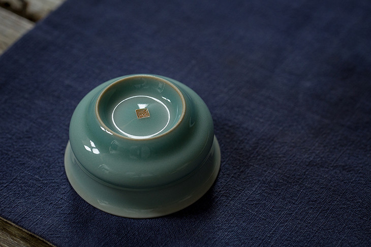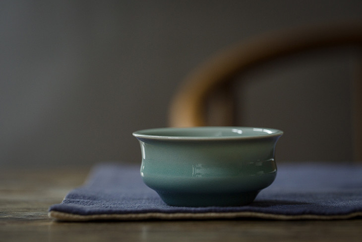 区分于寻常品杯,这款粉青沉腹杯杯身较扁,