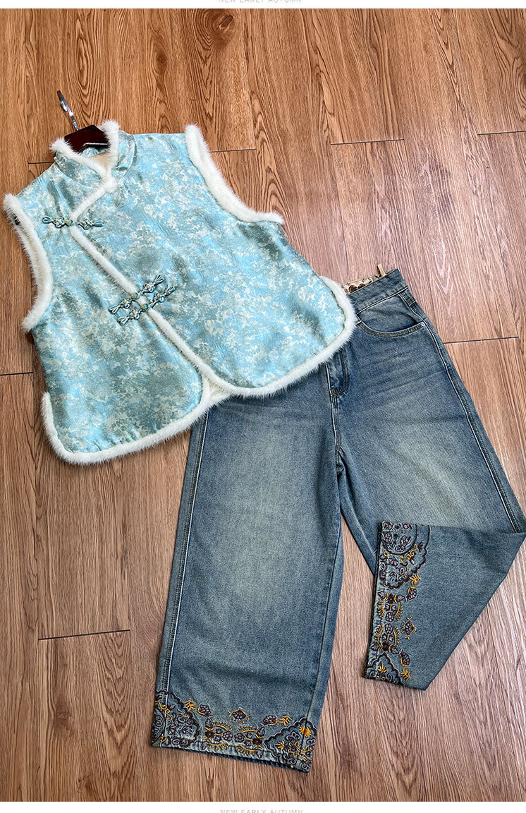 OG 8765新中式棉马甲保暖棉拼接无袖背心中国风秀气百搭外穿 商品图0