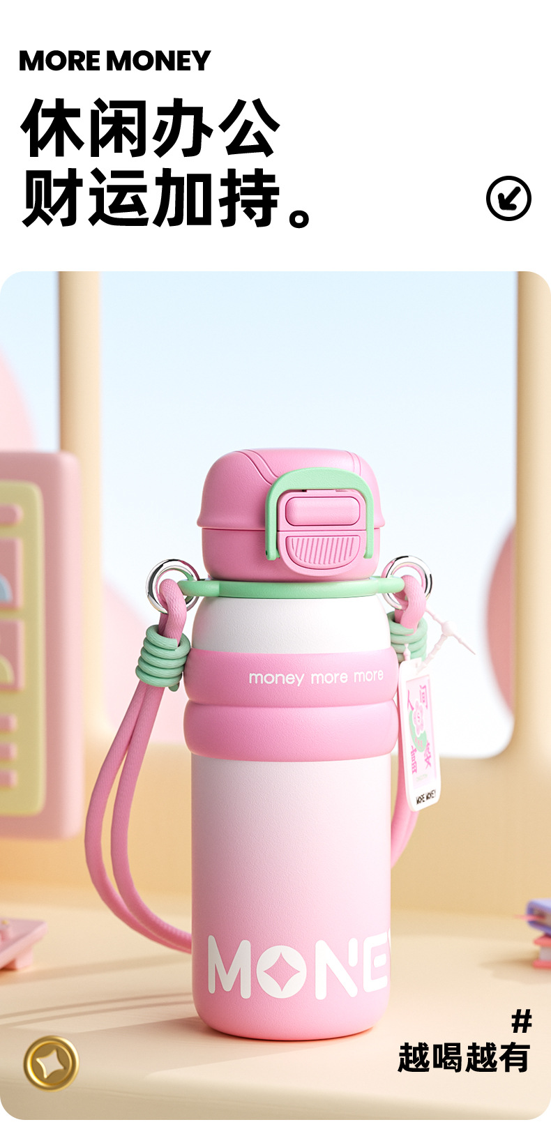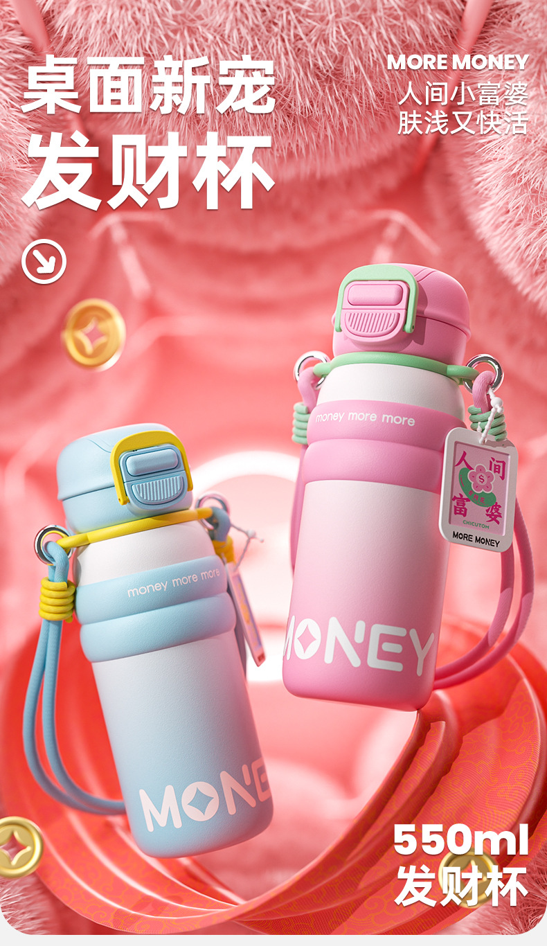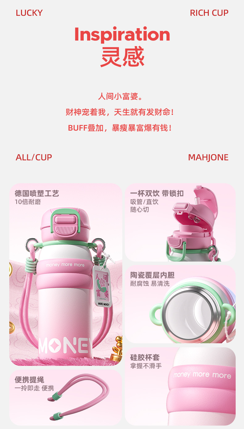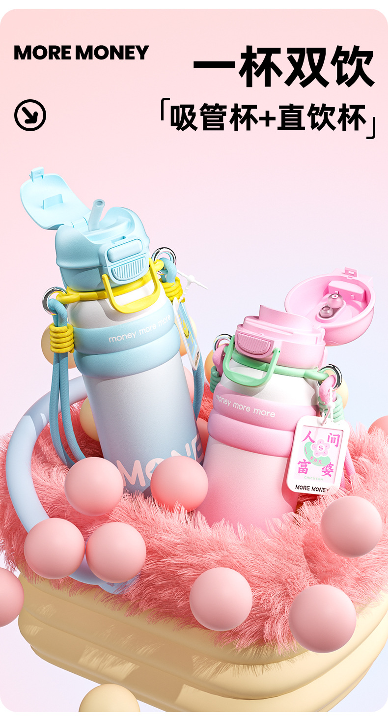 一杯双饮【桌面发财杯!带薪好搭档】健康内“芯”,新款316不锈钢保温杯便携水杯女士学生吸管杯发财杯高颜值保温杯双饮。ra