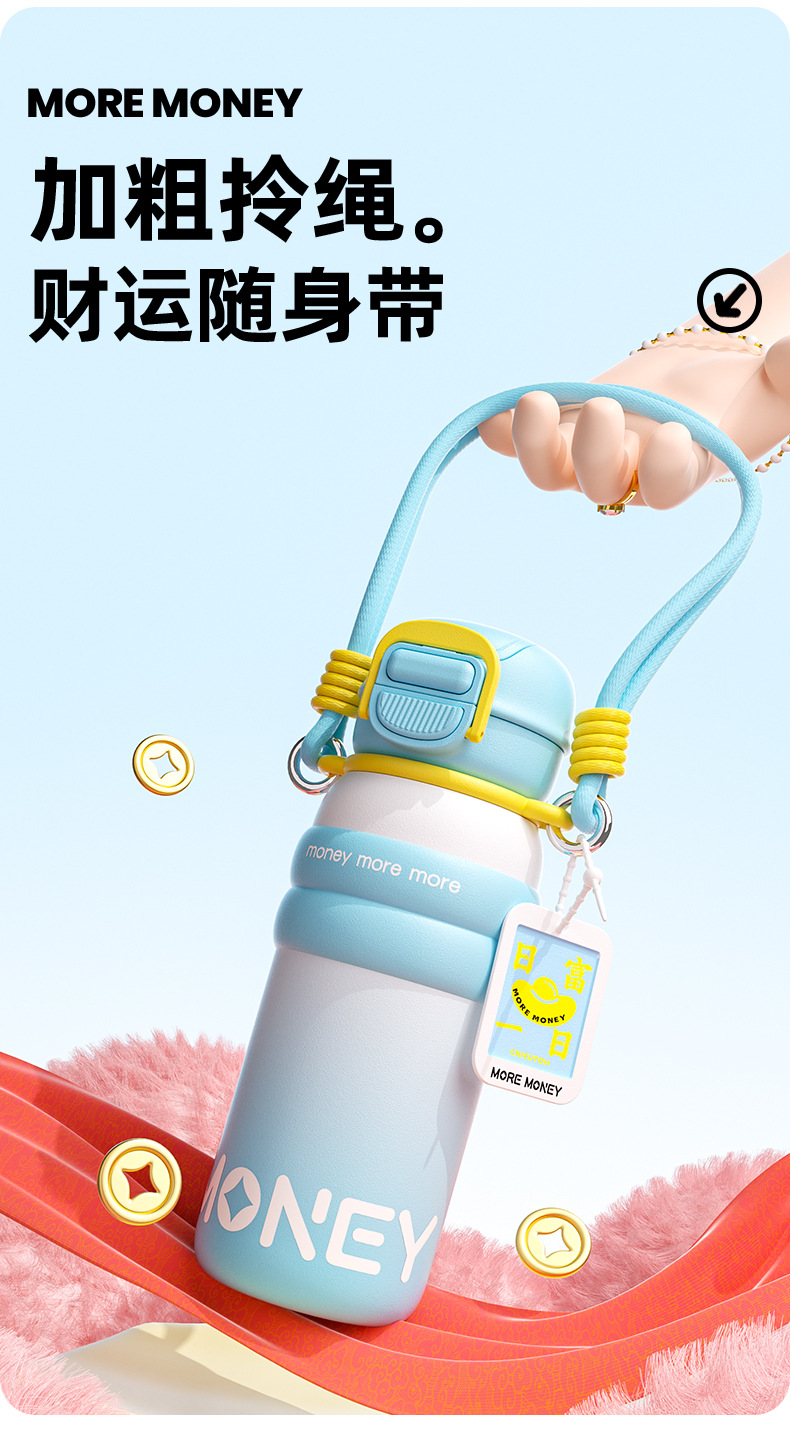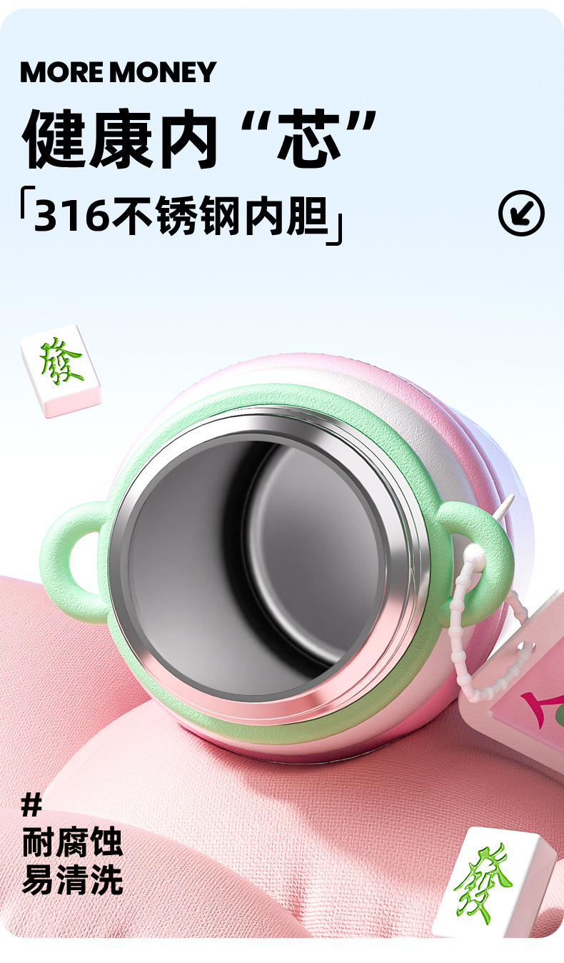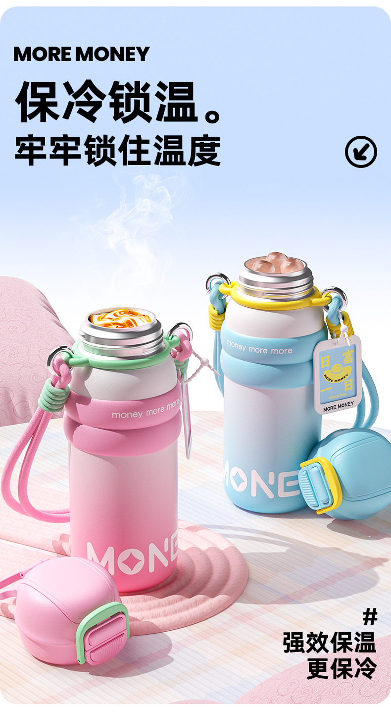 一杯双饮【桌面发财杯!带薪好搭档】健康内“芯”,新款316不锈钢保温杯便携水杯女士学生吸管杯发财杯高颜值保温杯双饮。ra