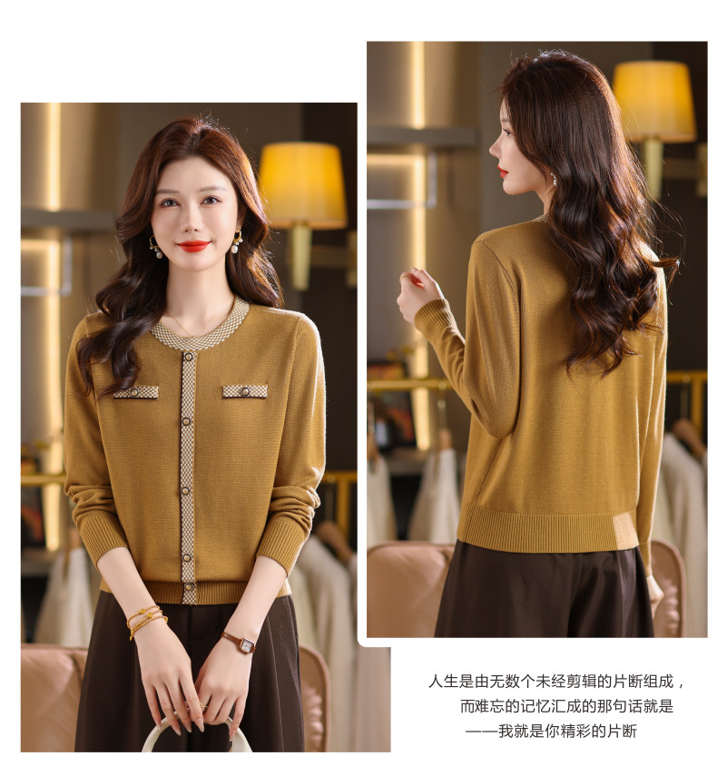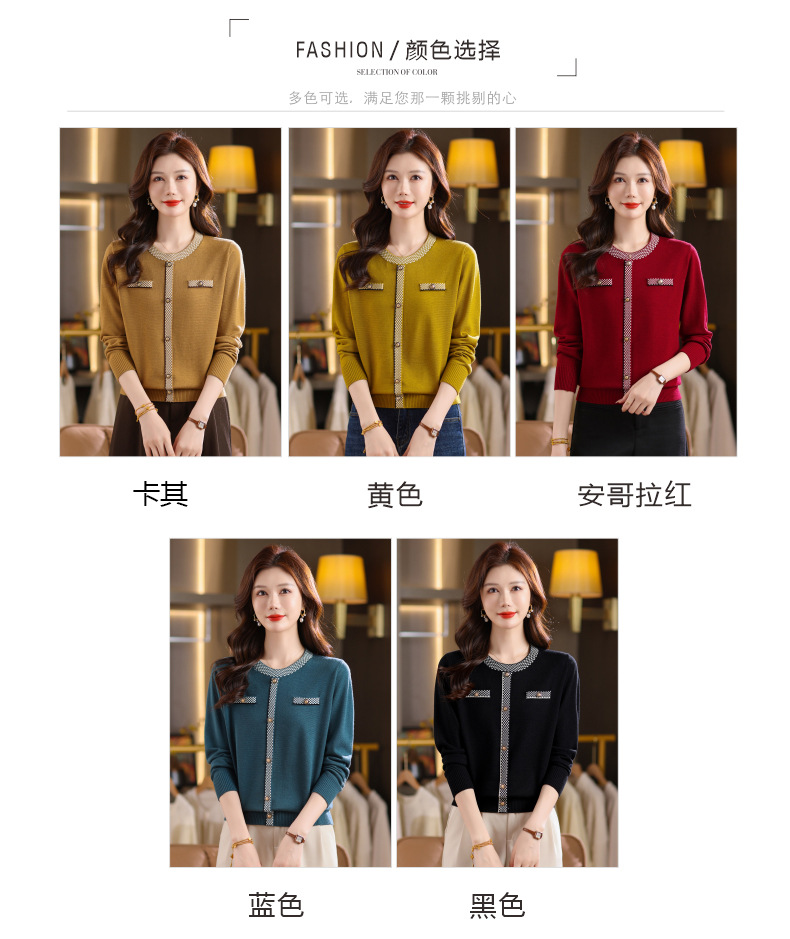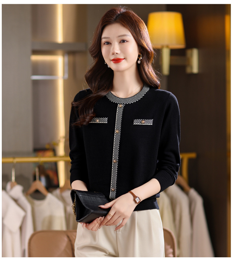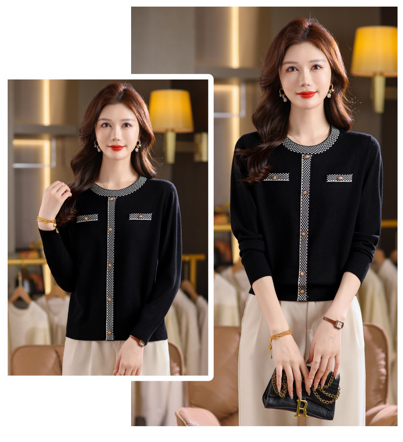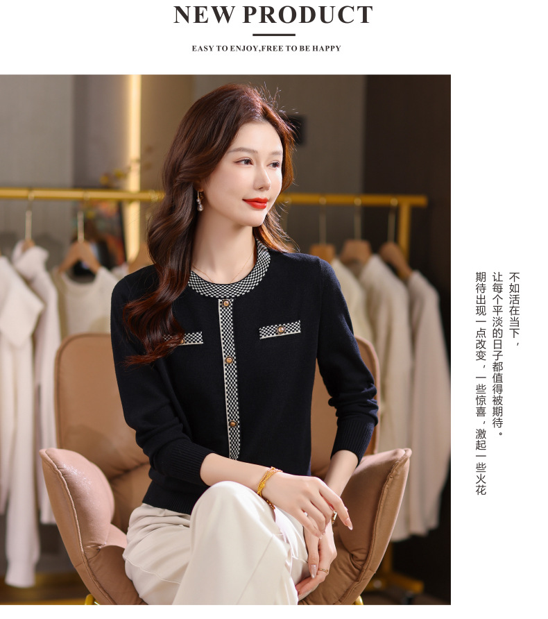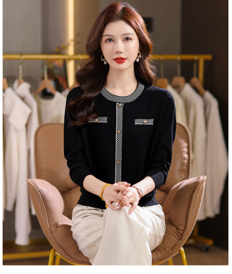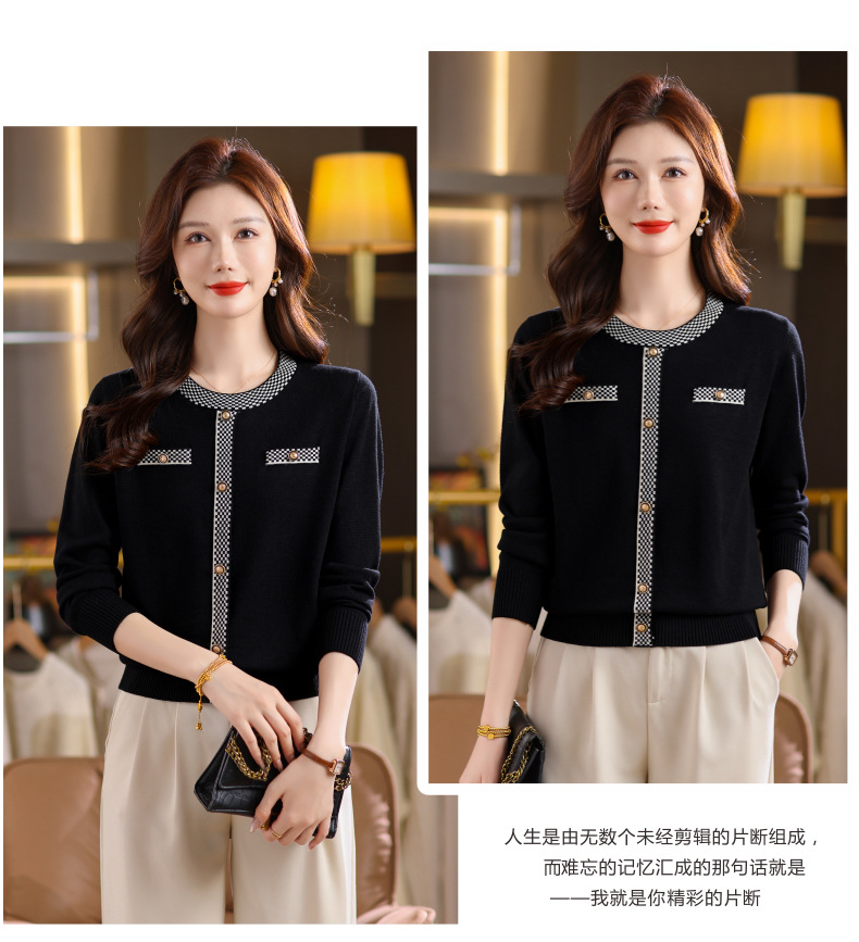 CC小香风撞色边针织衫女春秋好看圆领短款精致感打底衫显瘦毛衣潮