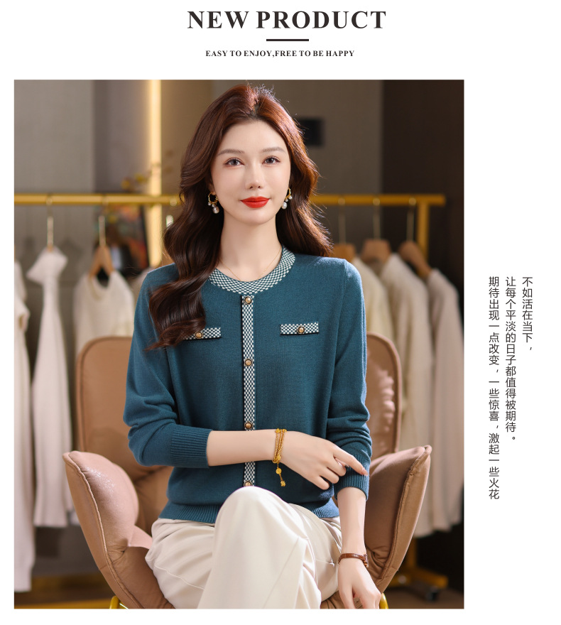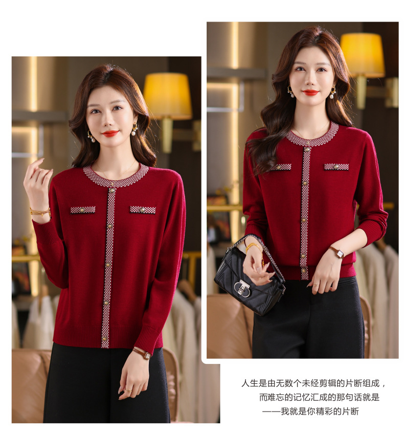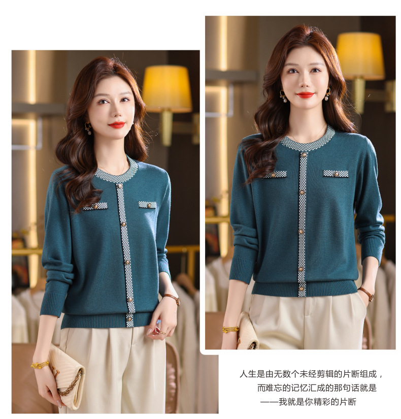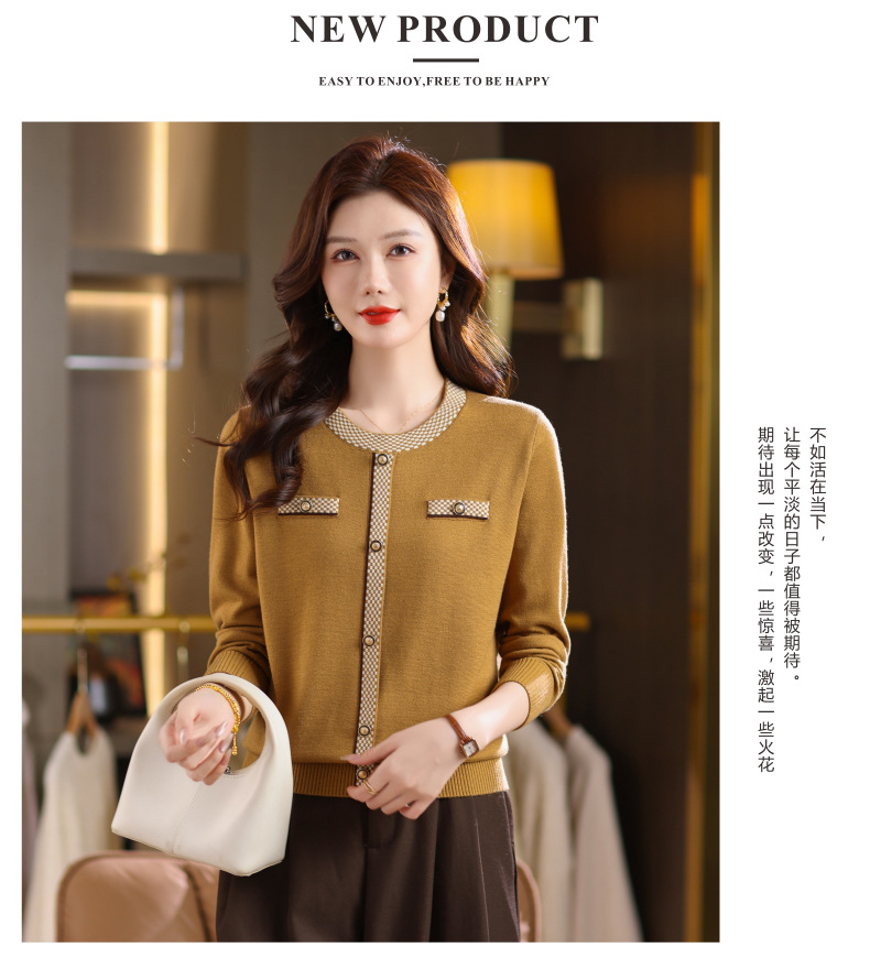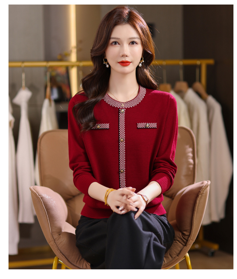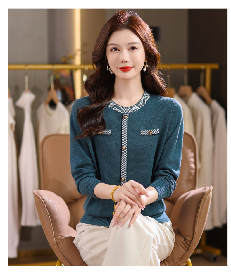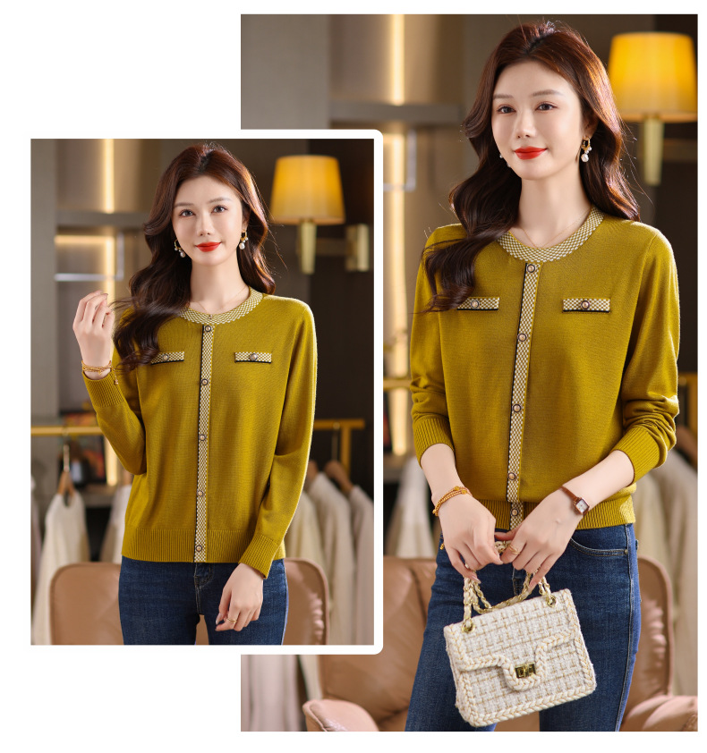 CC小香风撞色边针织衫女春秋好看圆领短款精致感打底衫显瘦毛衣潮