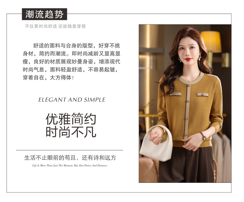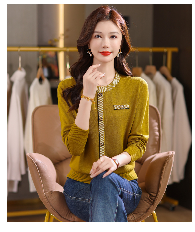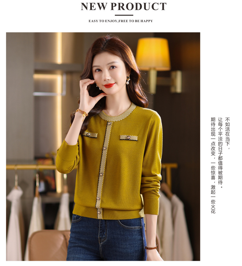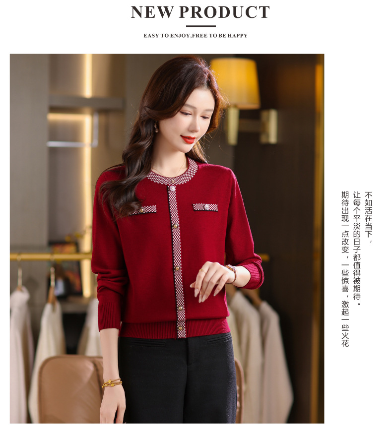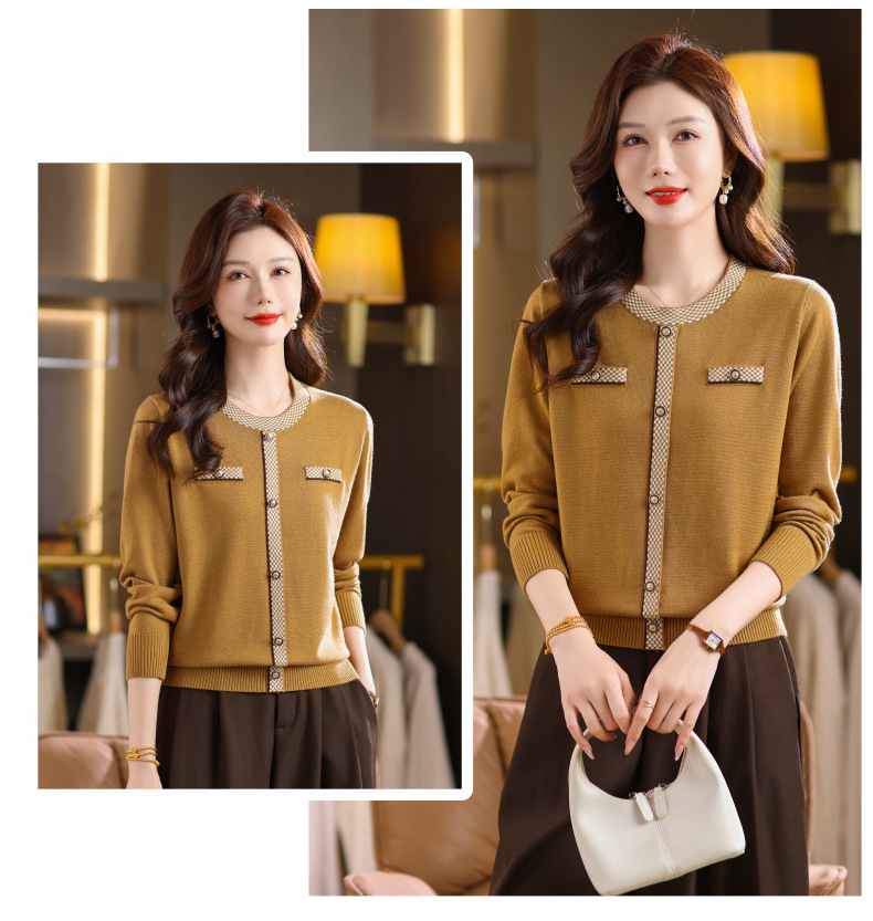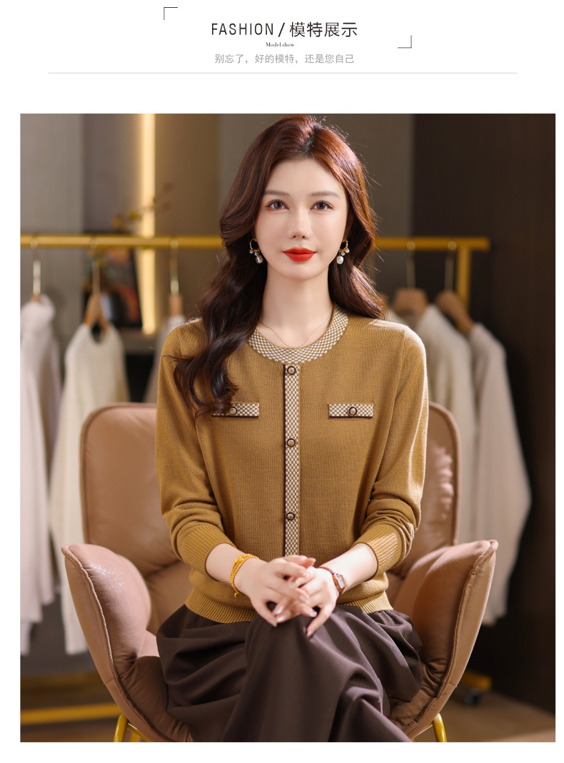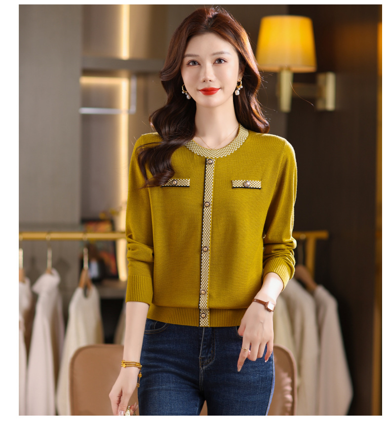 CC小香风撞色边针织衫女春秋好看圆领短款精致感打底衫显瘦毛衣潮