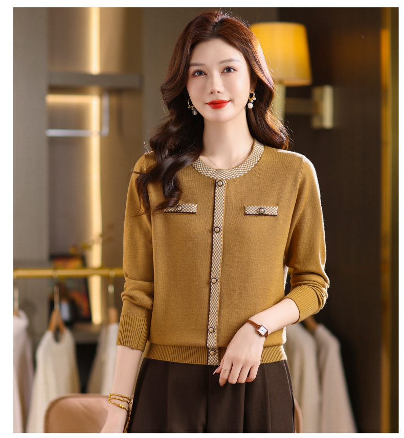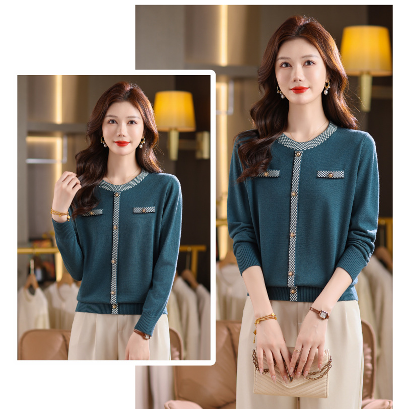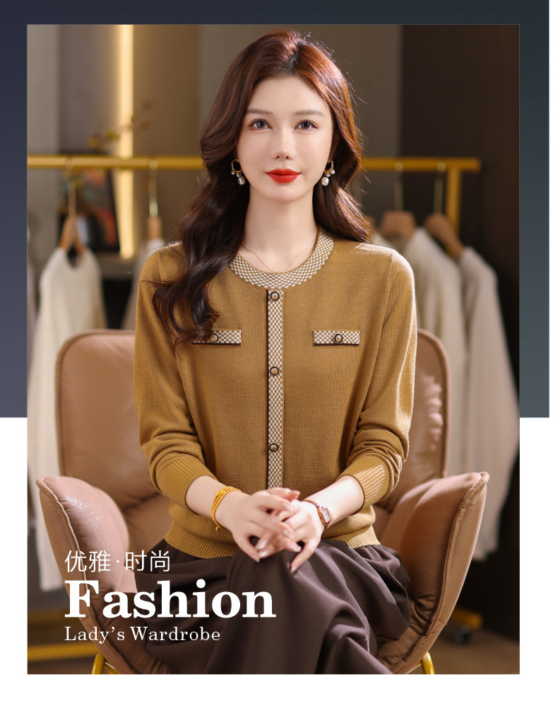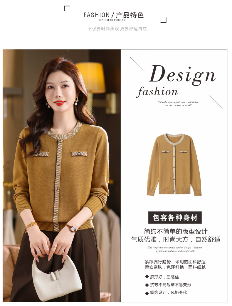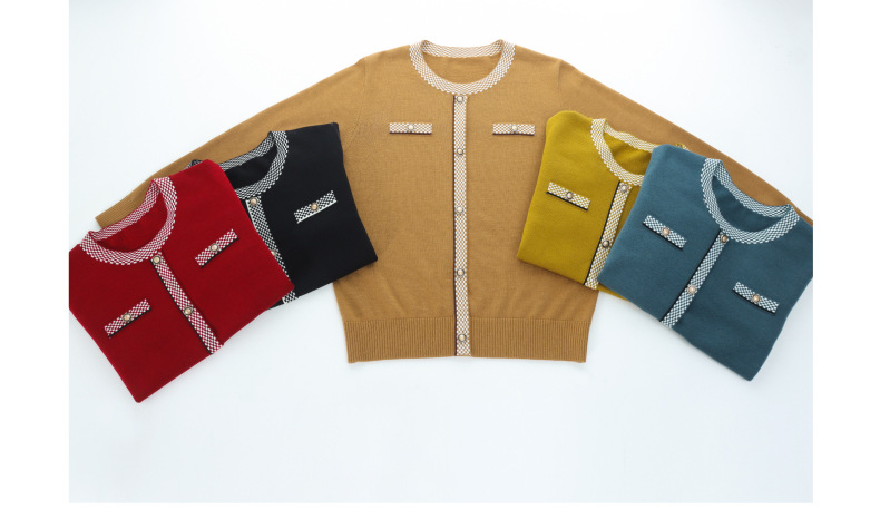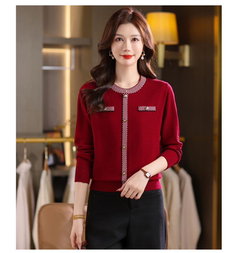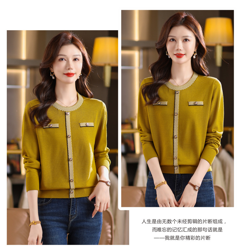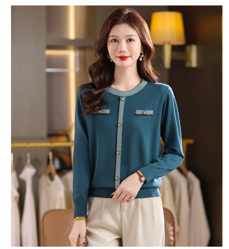 CC小香风撞色边针织衫女春秋好看圆领短款精致感打底衫显瘦毛衣潮