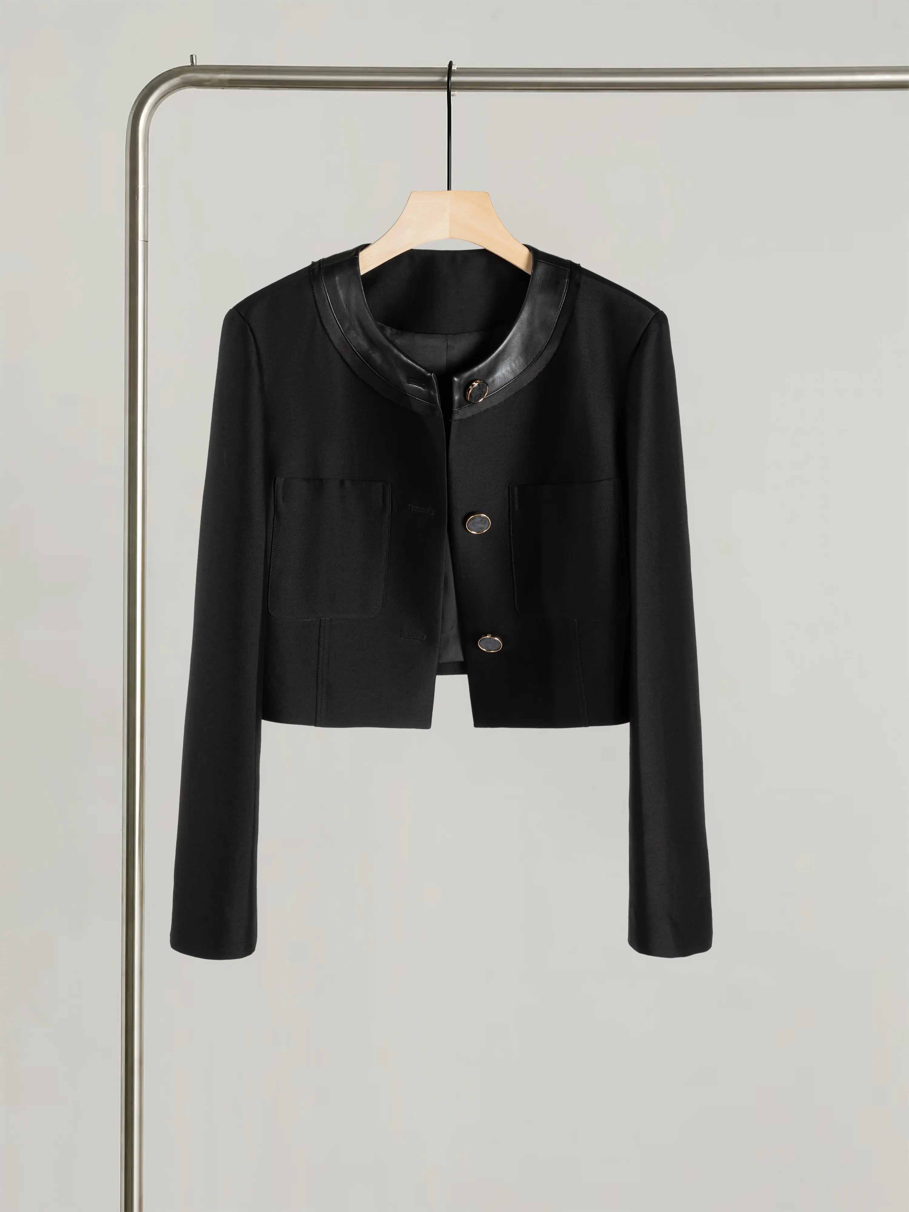精致拼接设计丝毛短外套,百搭简单不出错~时髦又显高