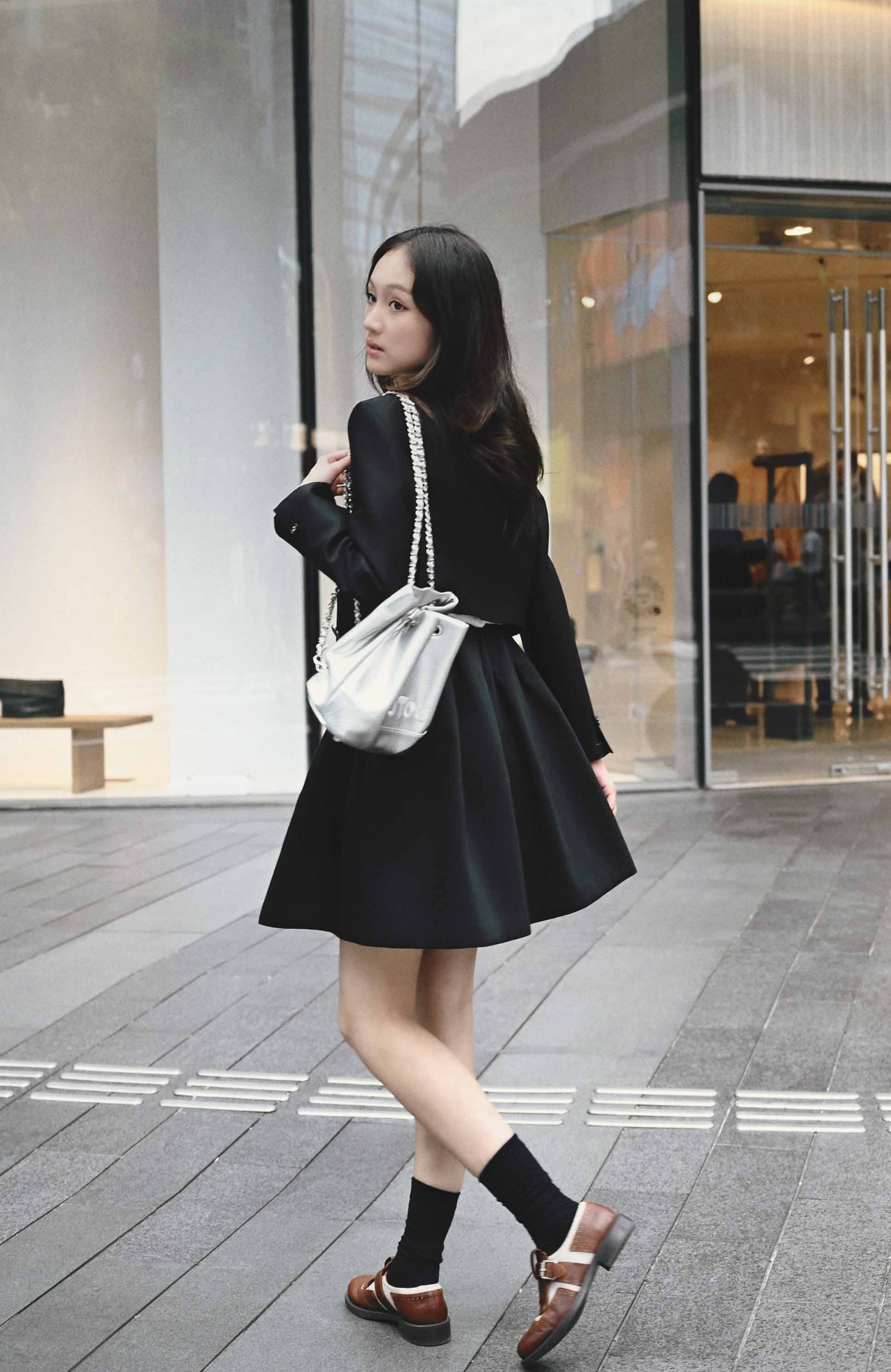 经典的黑色搭配更加凸显气质,不同材质的细节拼接设计使它更加奢华高贵。