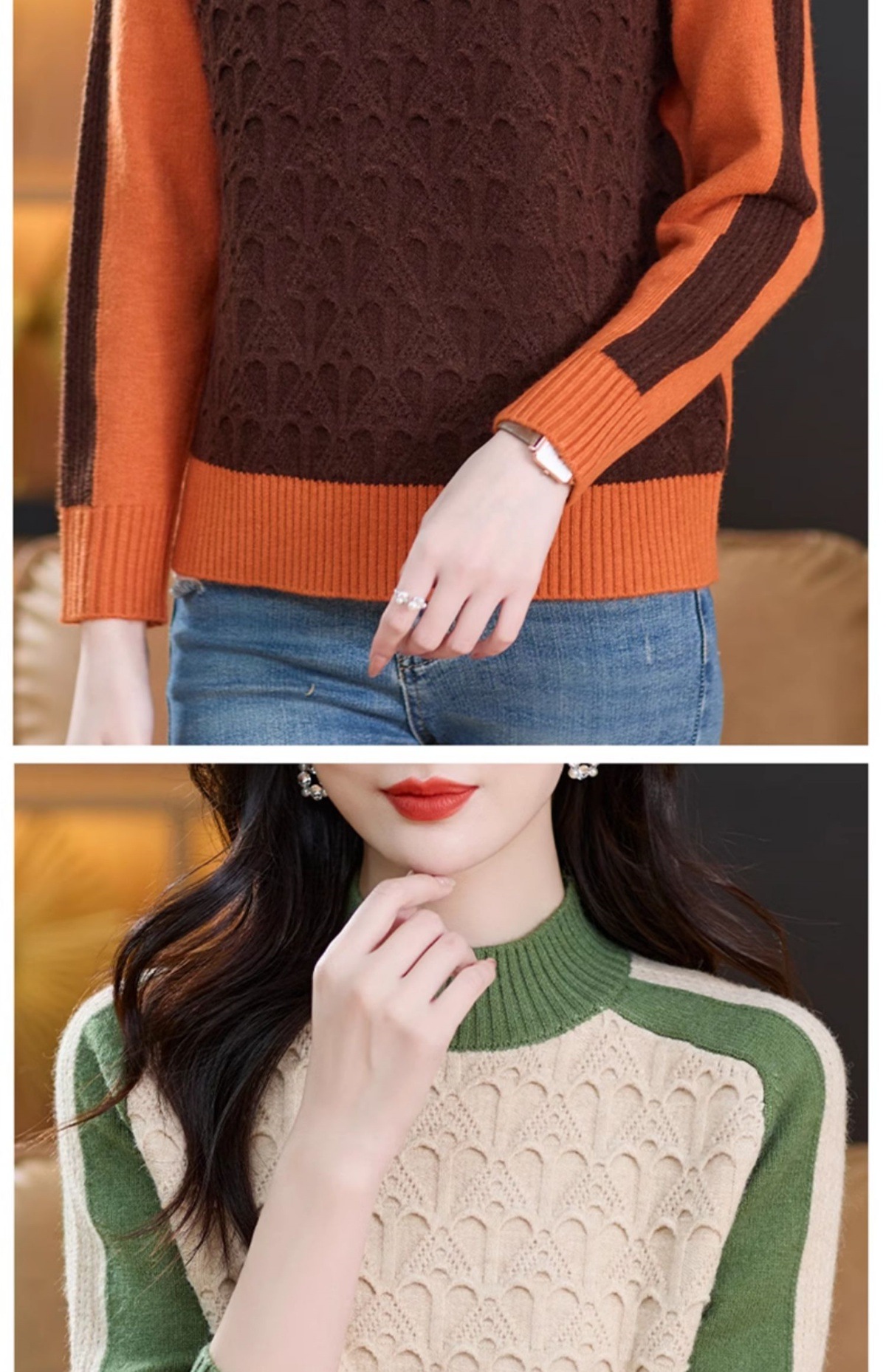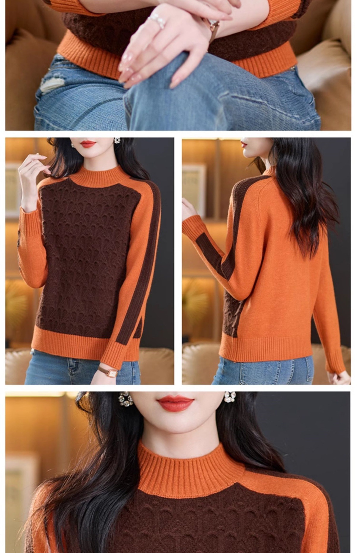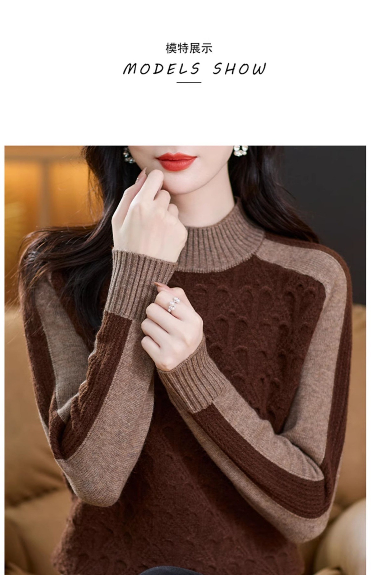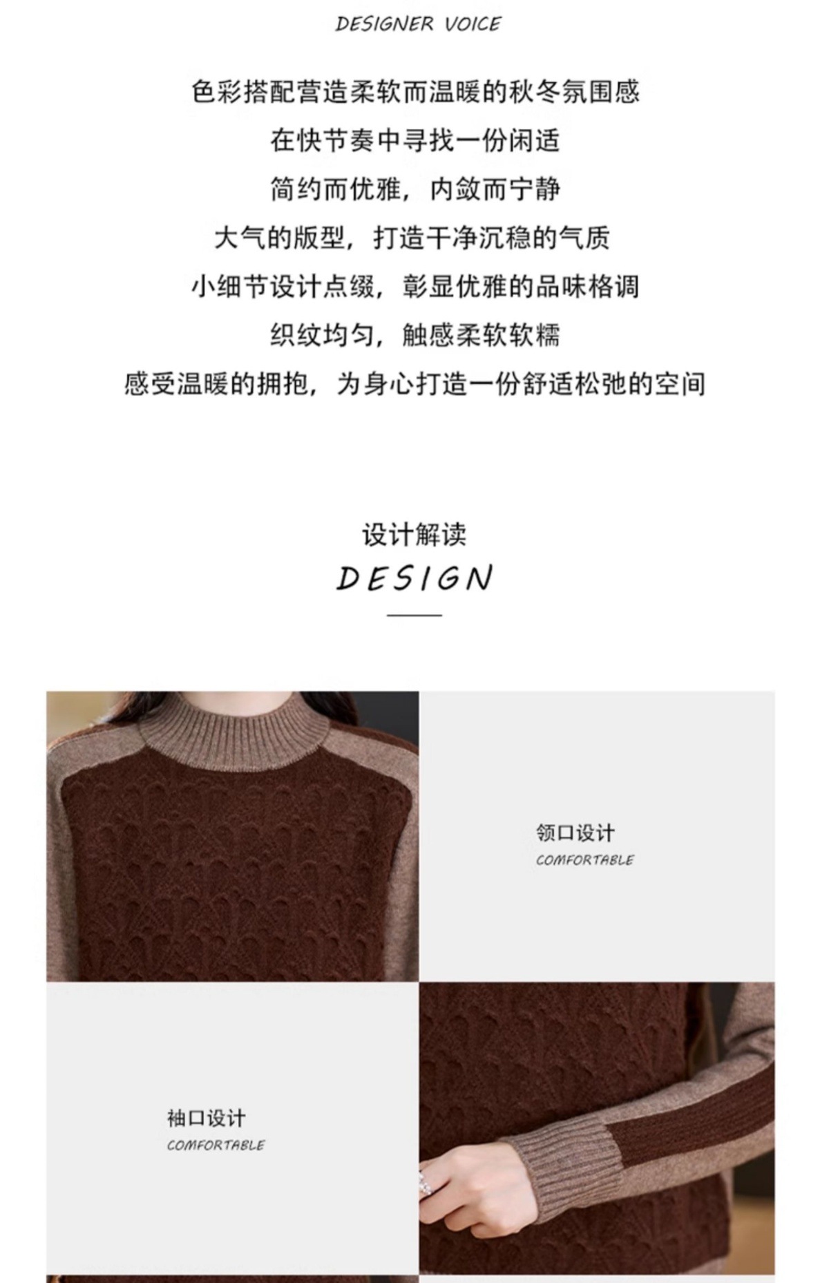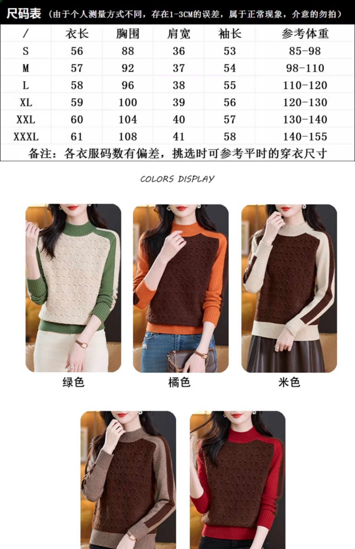 CC-101-689132半高领针织毛衣女秋冬宽松遮肚打底上衣拼色内搭毛衣厚