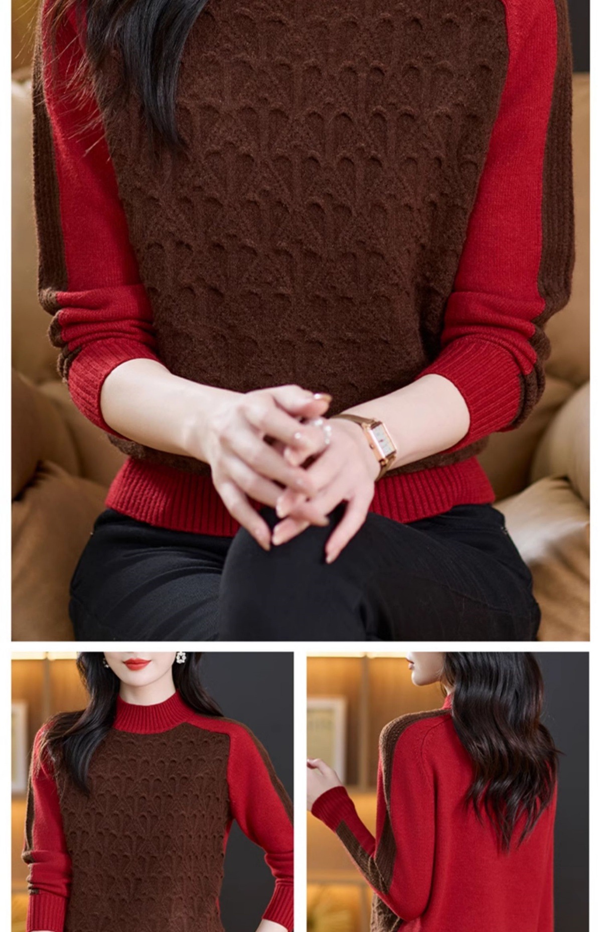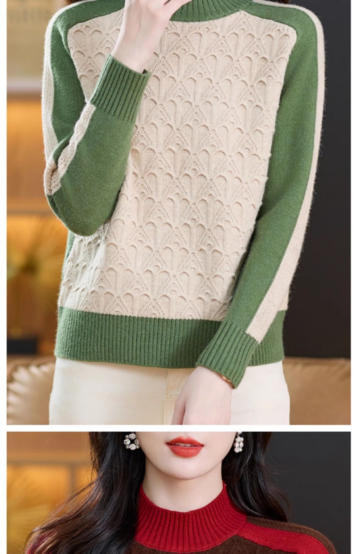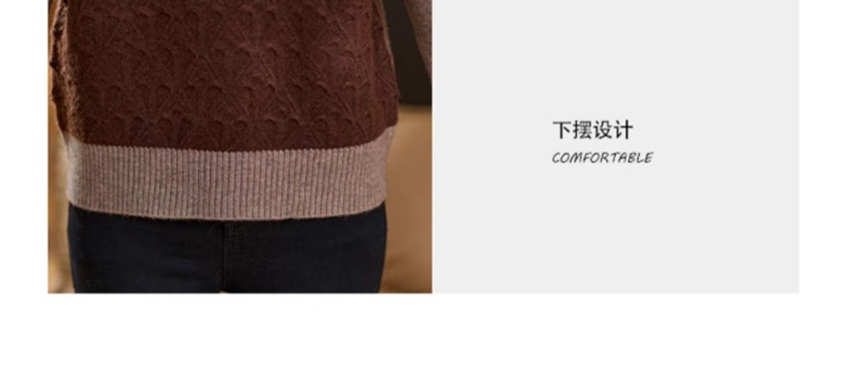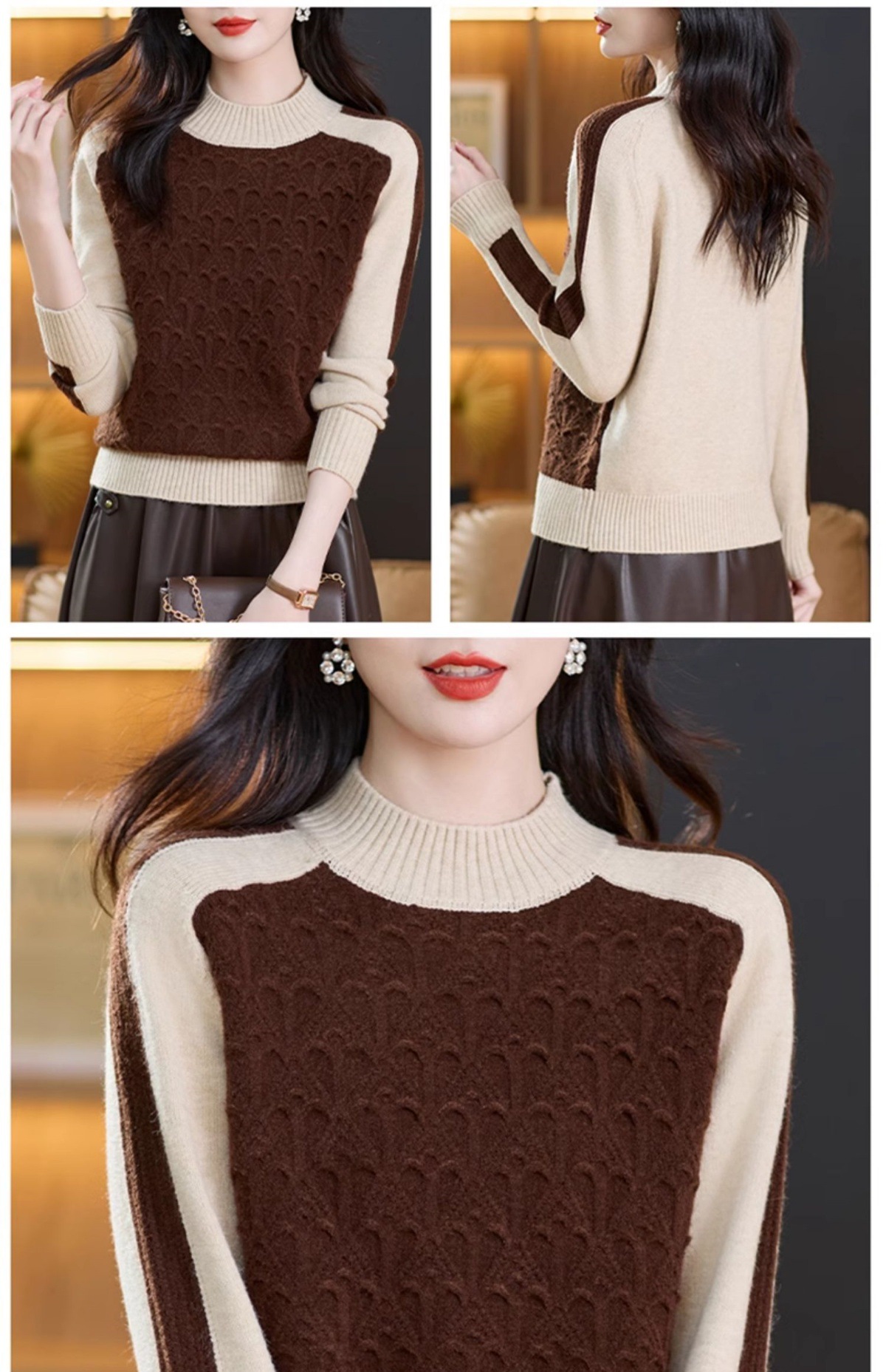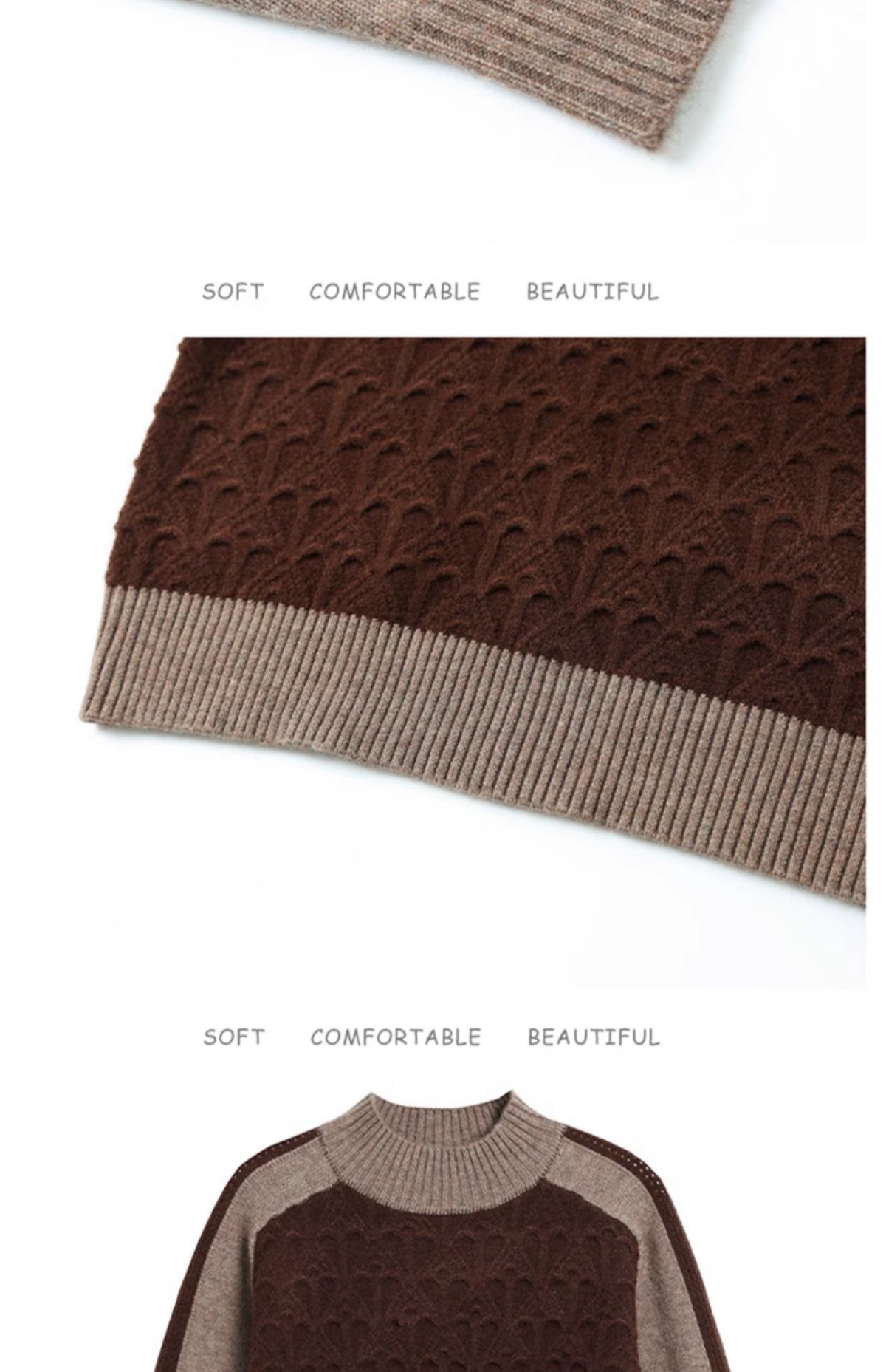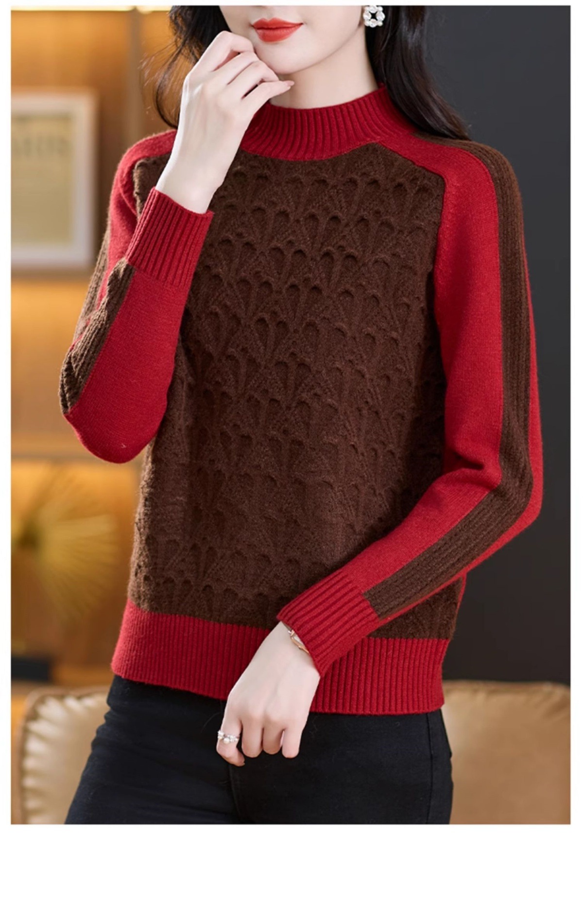 CC-101-689132半高领针织毛衣女秋冬宽松遮肚打底上衣拼色内搭毛衣厚