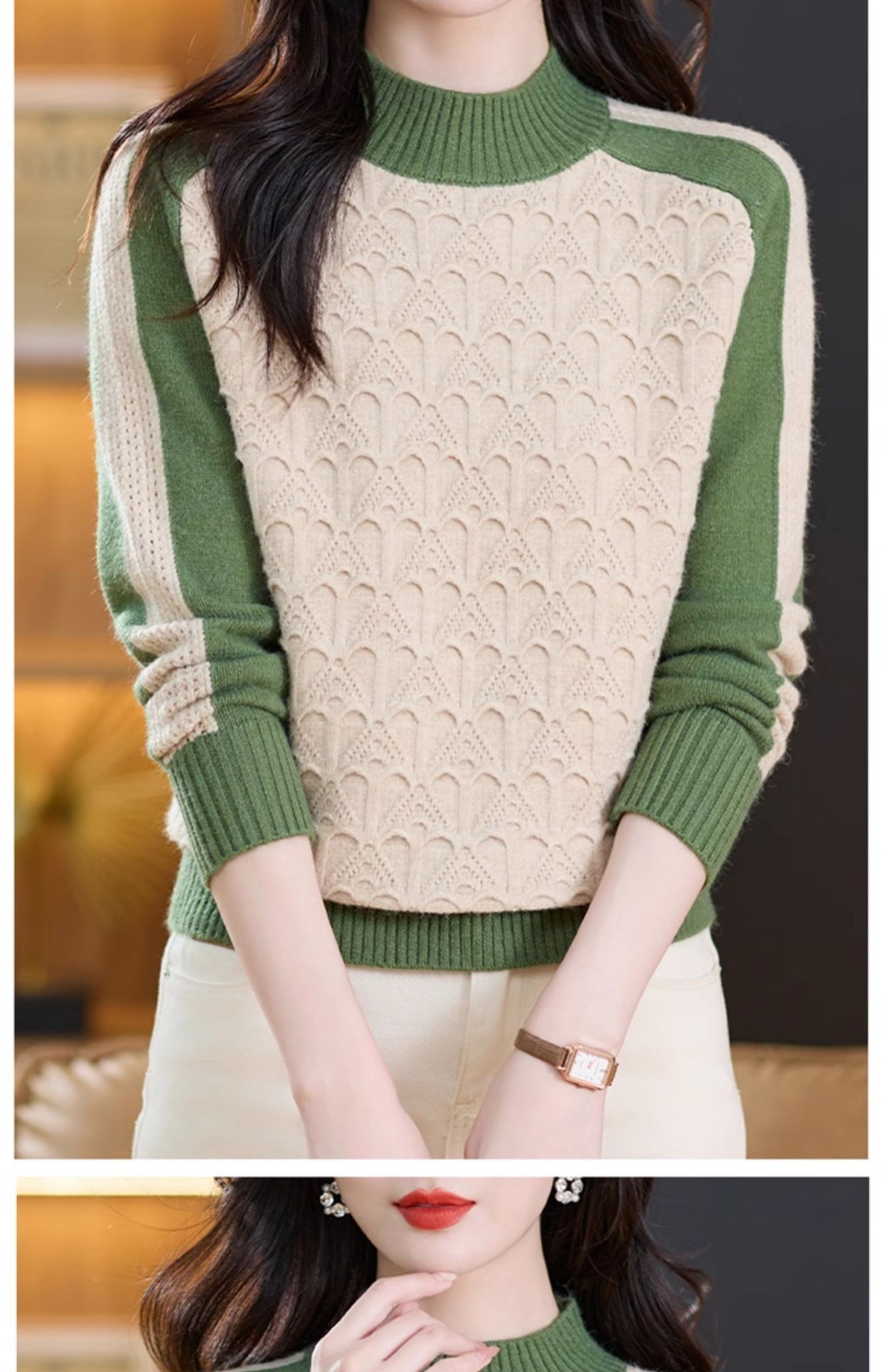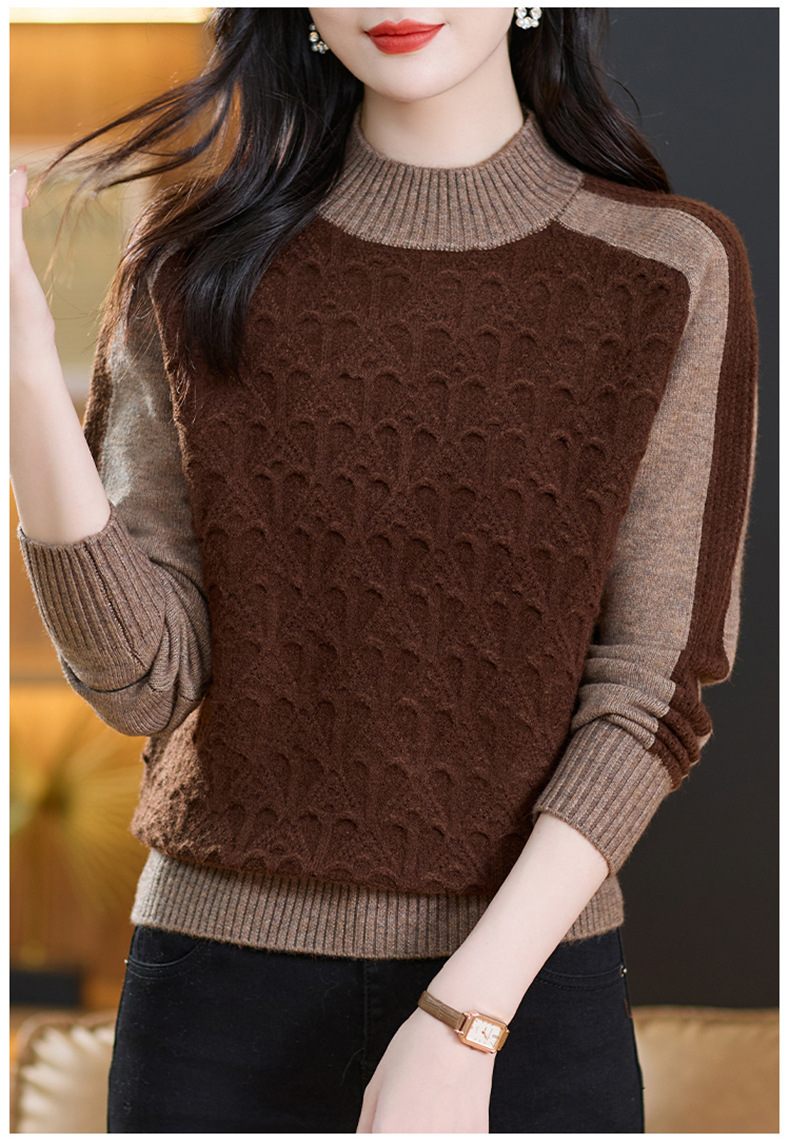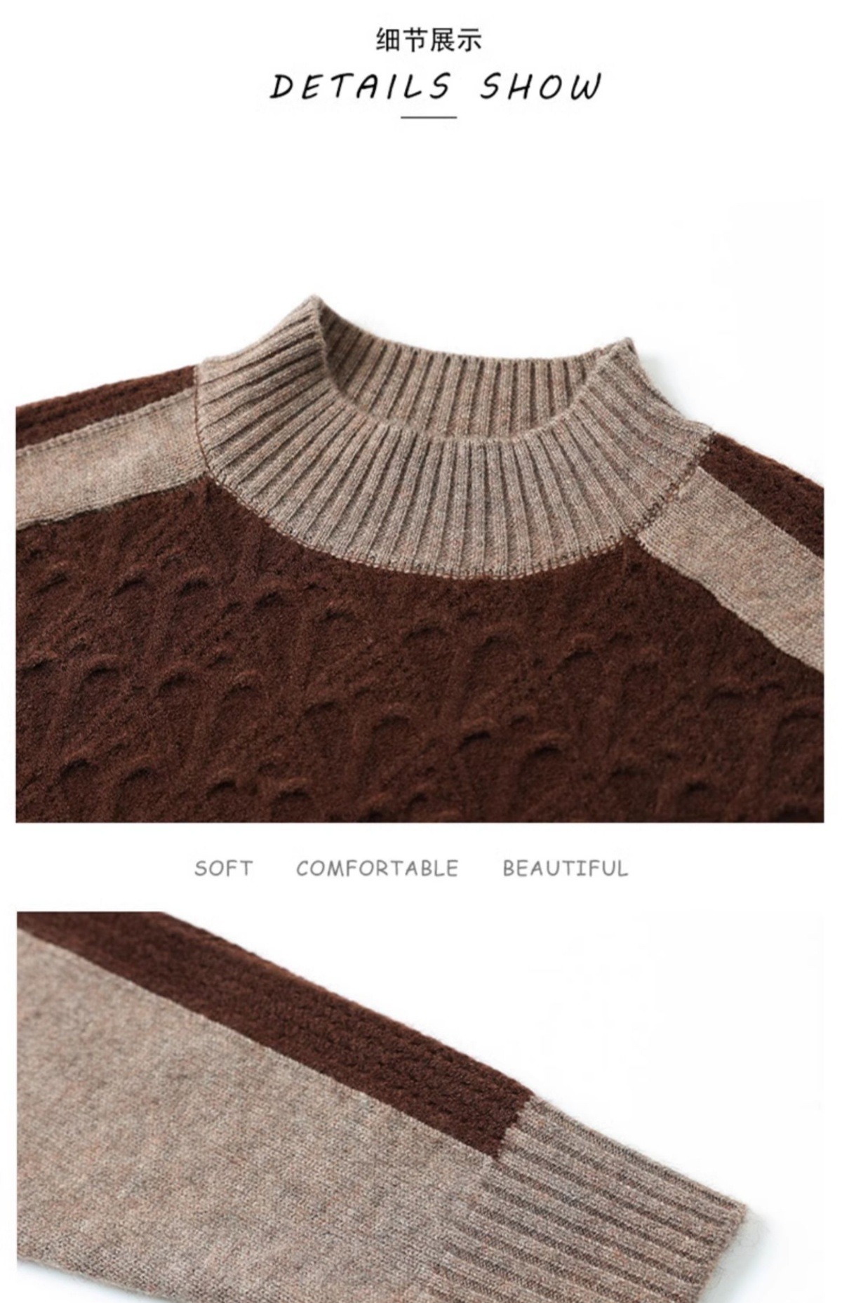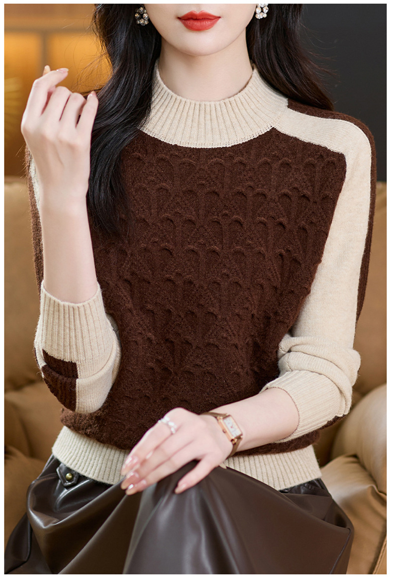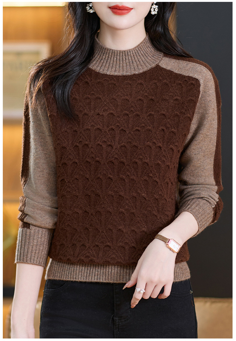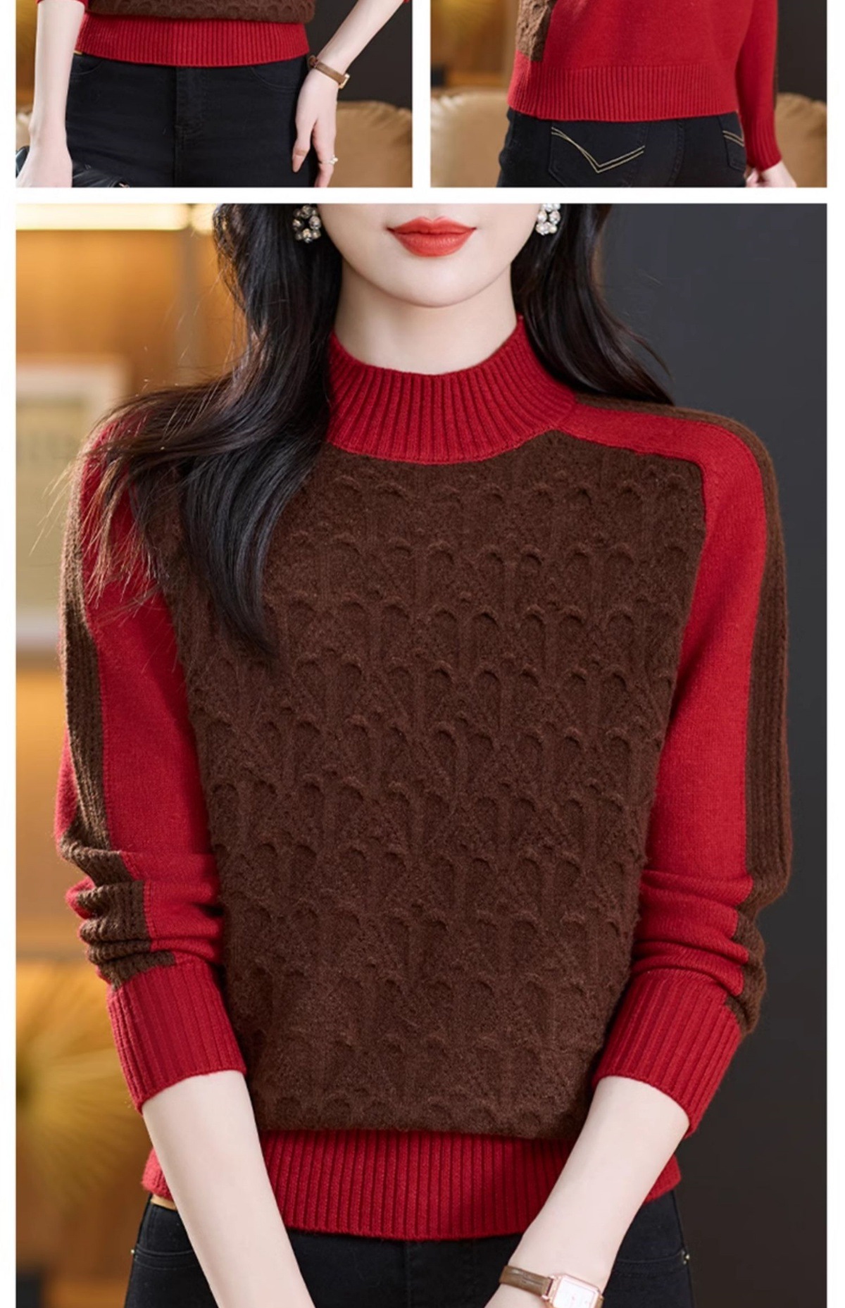 CC-101-689132半高领针织毛衣女秋冬宽松遮肚打底上衣拼色内搭毛衣厚