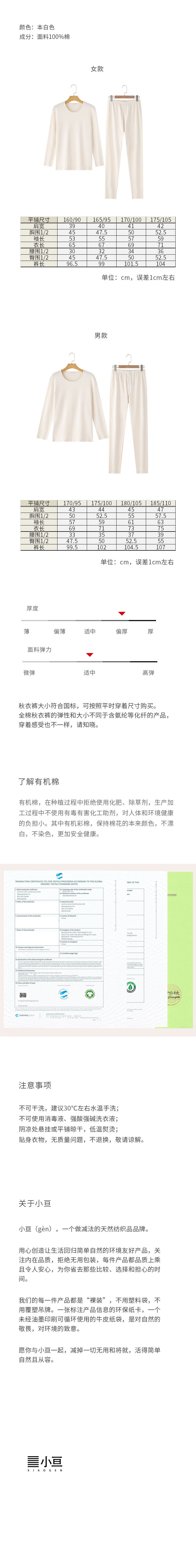 宽松版棉秋衣秋裤 | 本白色 男女款套装 柔和无压力厚实弹力适中 秋冬暖和 全棉手帕环保包装 小亘【贴身衣物一经售出非质量问题不退不换】