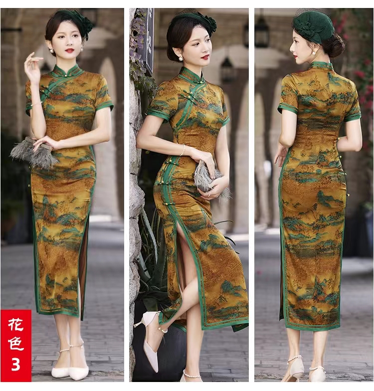 中国风长款旗袍2022年新款夏季改良连衣裙印花