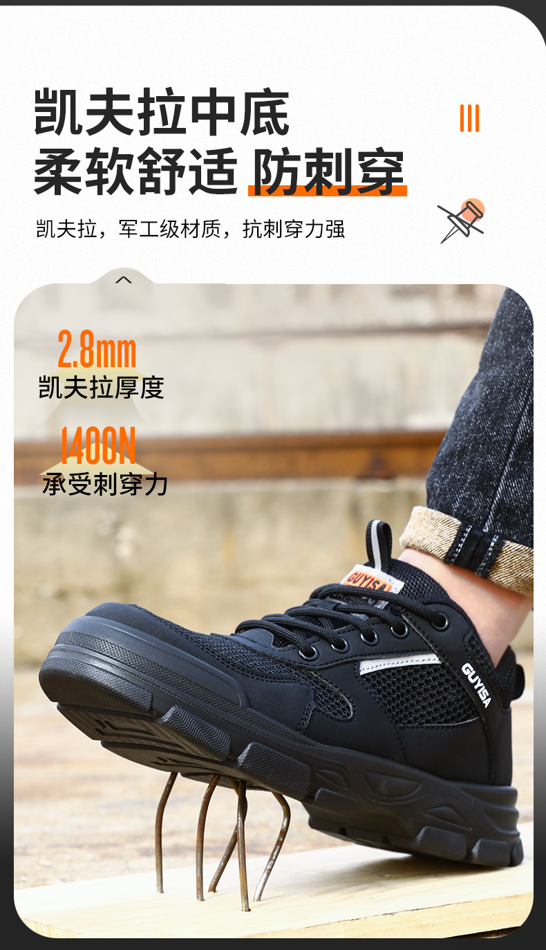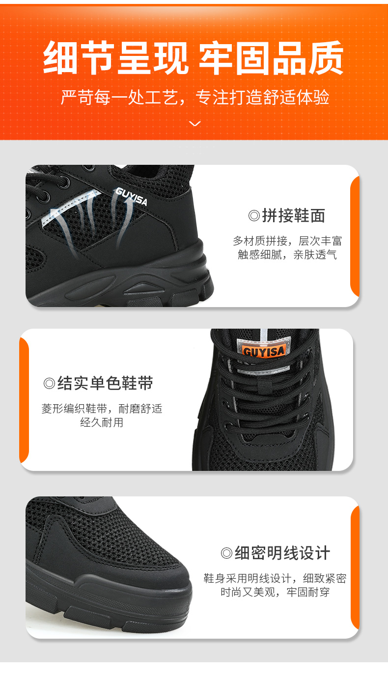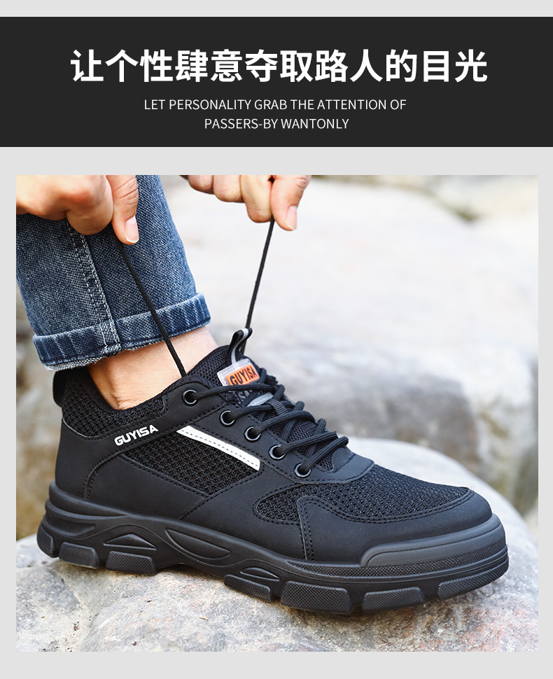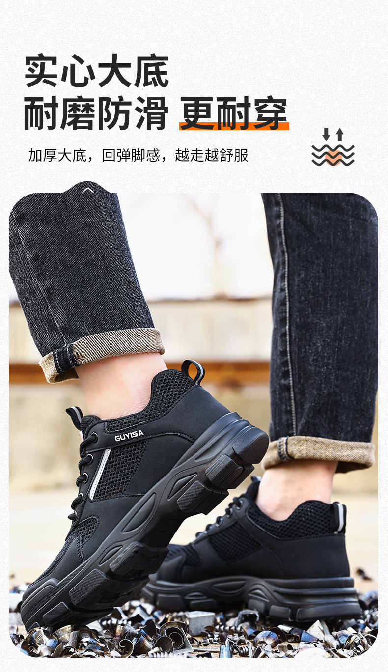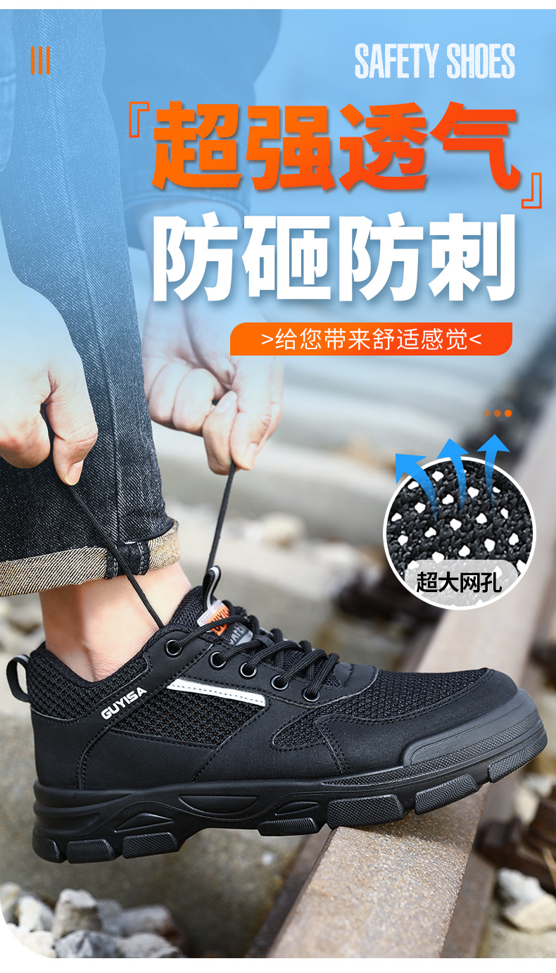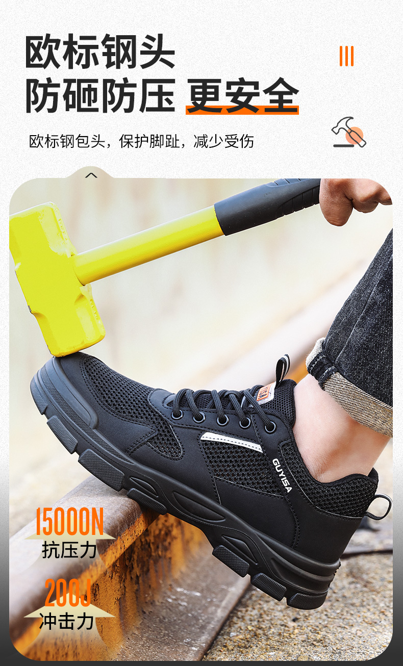 夏季款新品大孔透气男防砸防刺工作鞋钢包头LA认证专业工作防护安全鞋耐磨实心底舒适