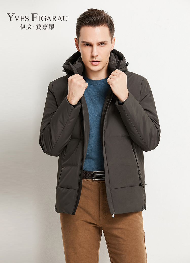 YvesFigarau伊夫·费嘉罗冬季厚款商务休闲保暖连帽长款羽绒服924276