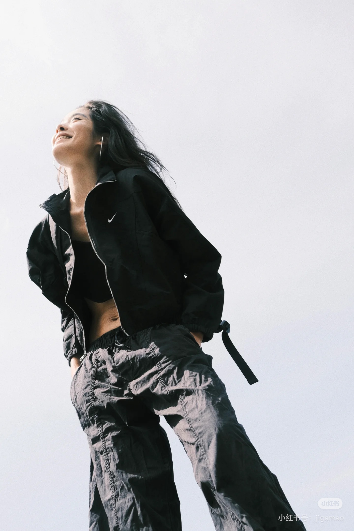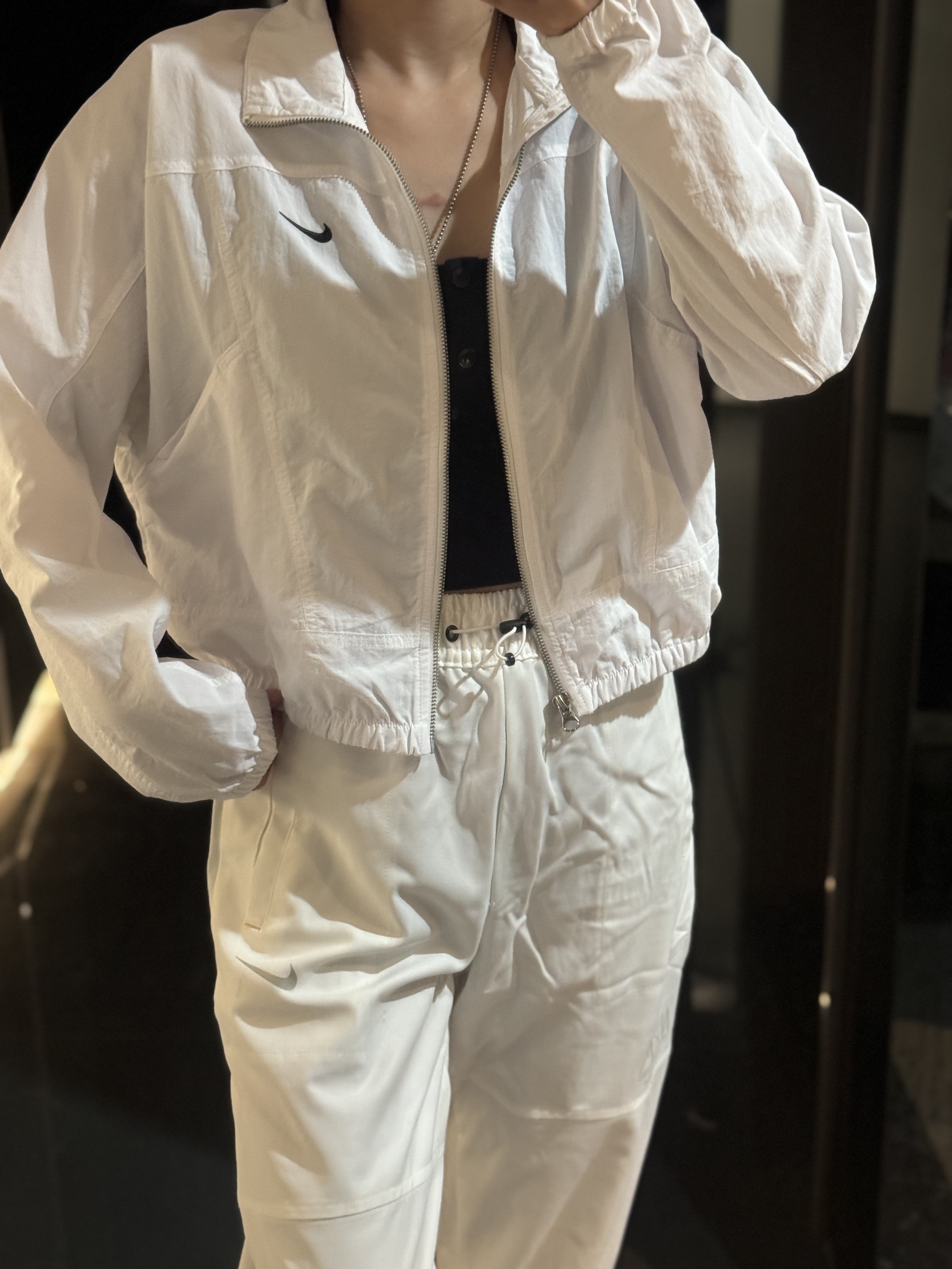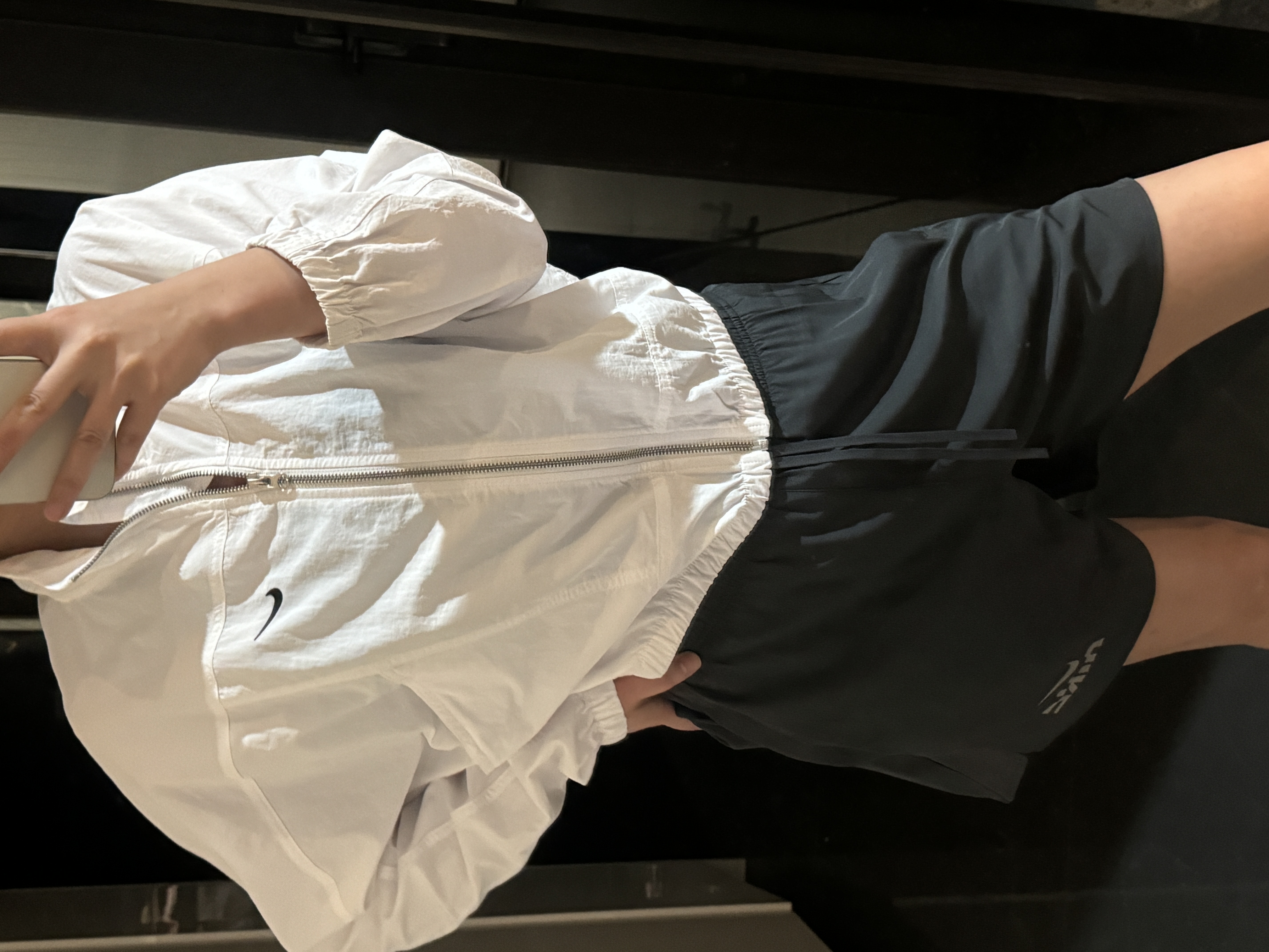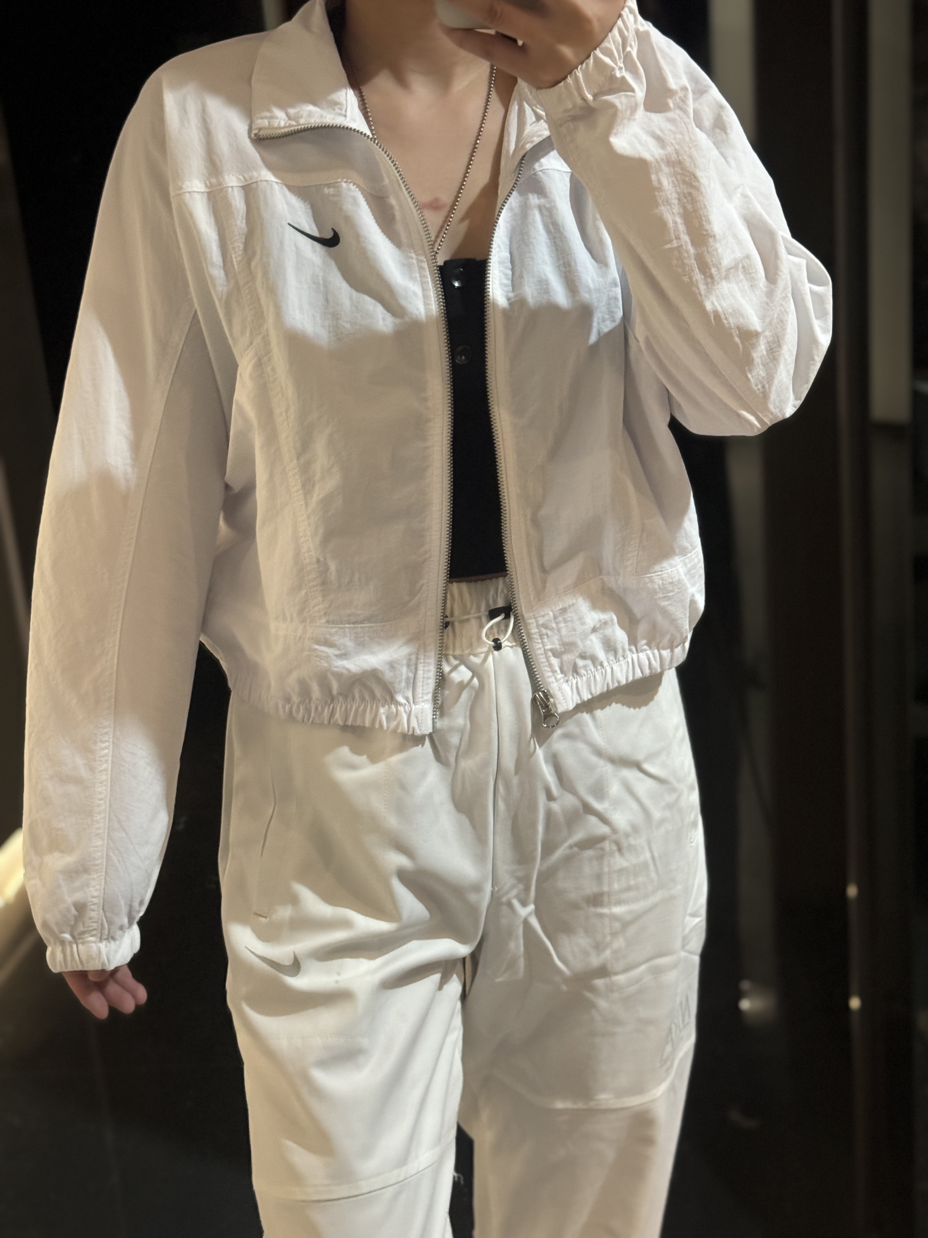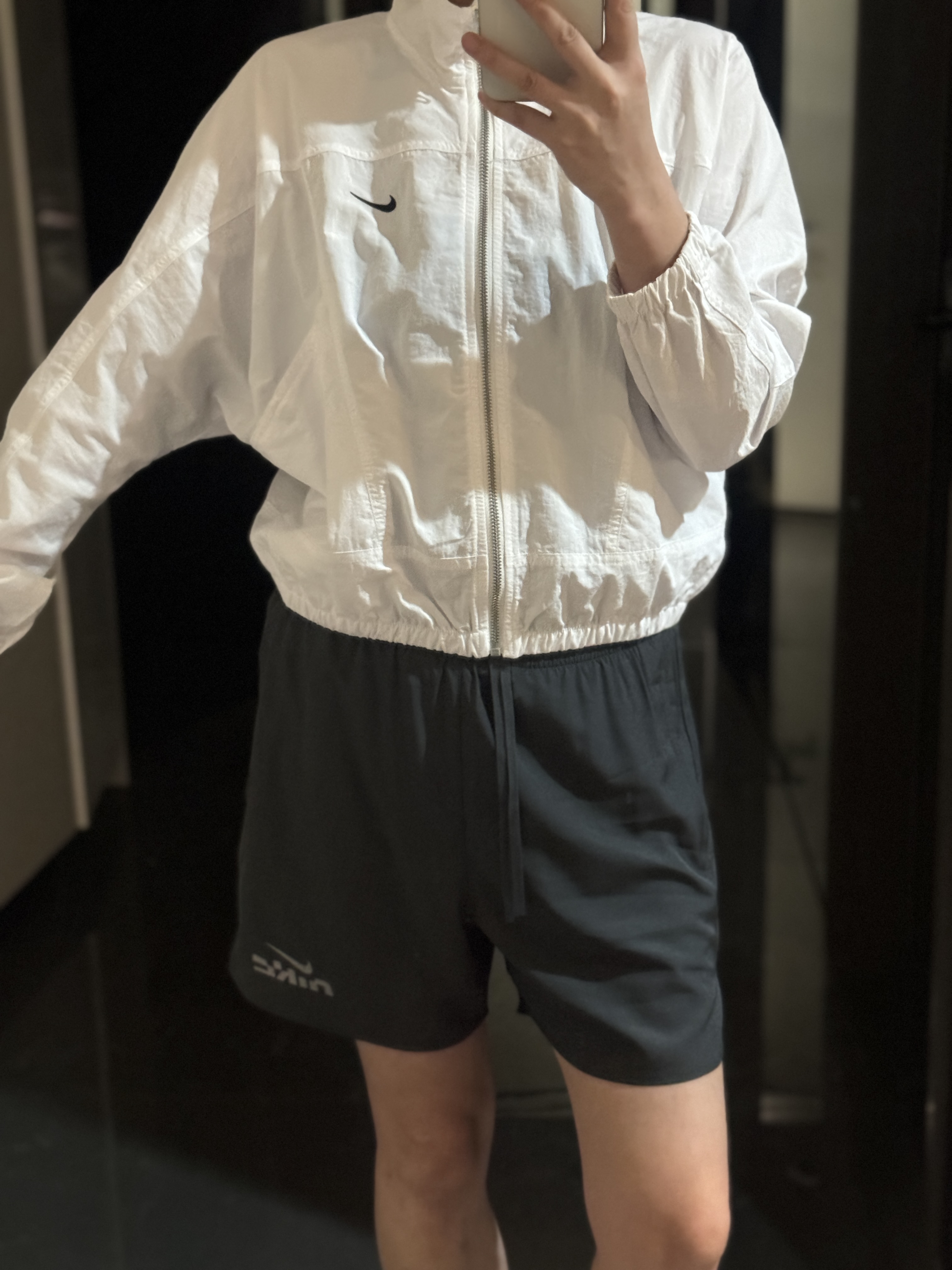 而且上身冰凉是我见过最时尚的防晒外套了!面料超级舒服柔软,没有束缚感,高腰设计显得腿特别长,好喜欢!面料采用先进功能性面料具有防风、防水、透气性能运用 Dri-FIT 等技术