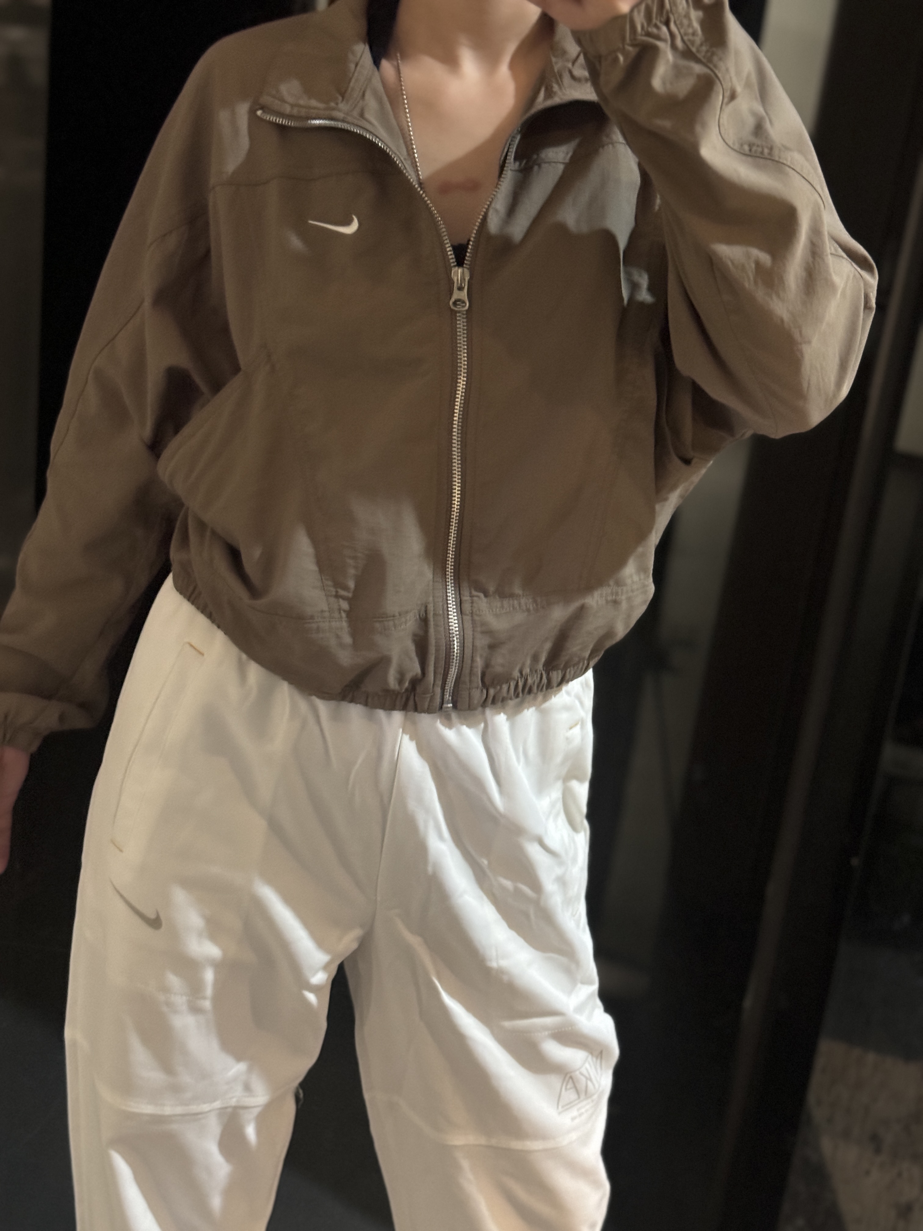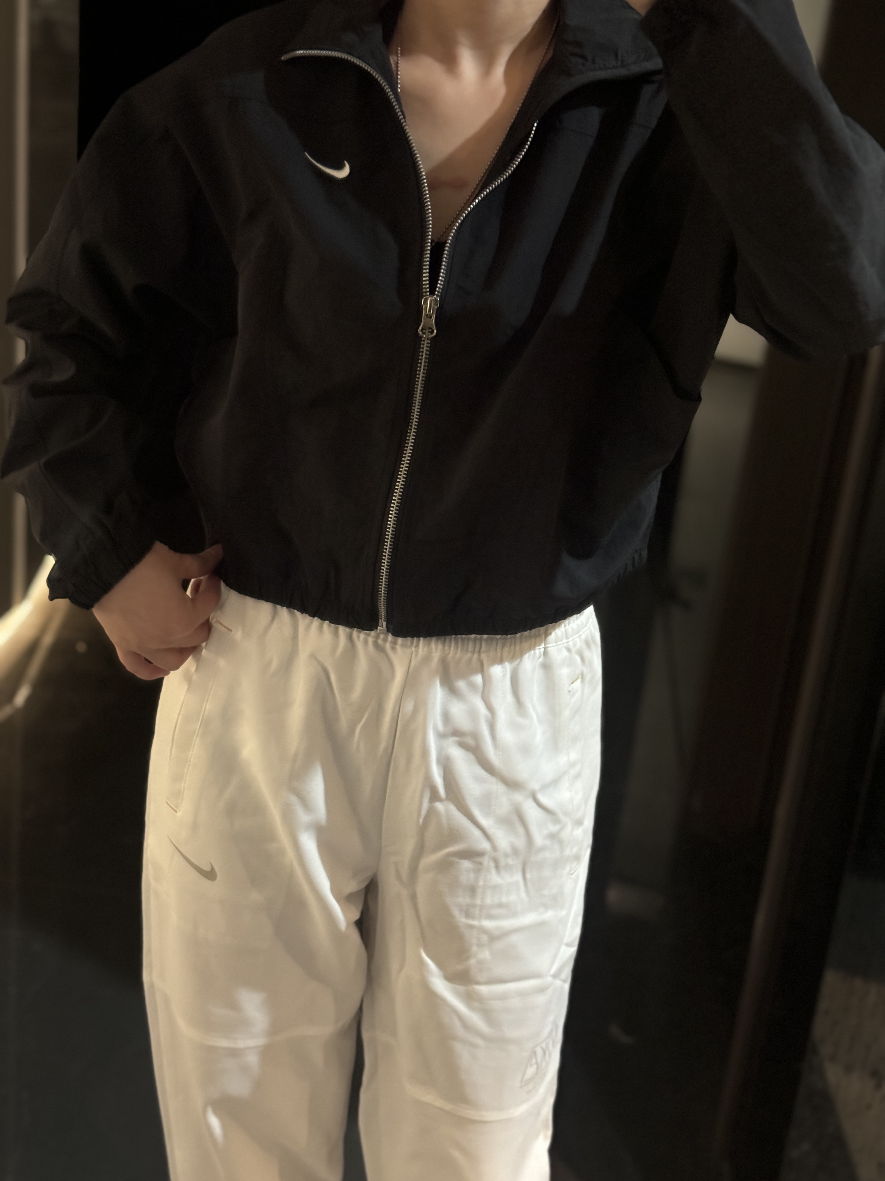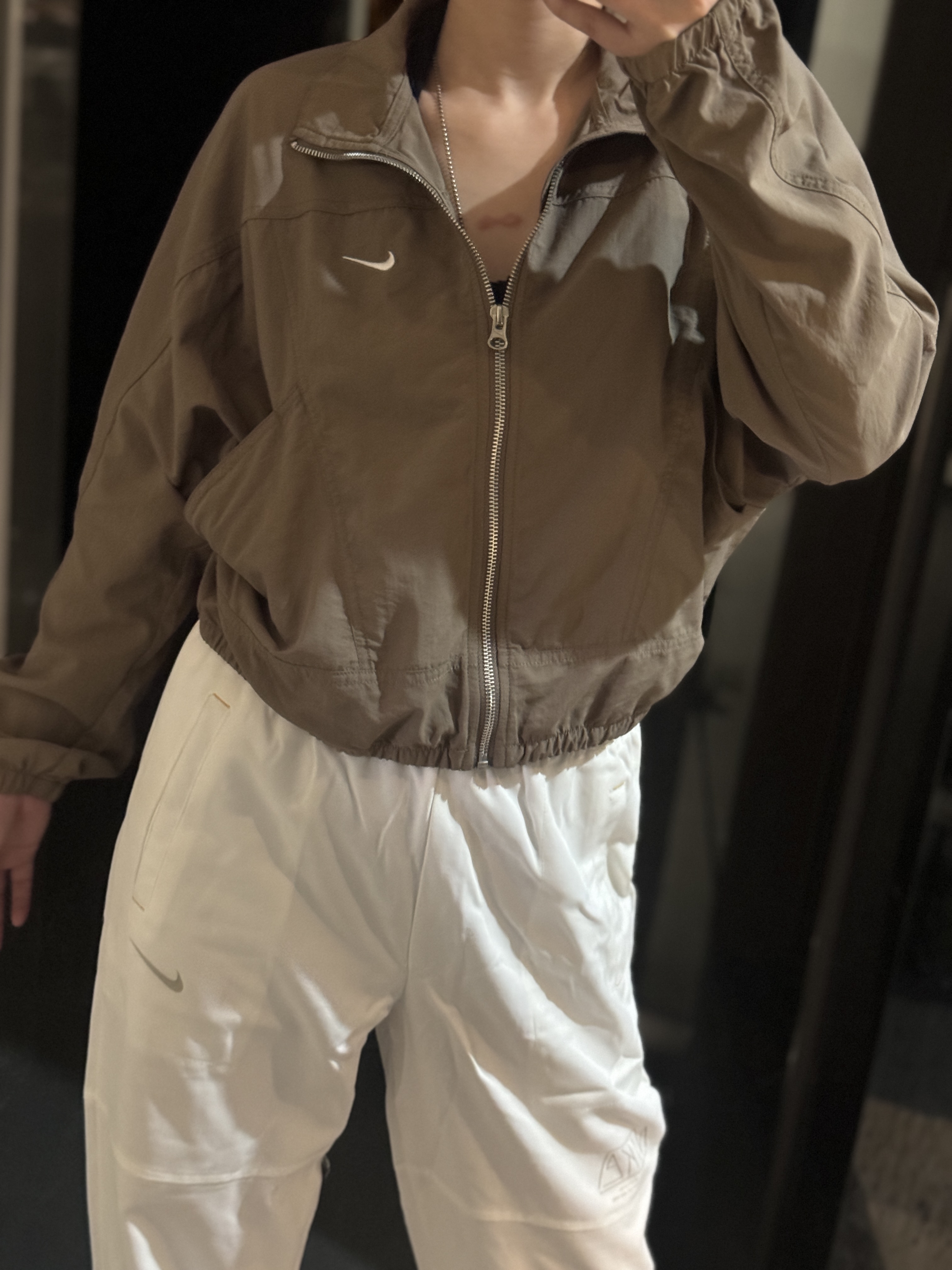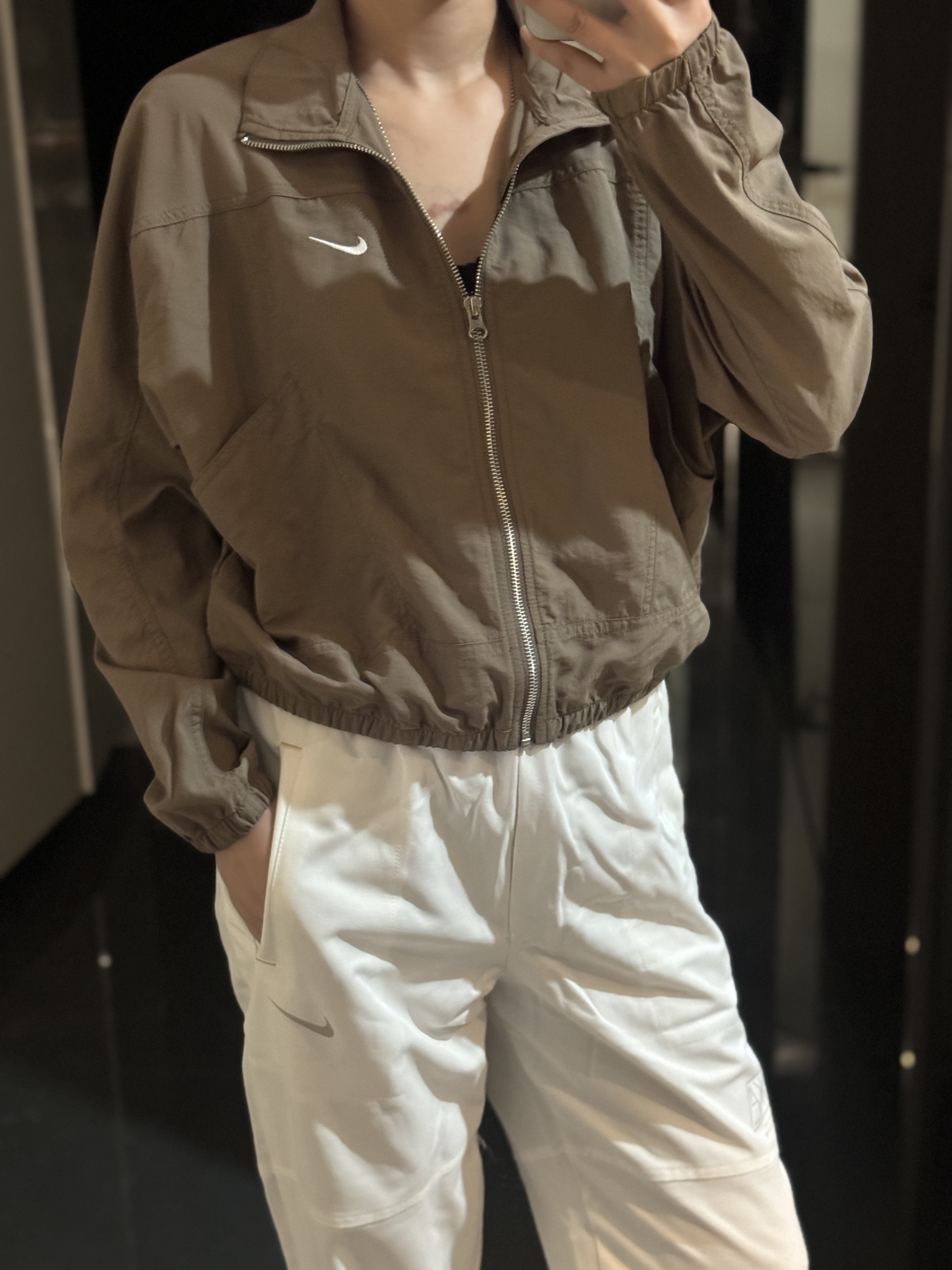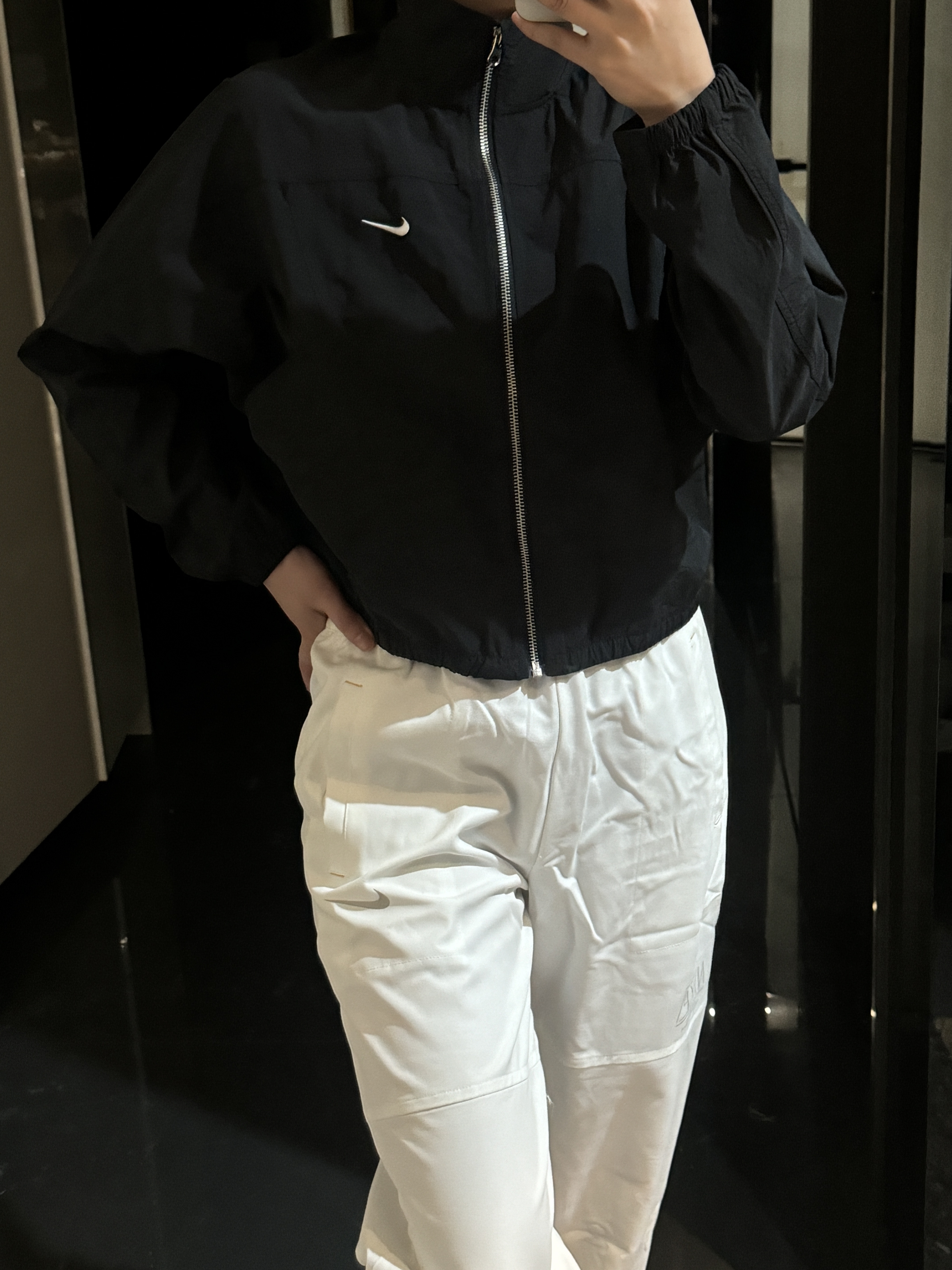 而且上身冰凉是我见过最时尚的防晒外套了!面料超级舒服柔软,没有束缚感,高腰设计显得腿特别长,好喜欢!面料采用先进功能性面料具有防风、防水、透气性能运用 Dri-FIT 等技术