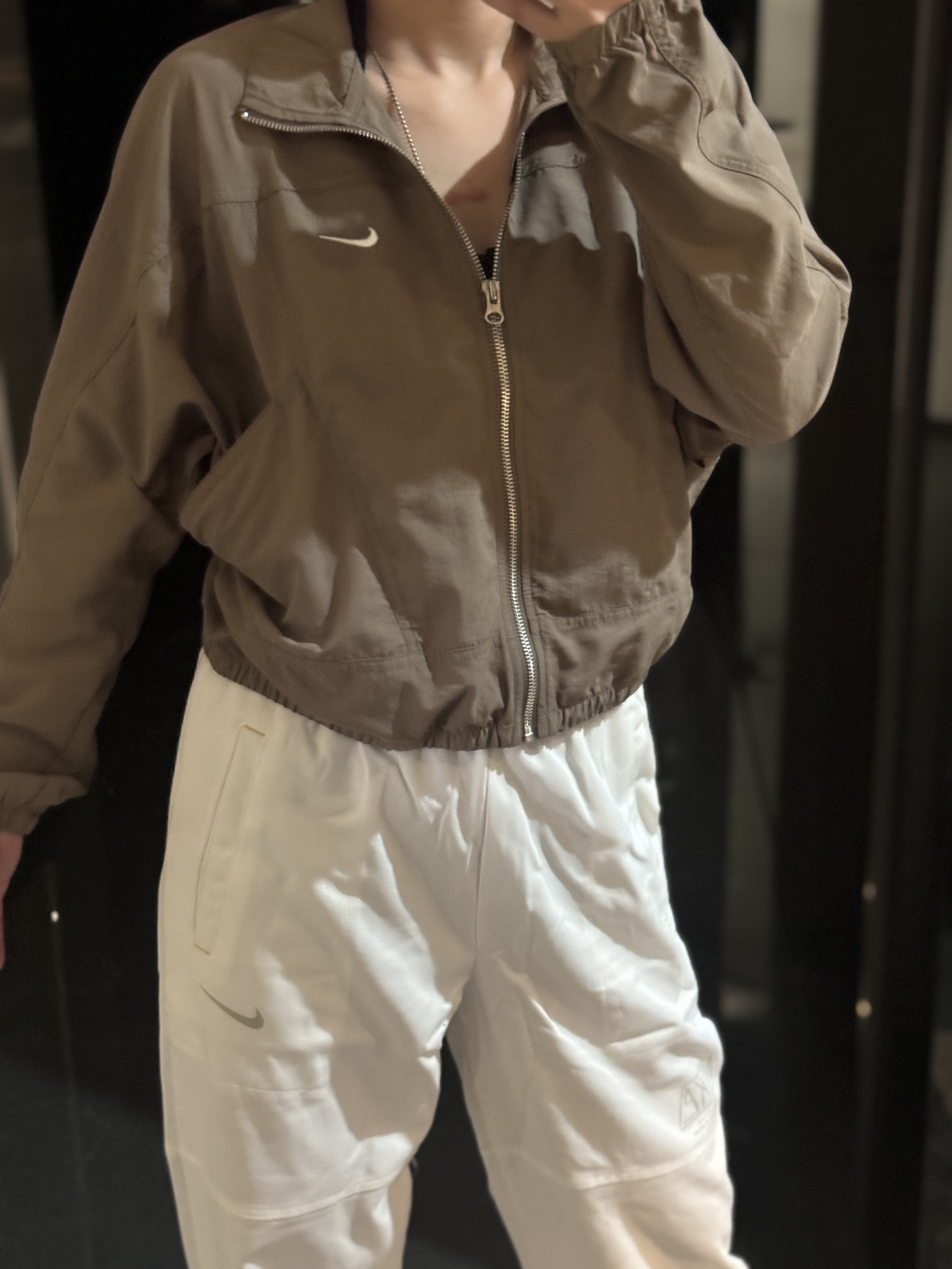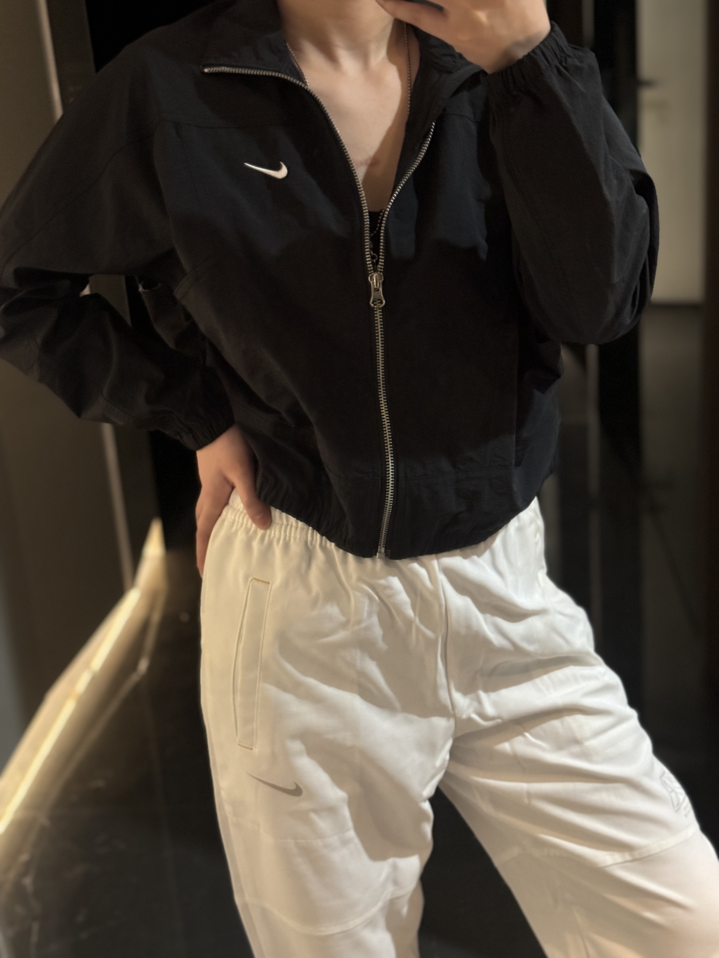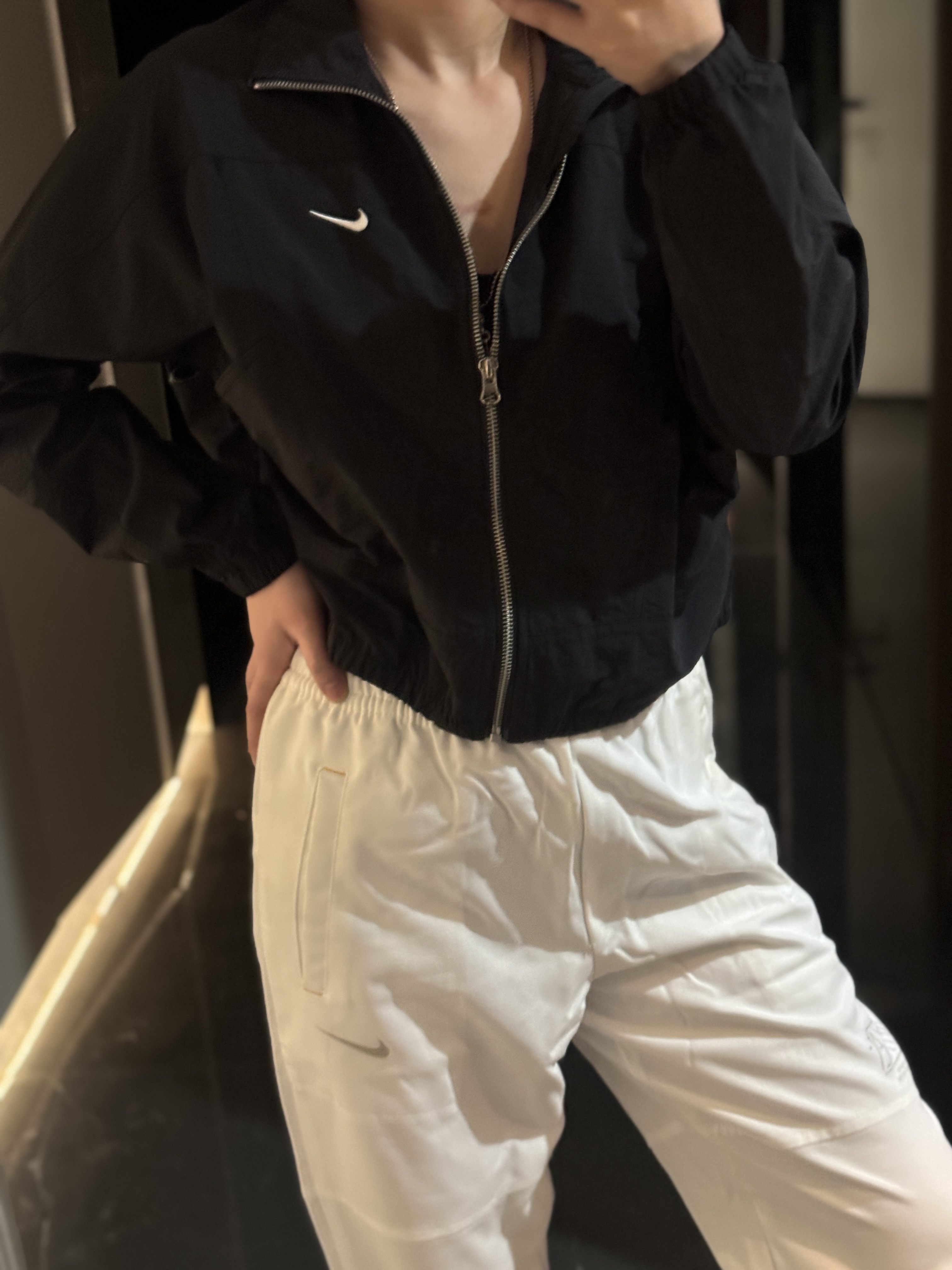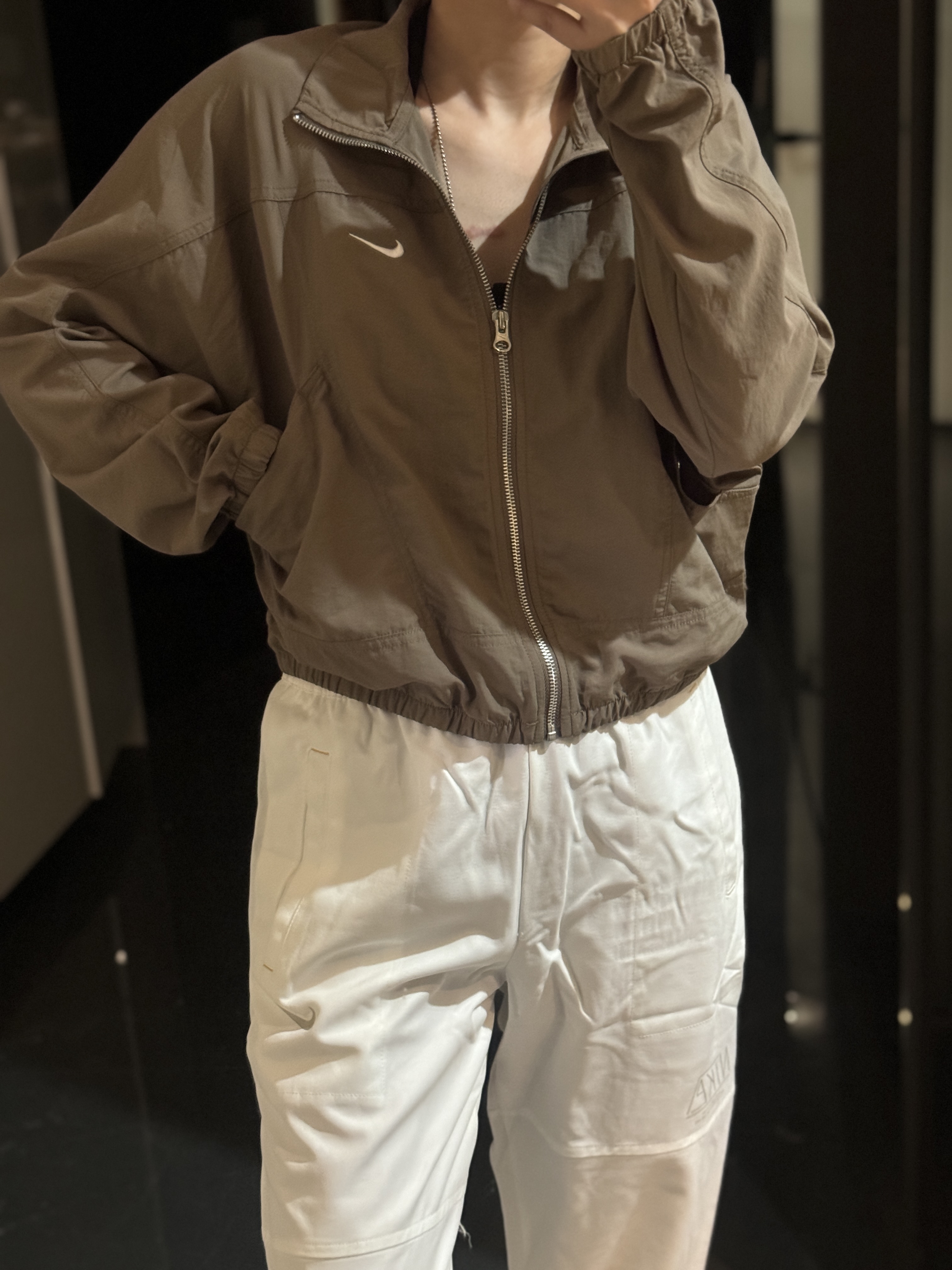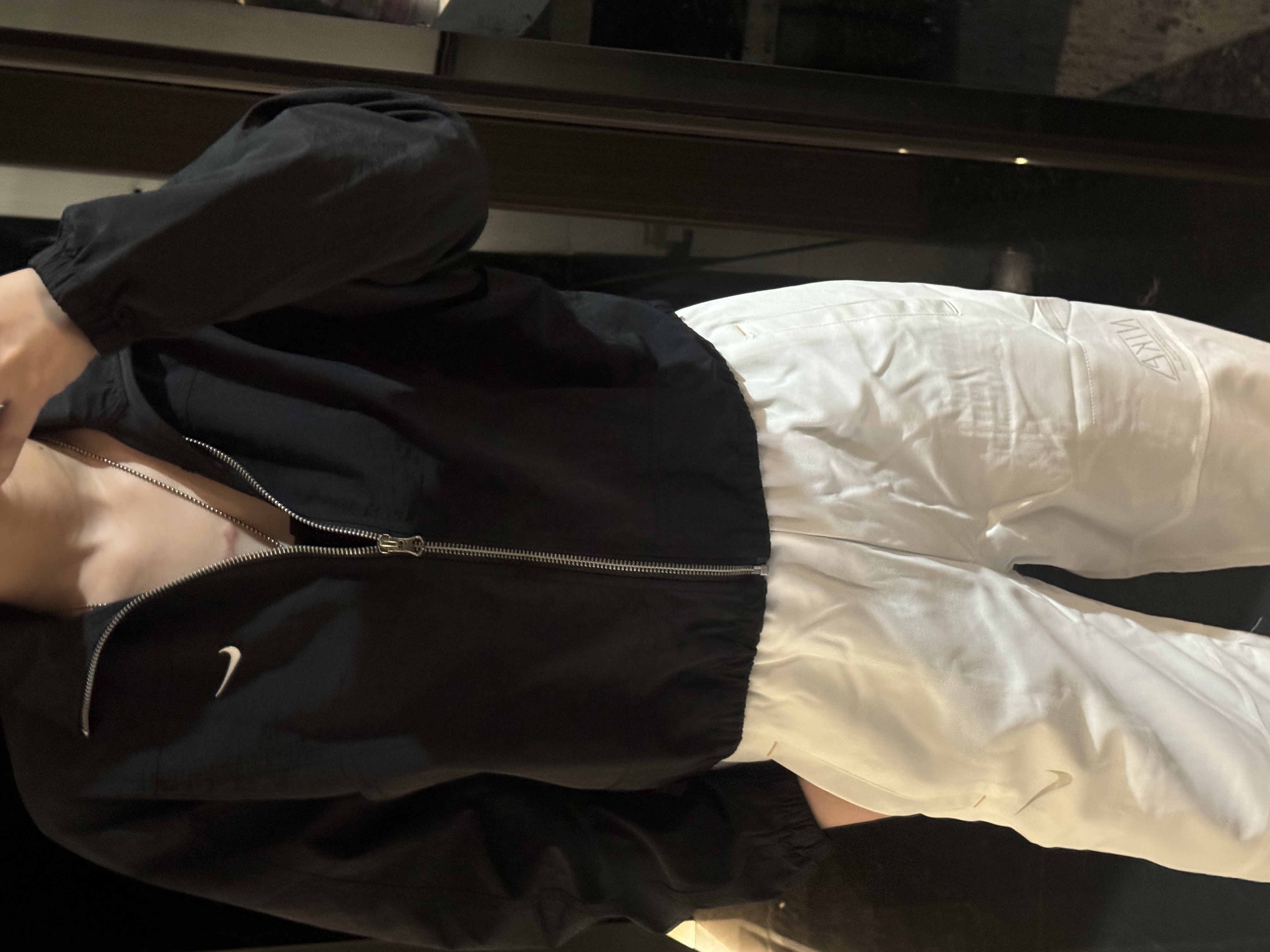 而且上身冰凉是我见过最时尚的防晒外套了!面料超级舒服柔软,没有束缚感,高腰设计显得腿特别长,好喜欢!面料采用先进功能性面料具有防风、防水、透气性能运用 Dri-FIT 等技术