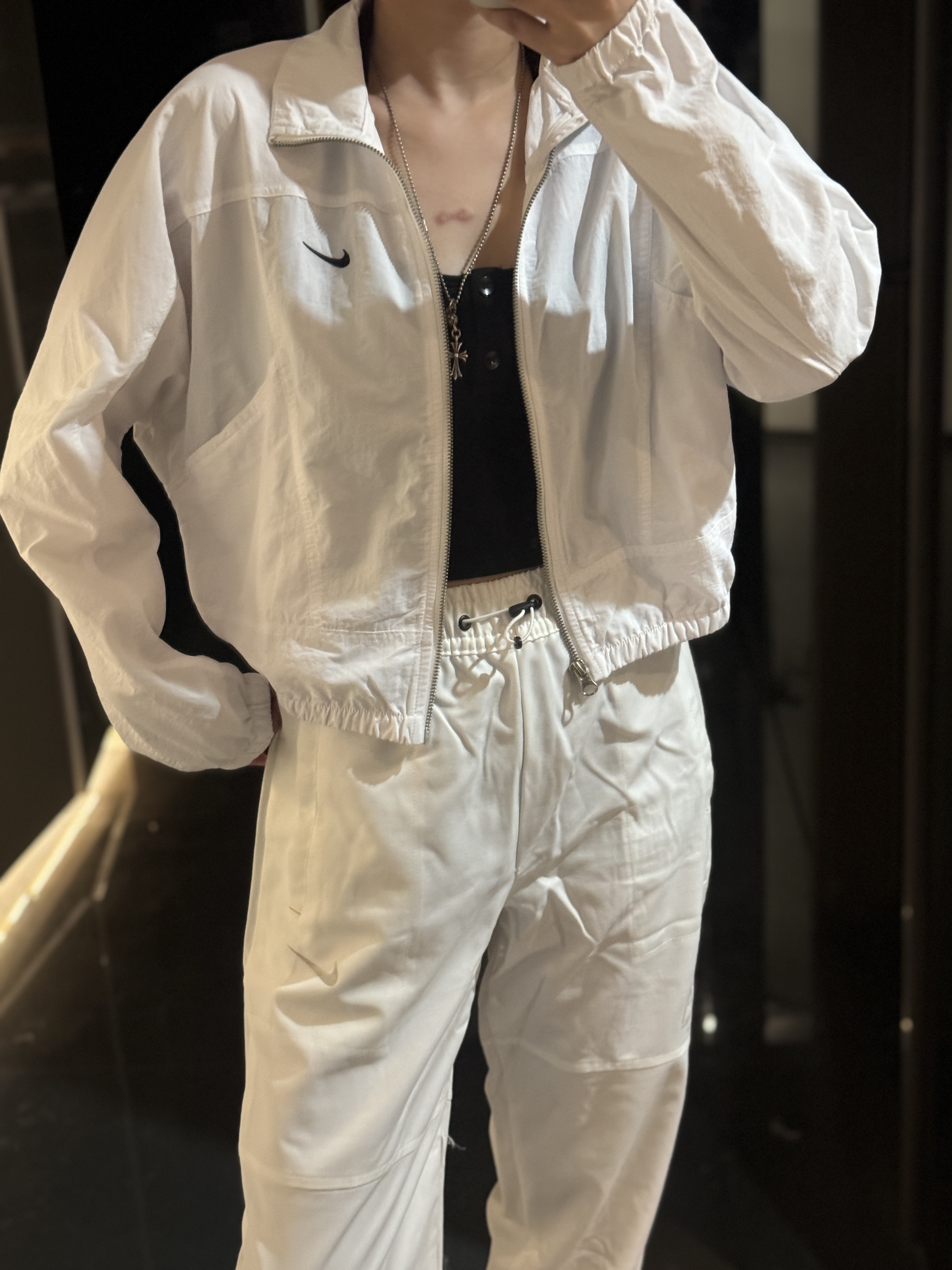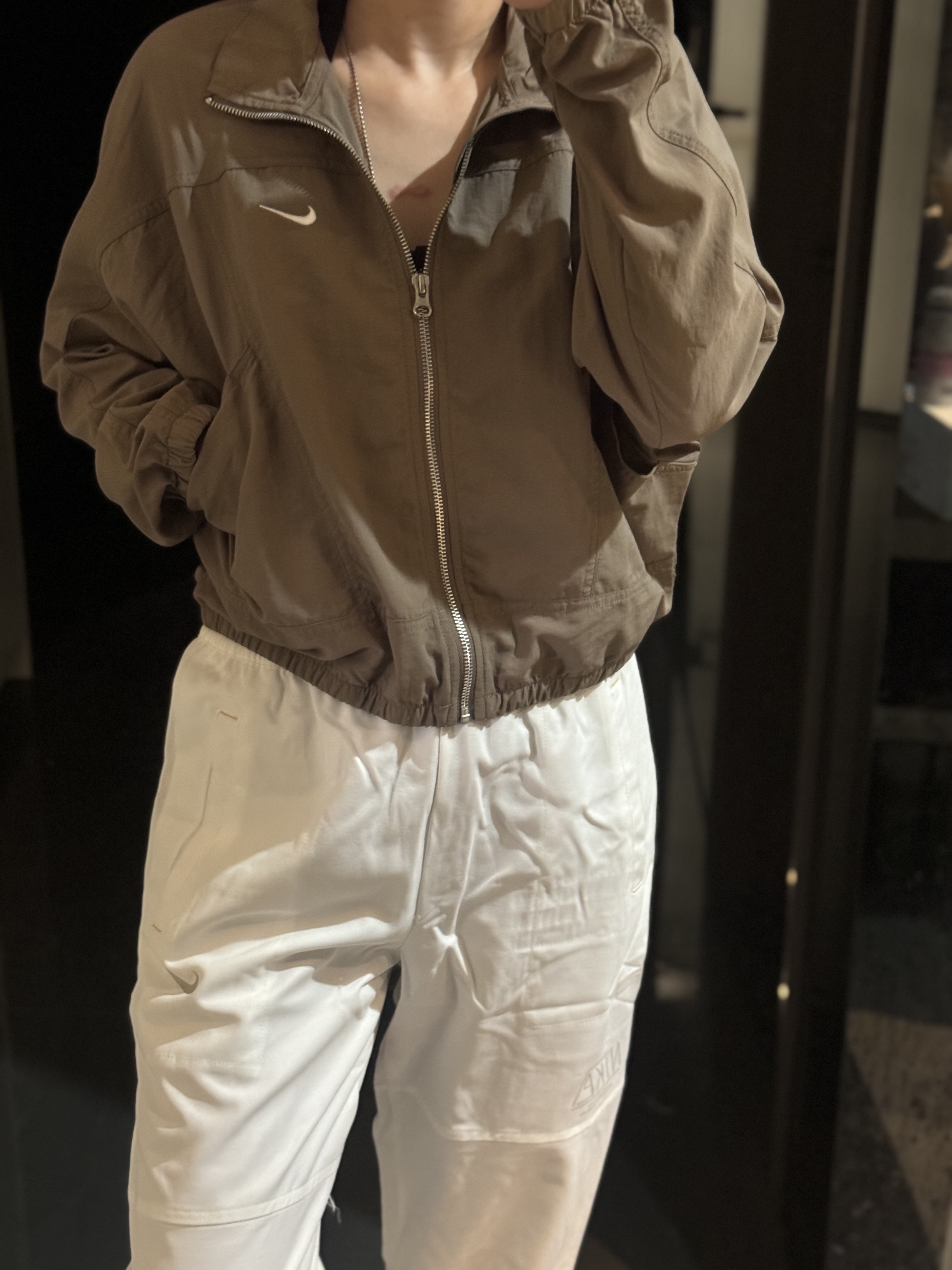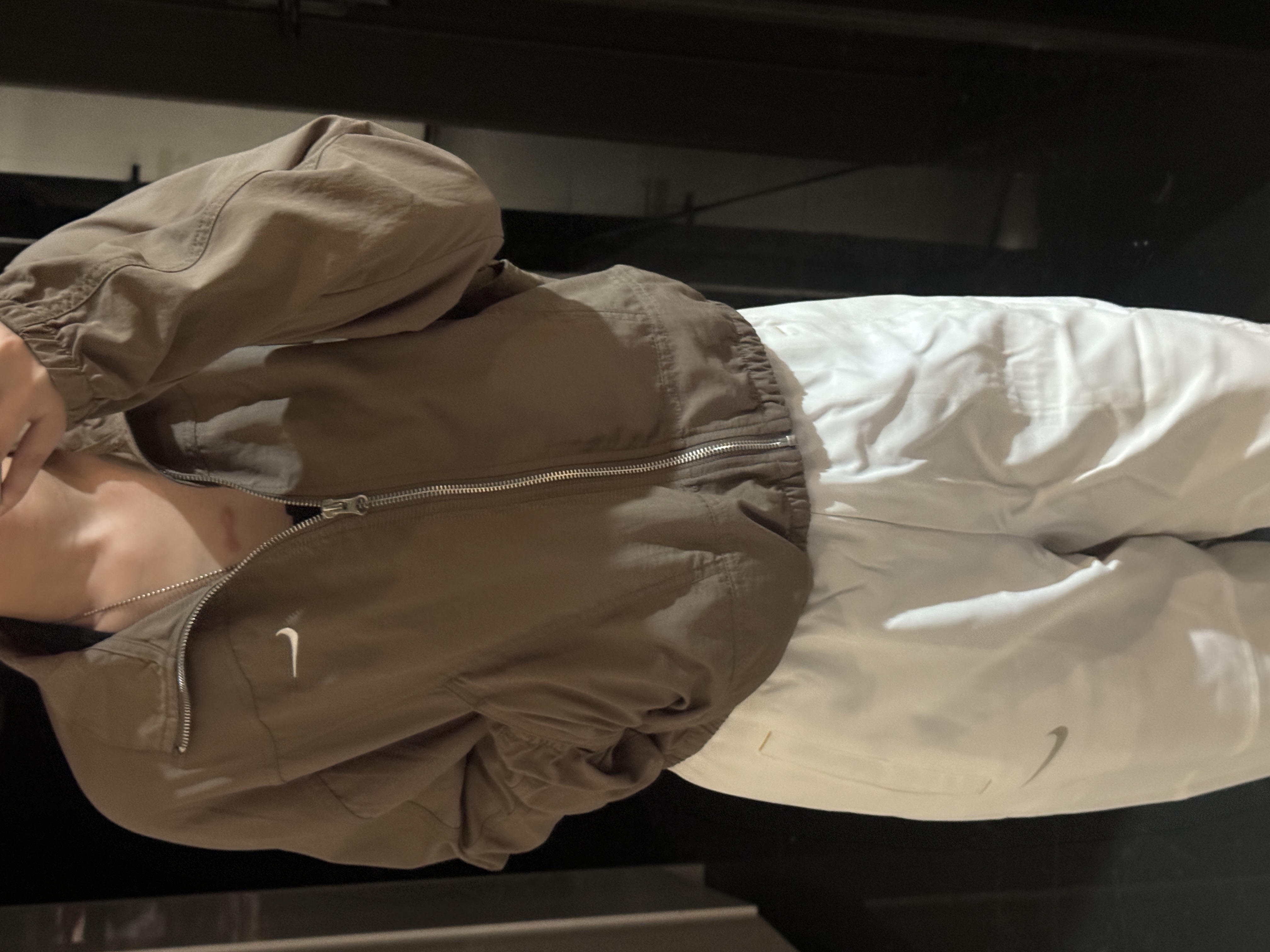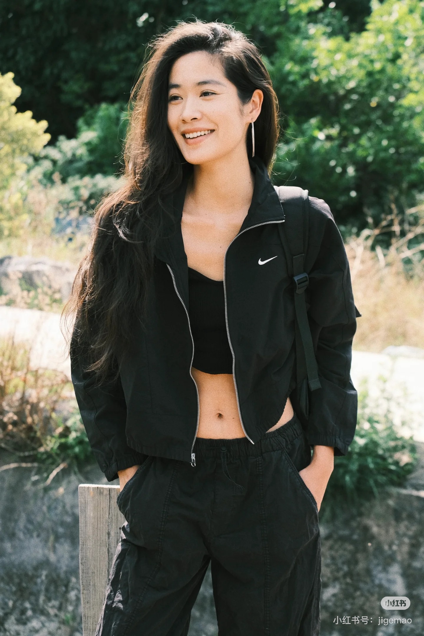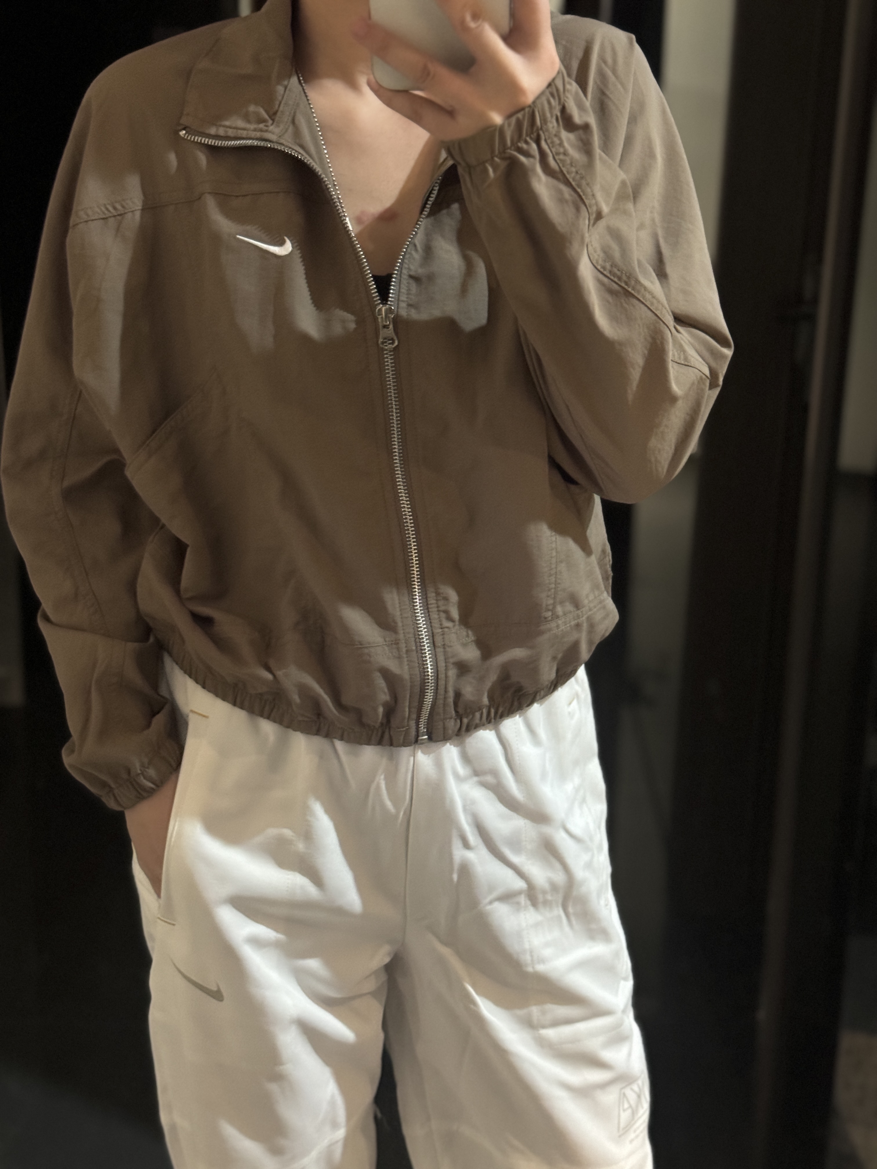 而且上身冰凉是我见过最时尚的防晒外套了!面料超级舒服柔软,没有束缚感,高腰设计显得腿特别长,好喜欢!面料采用先进功能性面料具有防风、防水、透气性能运用 Dri-FIT 等技术