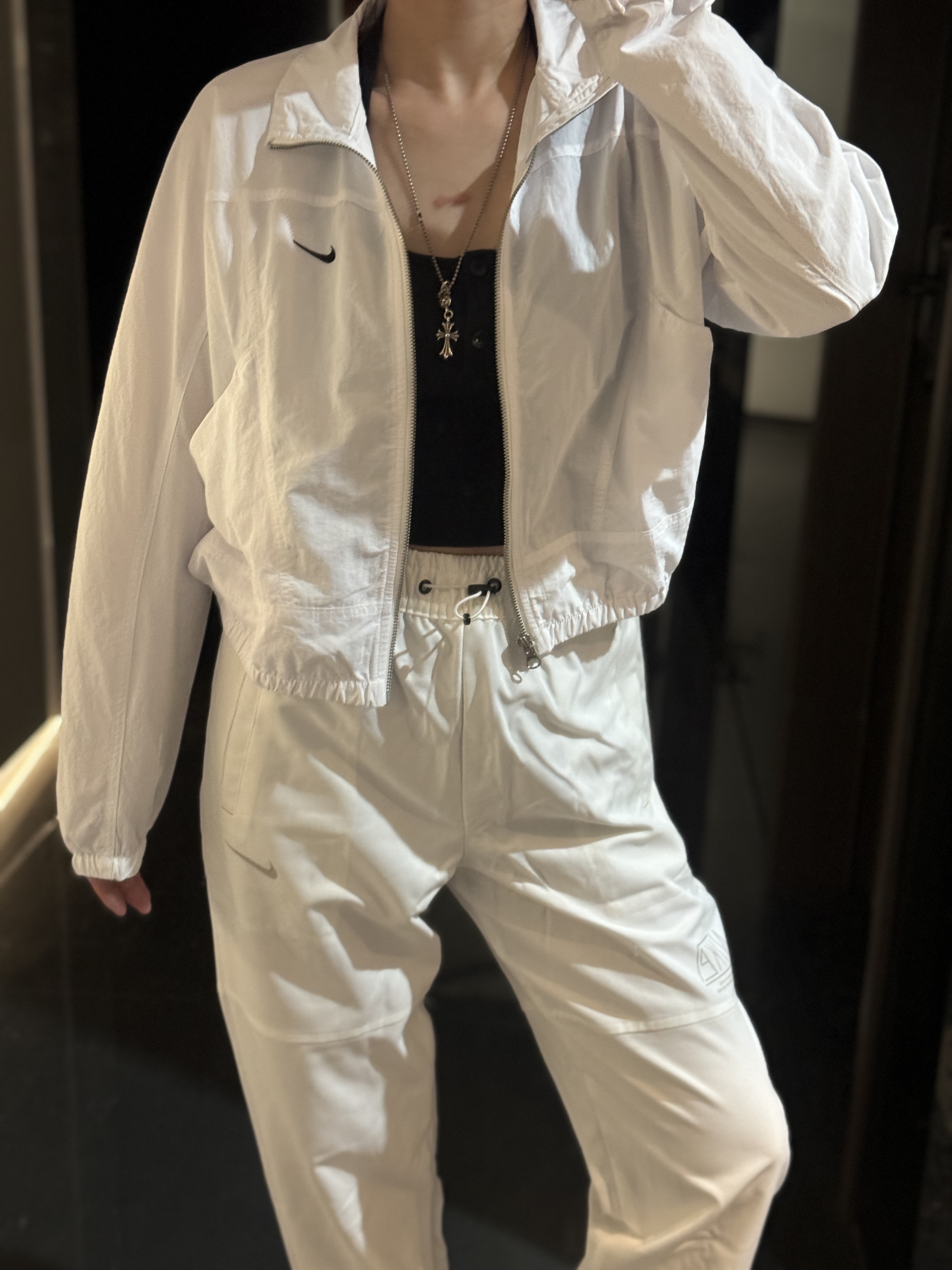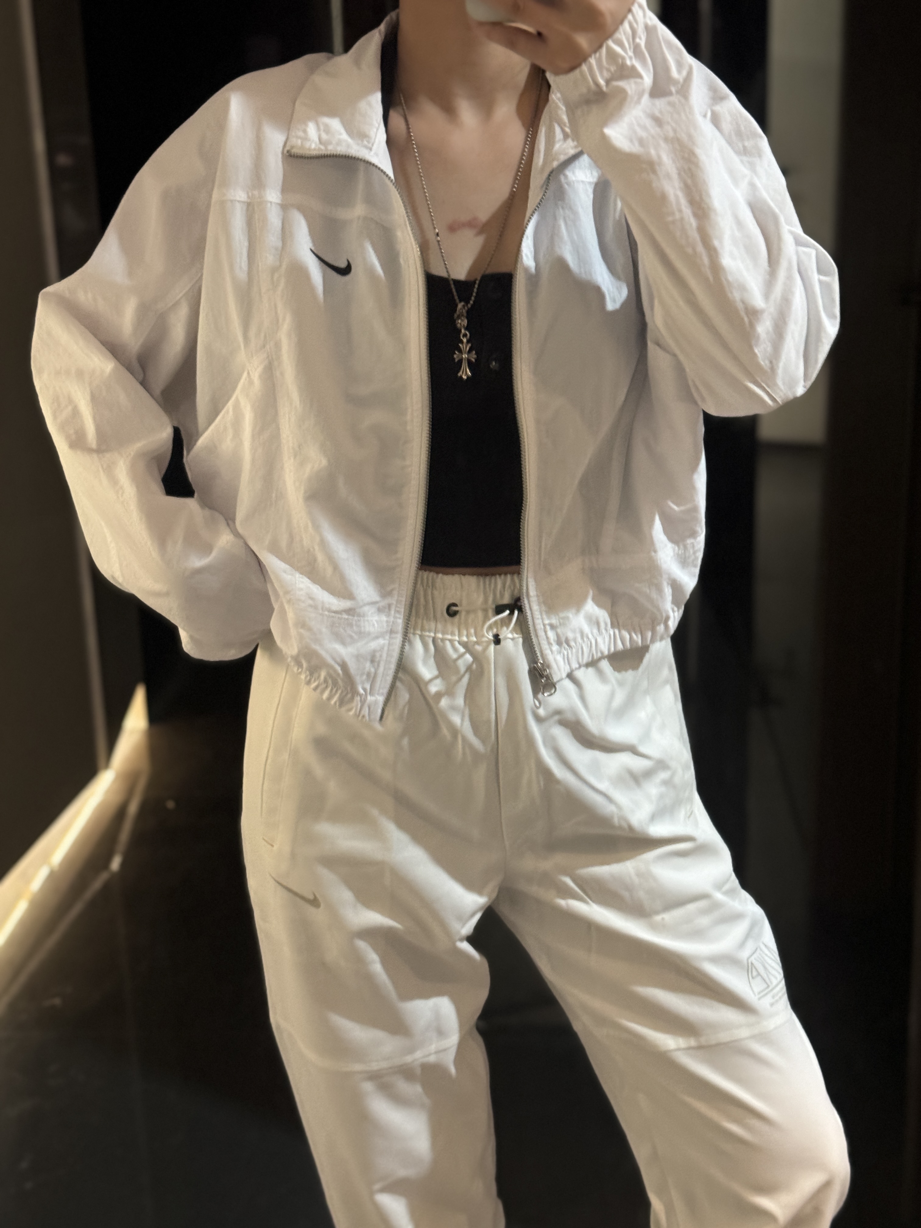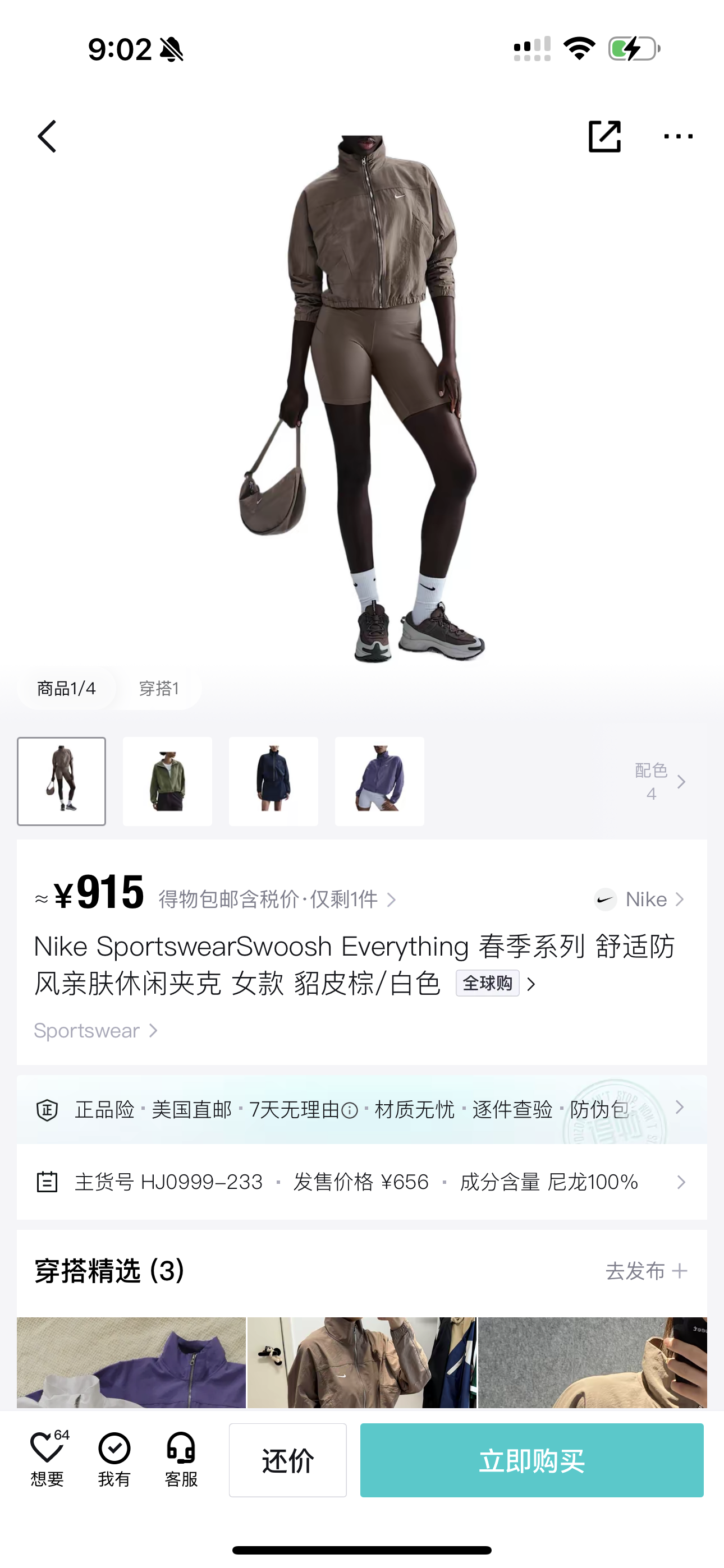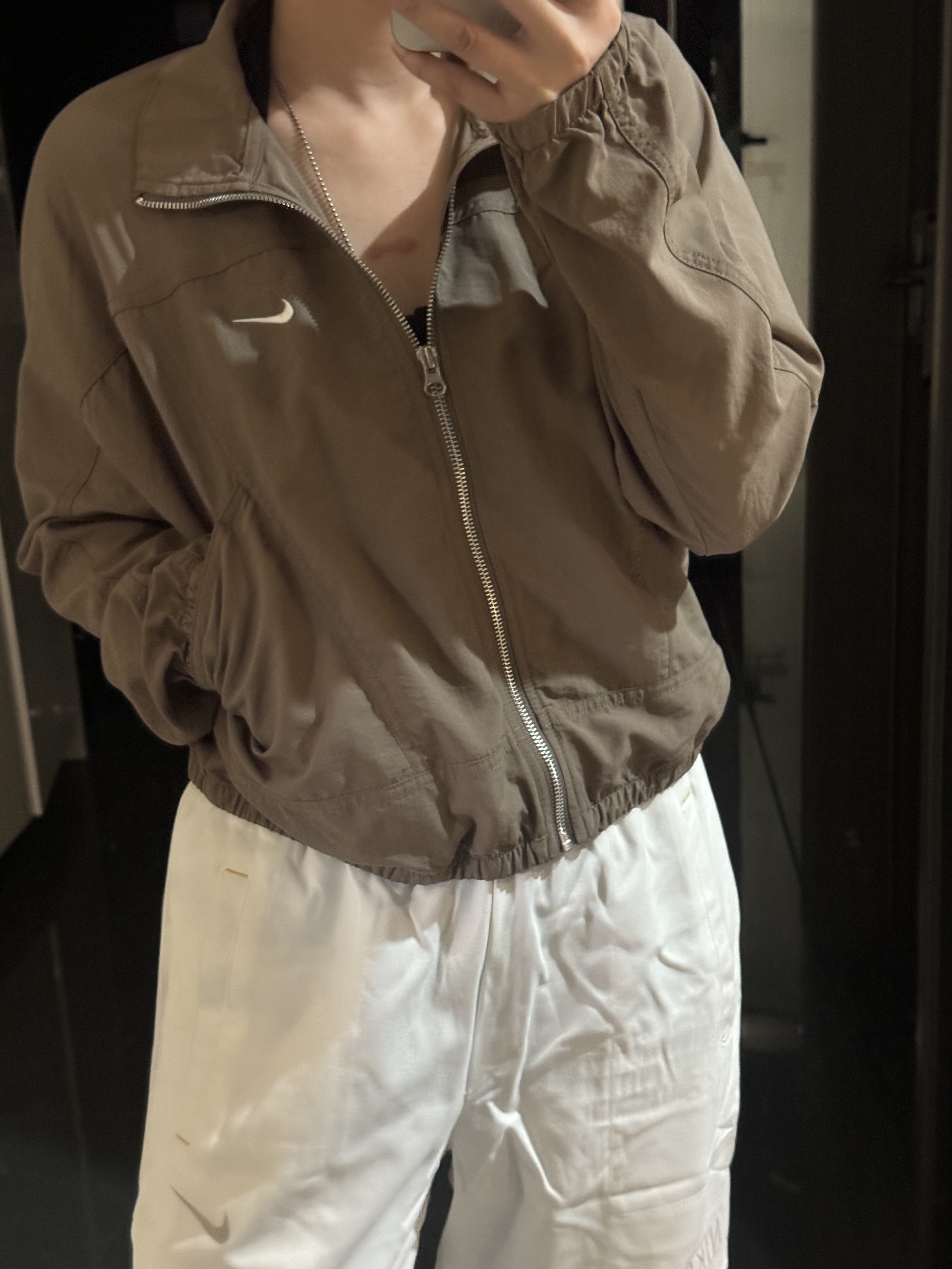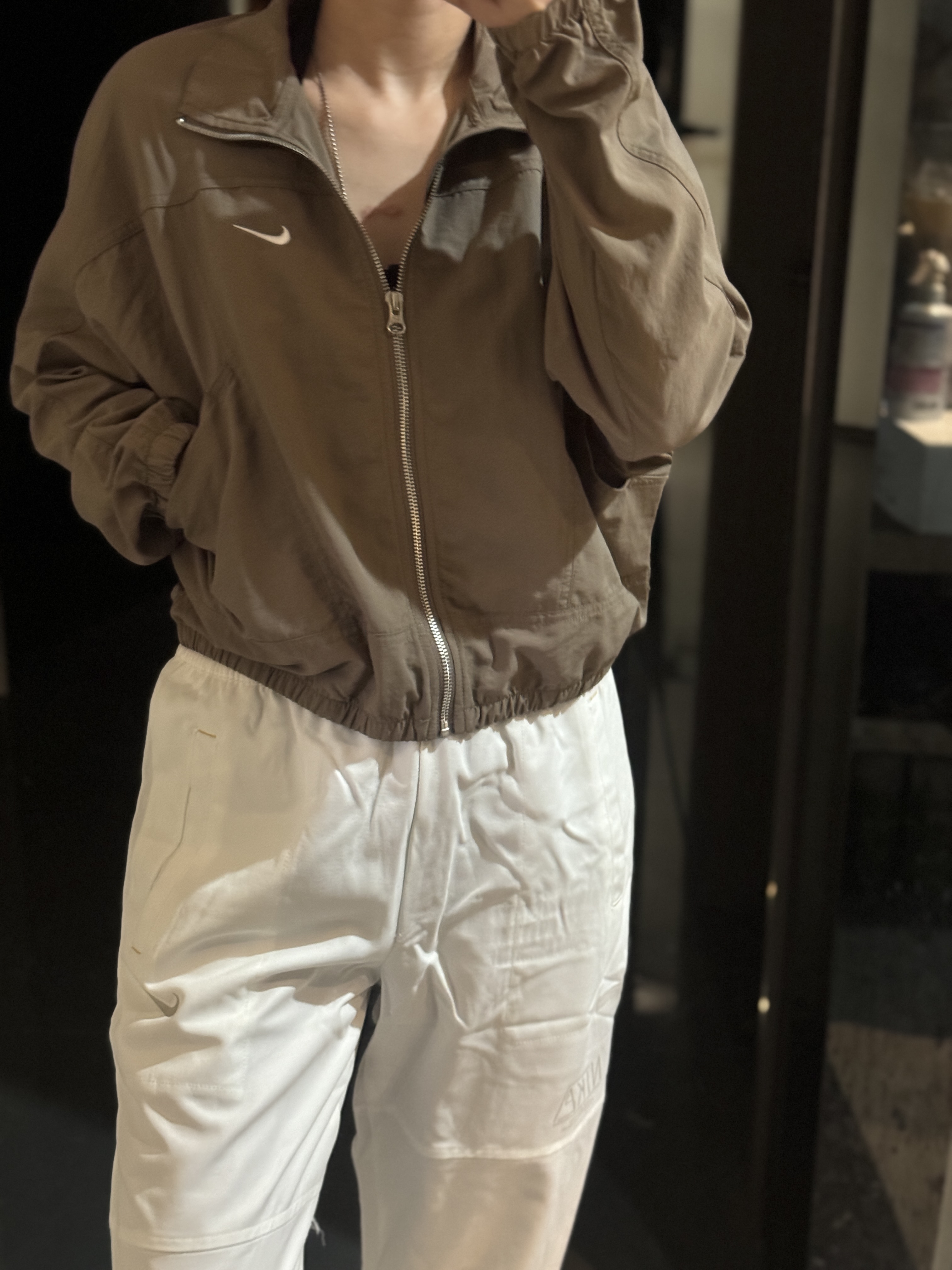 而且上身冰凉是我见过最时尚的防晒外套了!面料超级舒服柔软,没有束缚感,高腰设计显得腿特别长,好喜欢!面料采用先进功能性面料具有防风、防水、透气性能运用 Dri-FIT 等技术