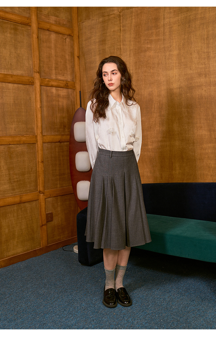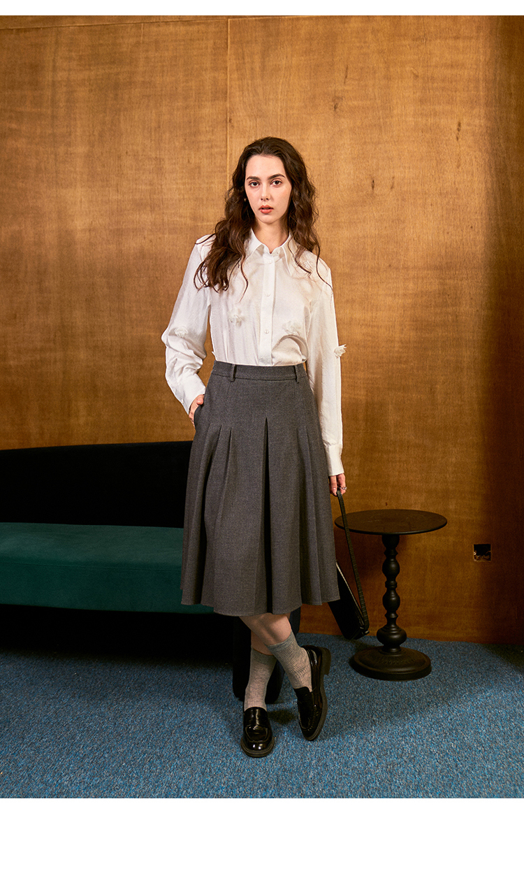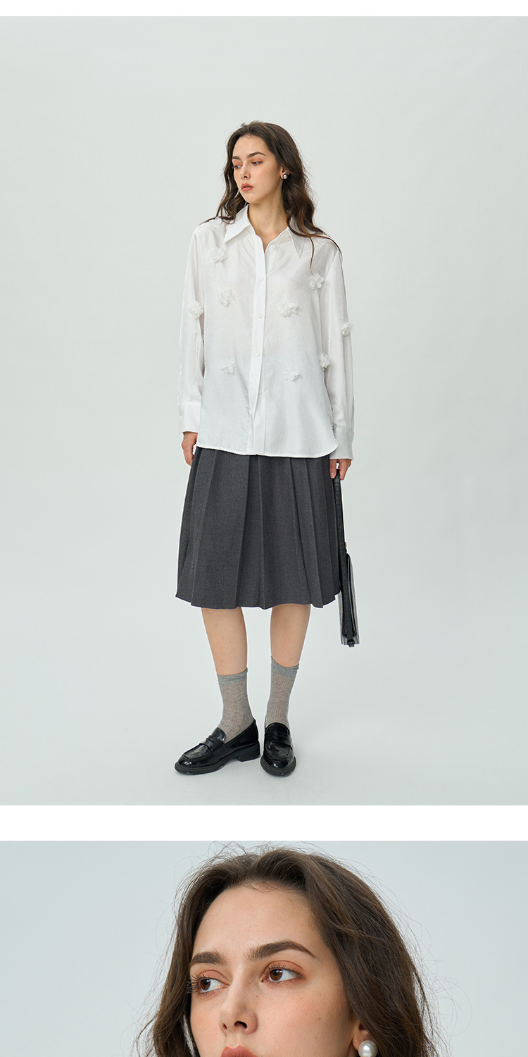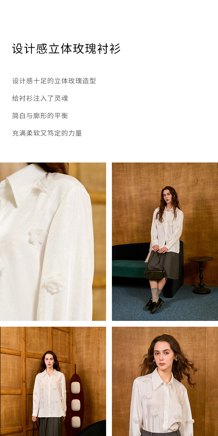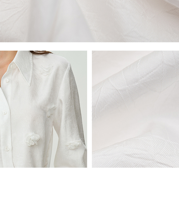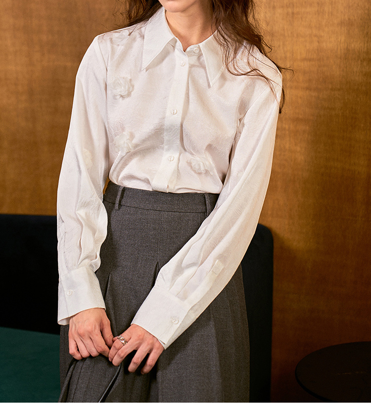 HeyDress立体绣花衬衫女白色缎面设计感通勤优雅气质宽松百搭上衣