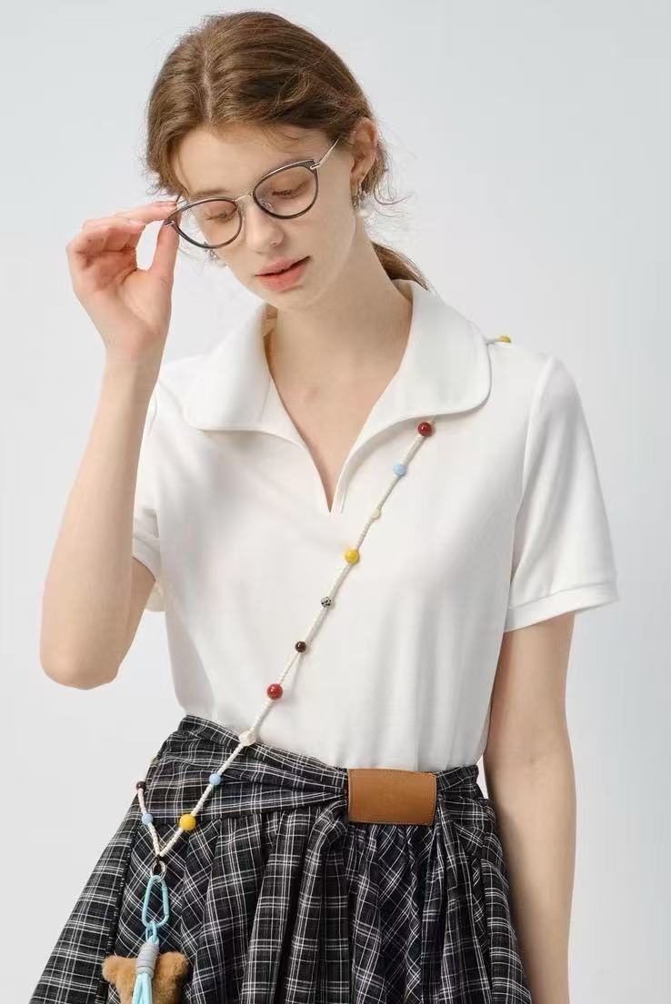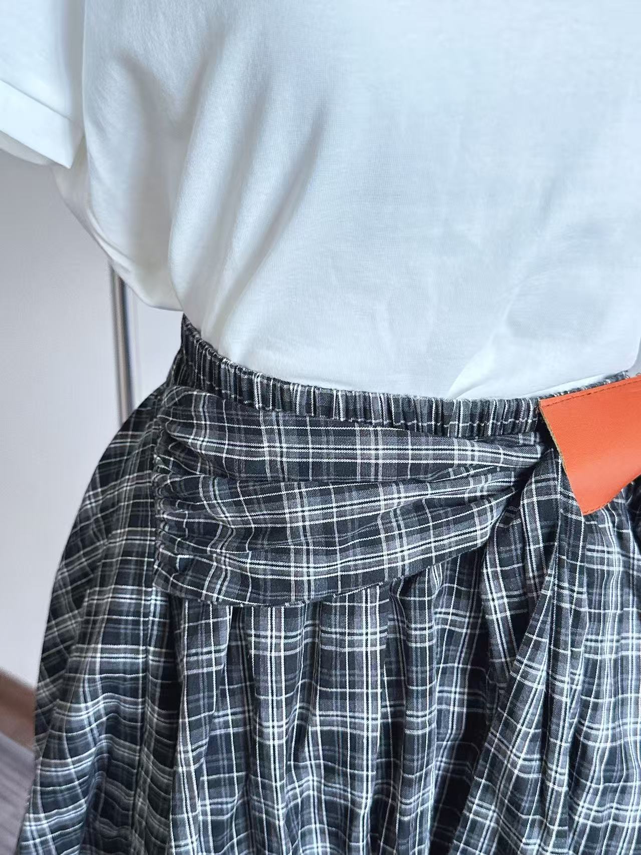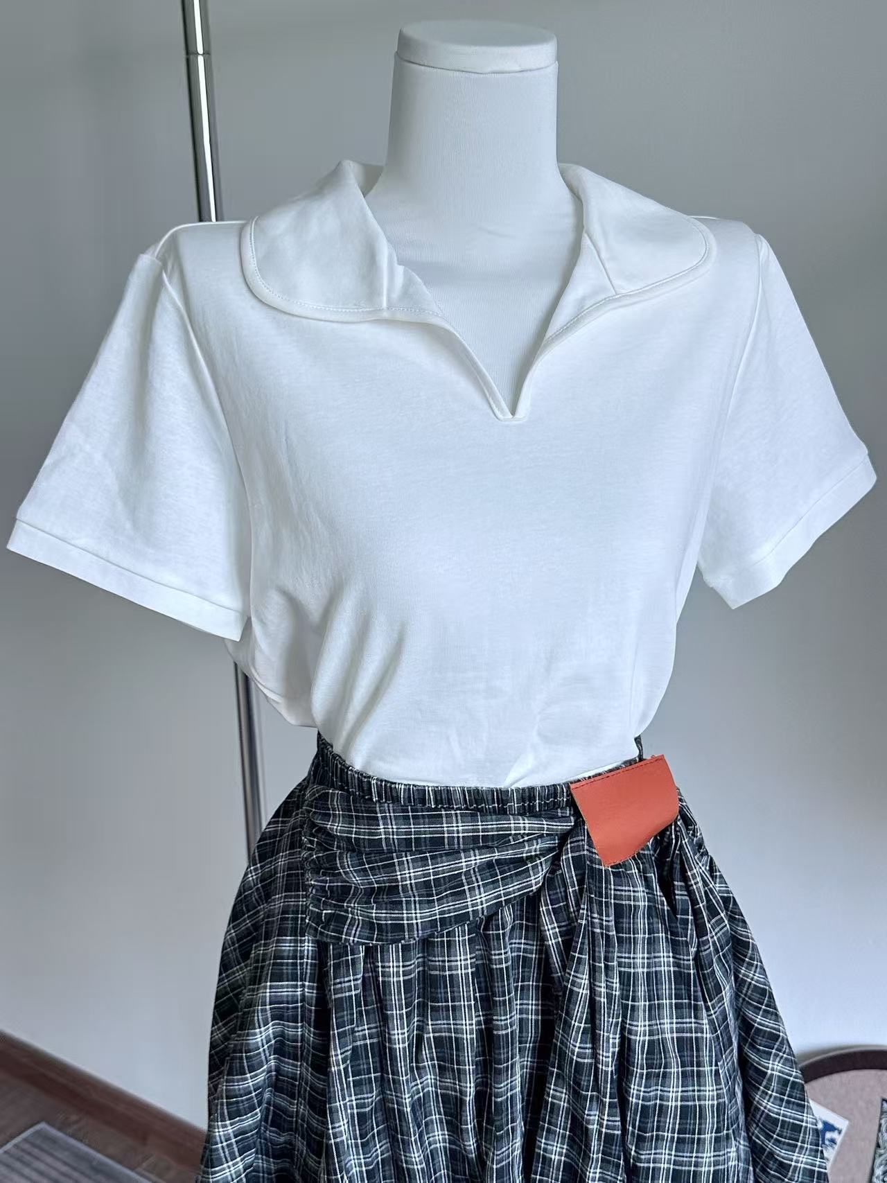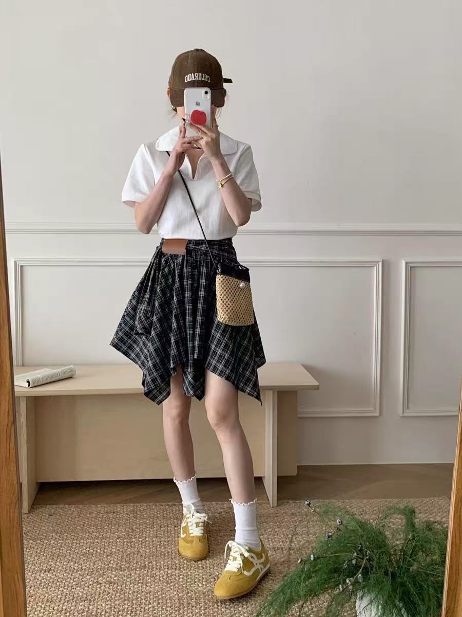 【黑白格子不规则半身裙➕娃娃领正肩T恤】不规则宽松的版型显瘦又藏肉肉,甜酷风造型 简约韩系氛围感穿搭