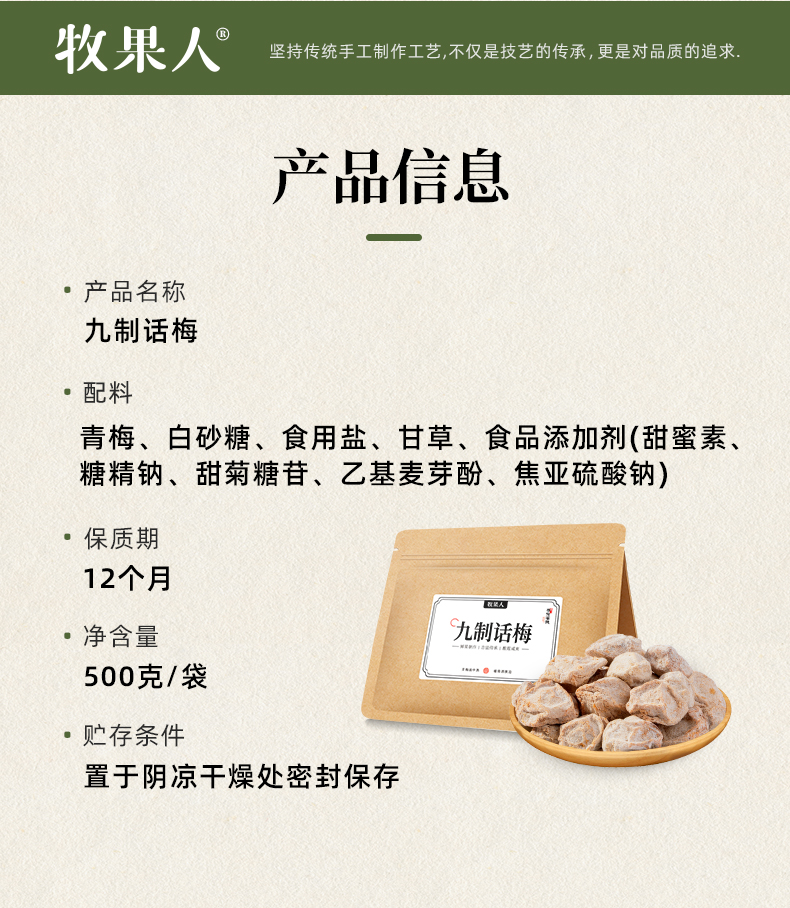 牧果人九制话梅 100g/500g/袋 果肉厚实 酸甜咸鲜