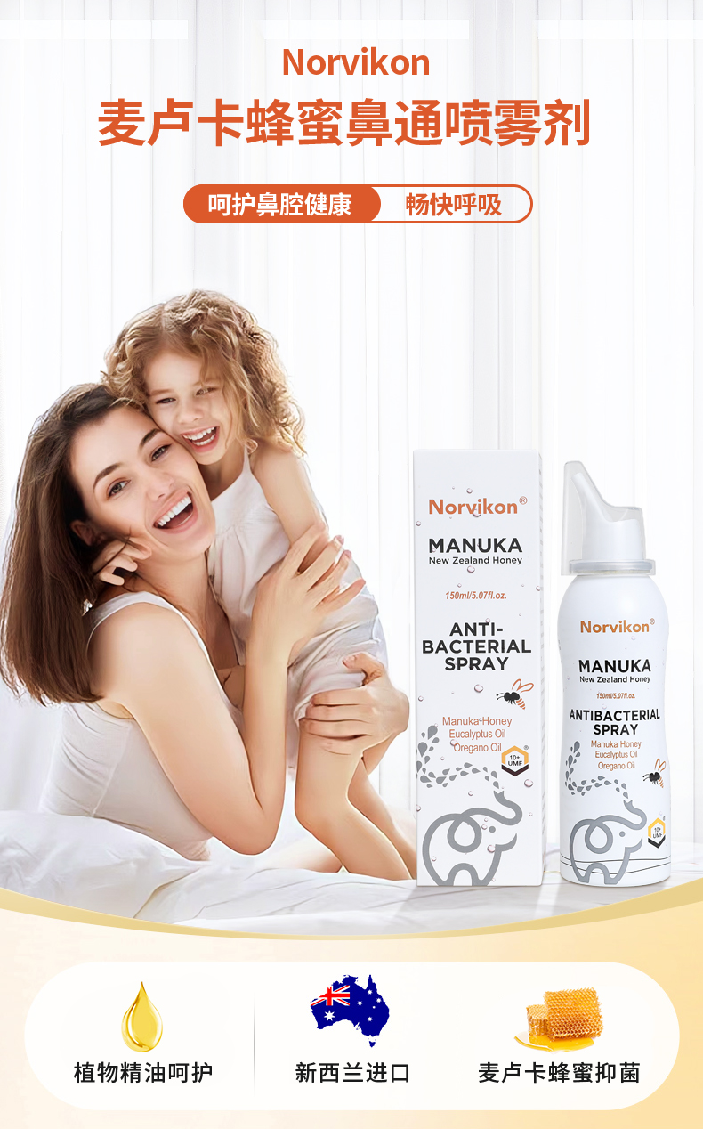 【鼻炎鼻塞救星一喷鼻通畅快呼吸】新西兰Norvikon麦卢卡蜂蜜鼻通喷雾鼻炎鼻塞救星鼻腔干燥敏感喷嚏不止换季不适