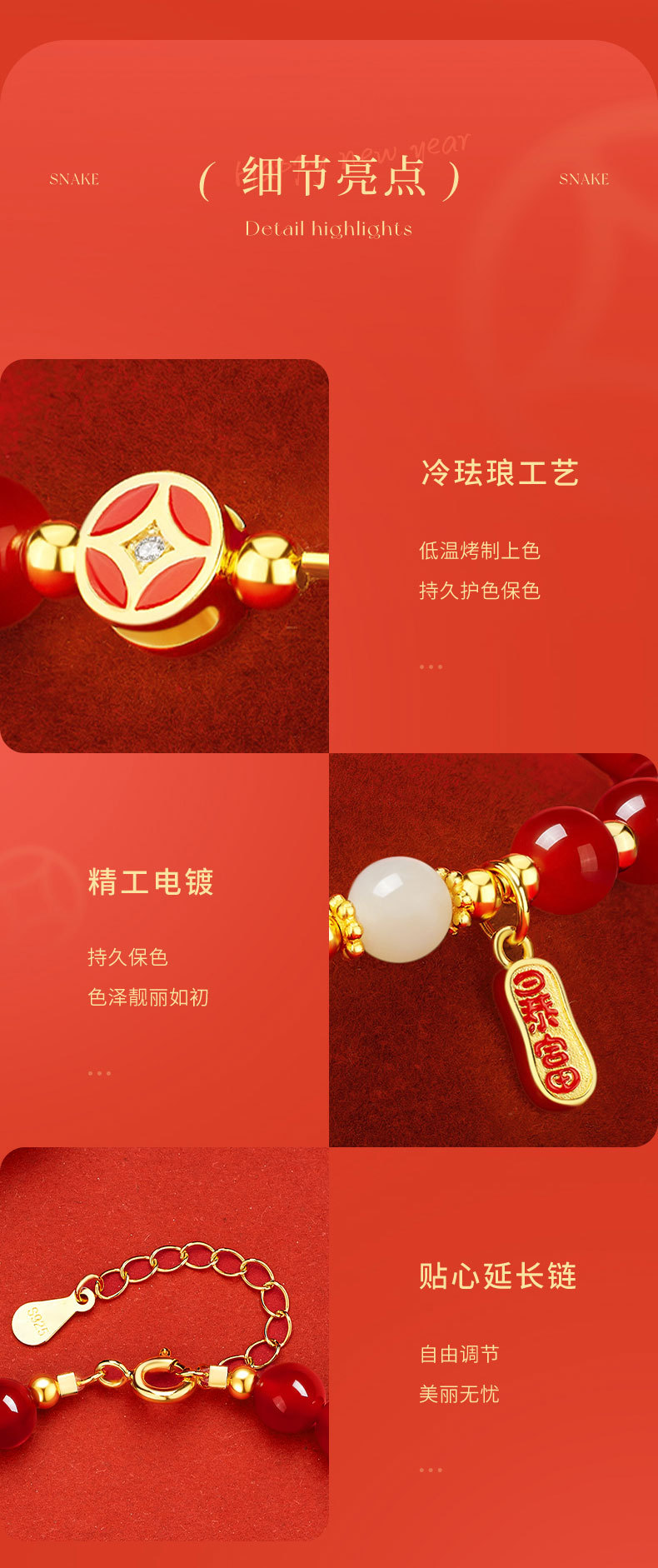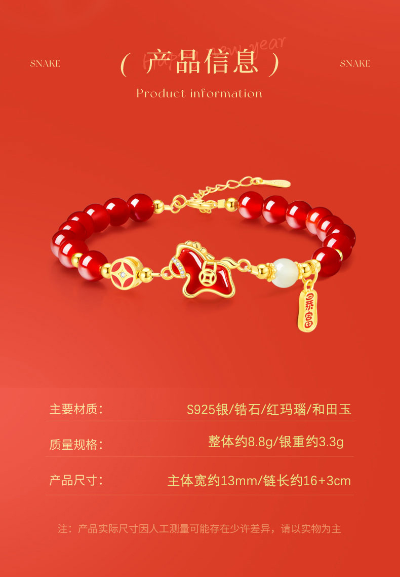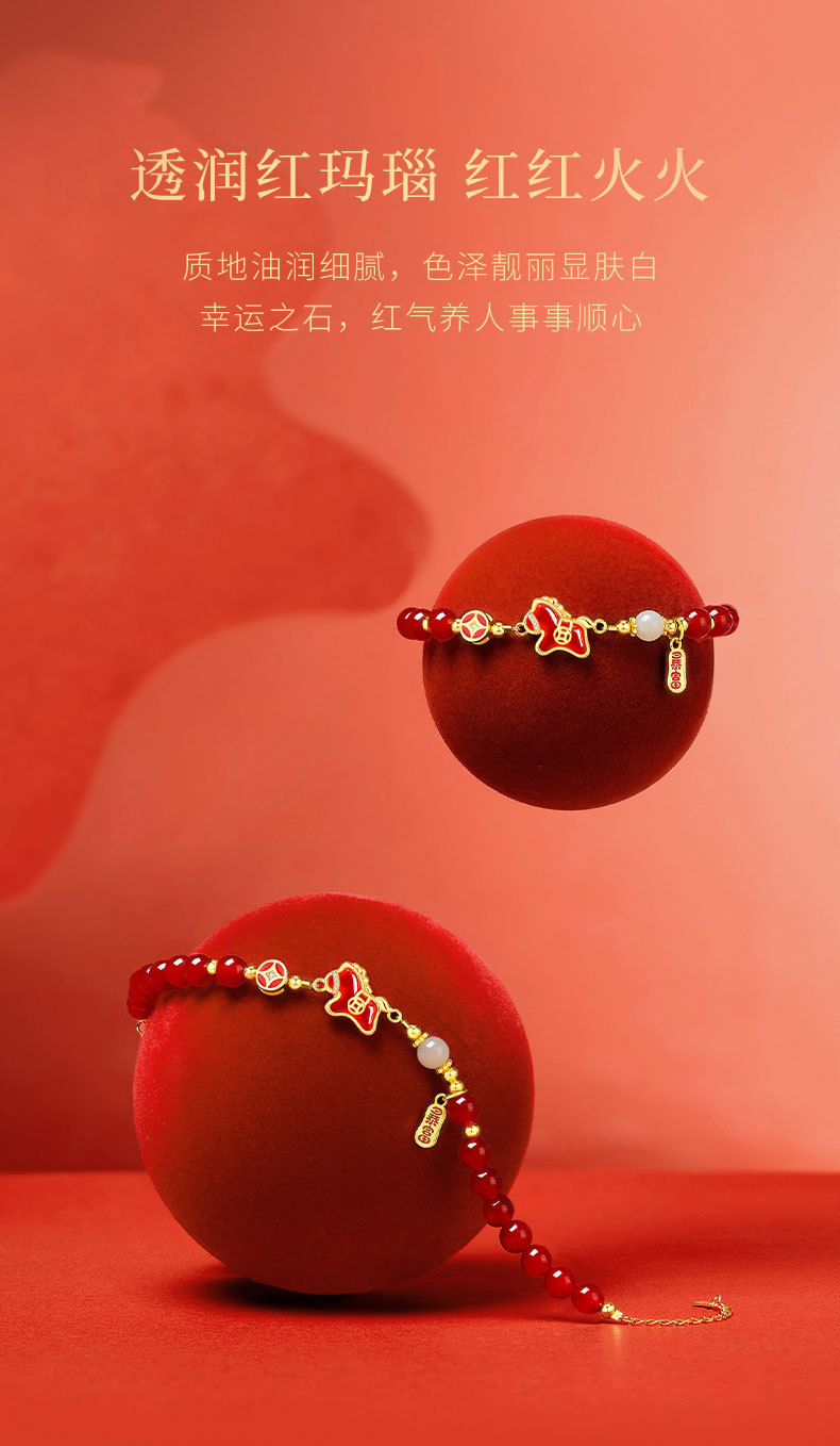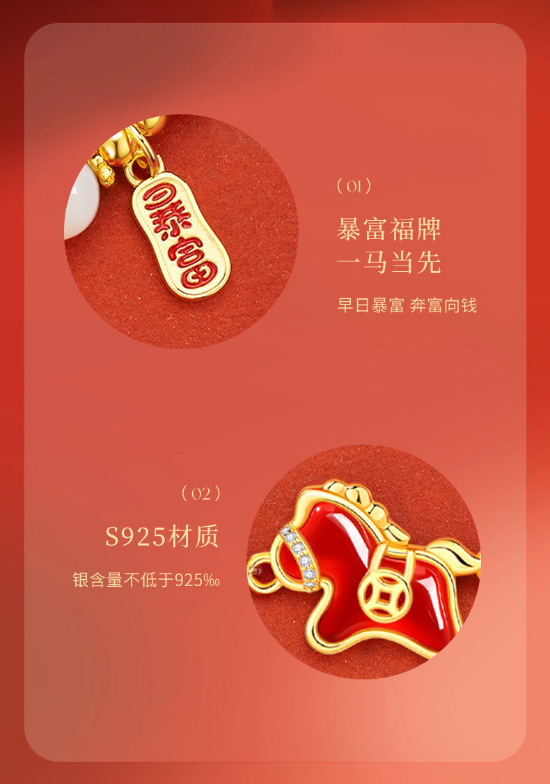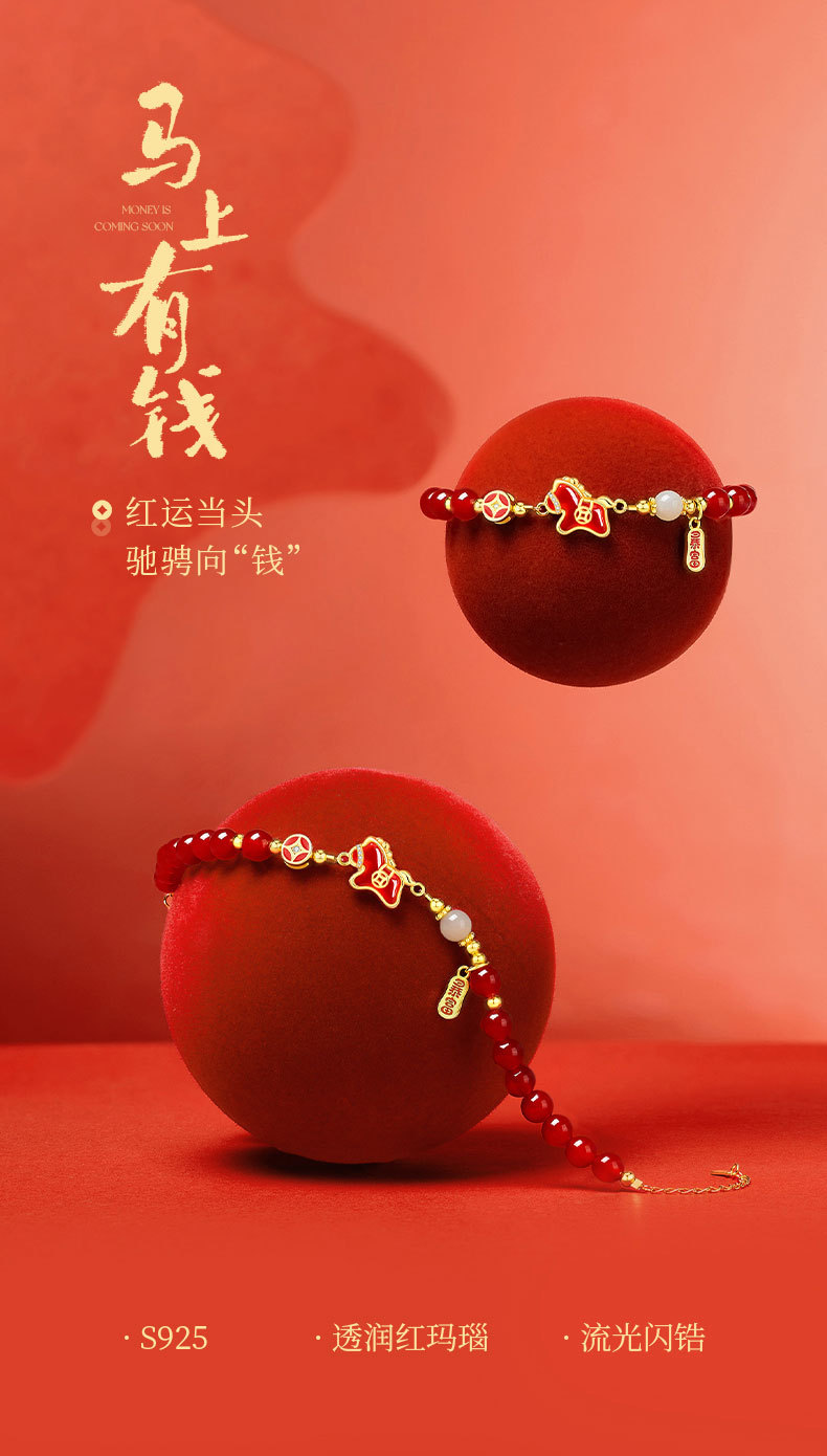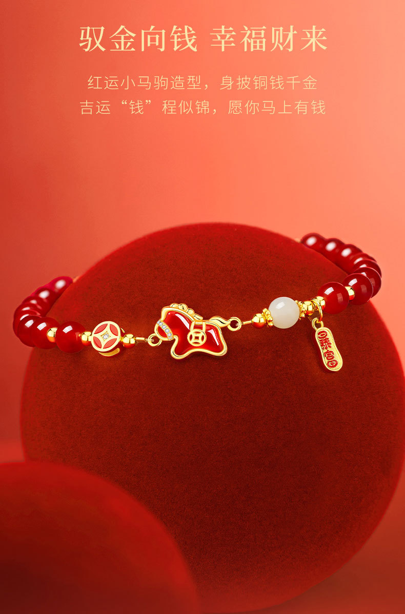 【驭金向钱 幸福财来 冷珐琅工艺】马上有钱S925银钱马轻奢新中式红玛瑙本命年手串