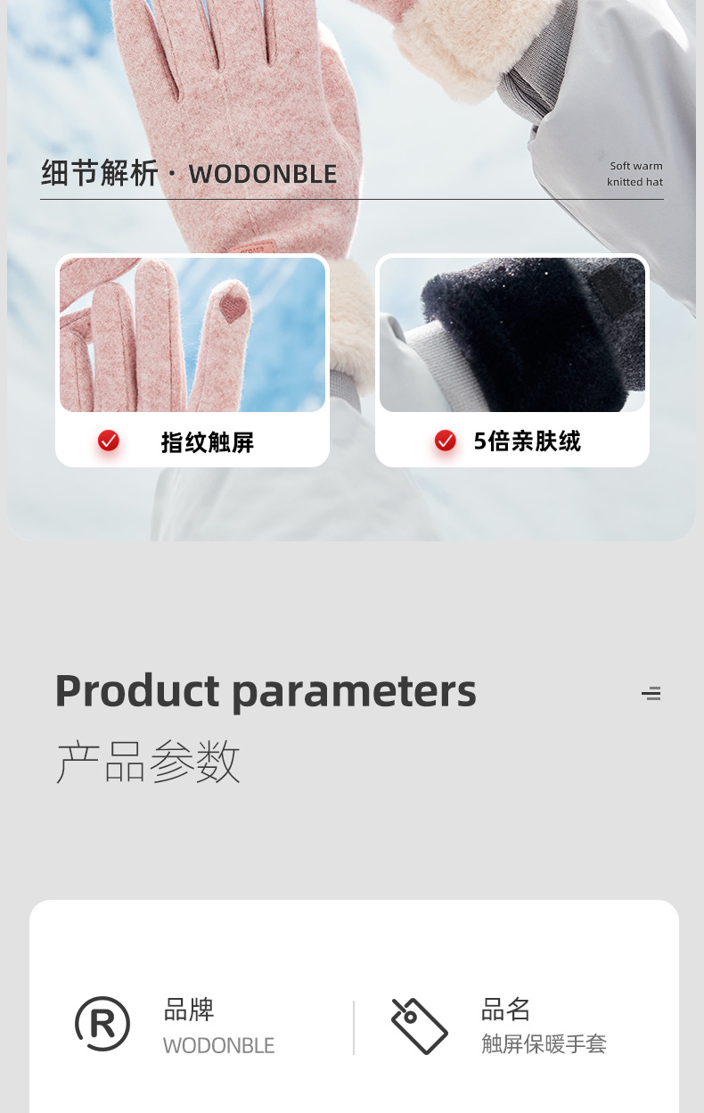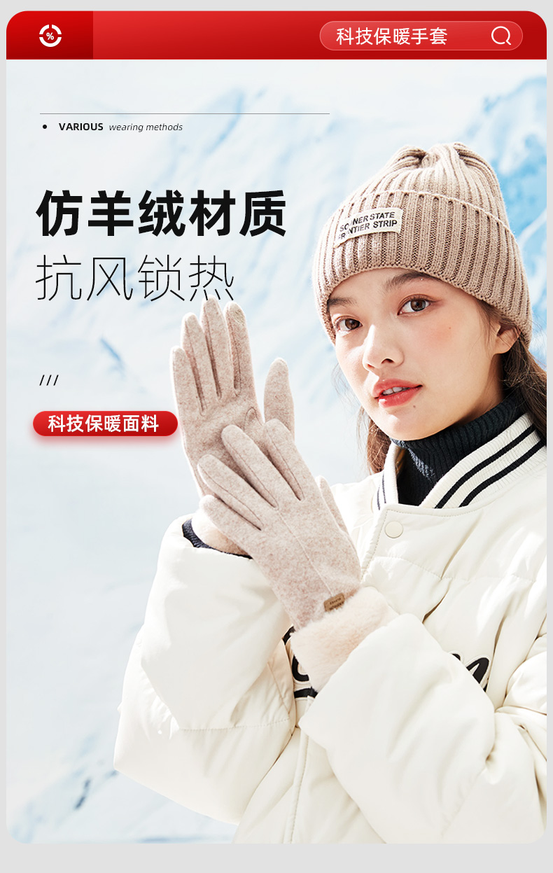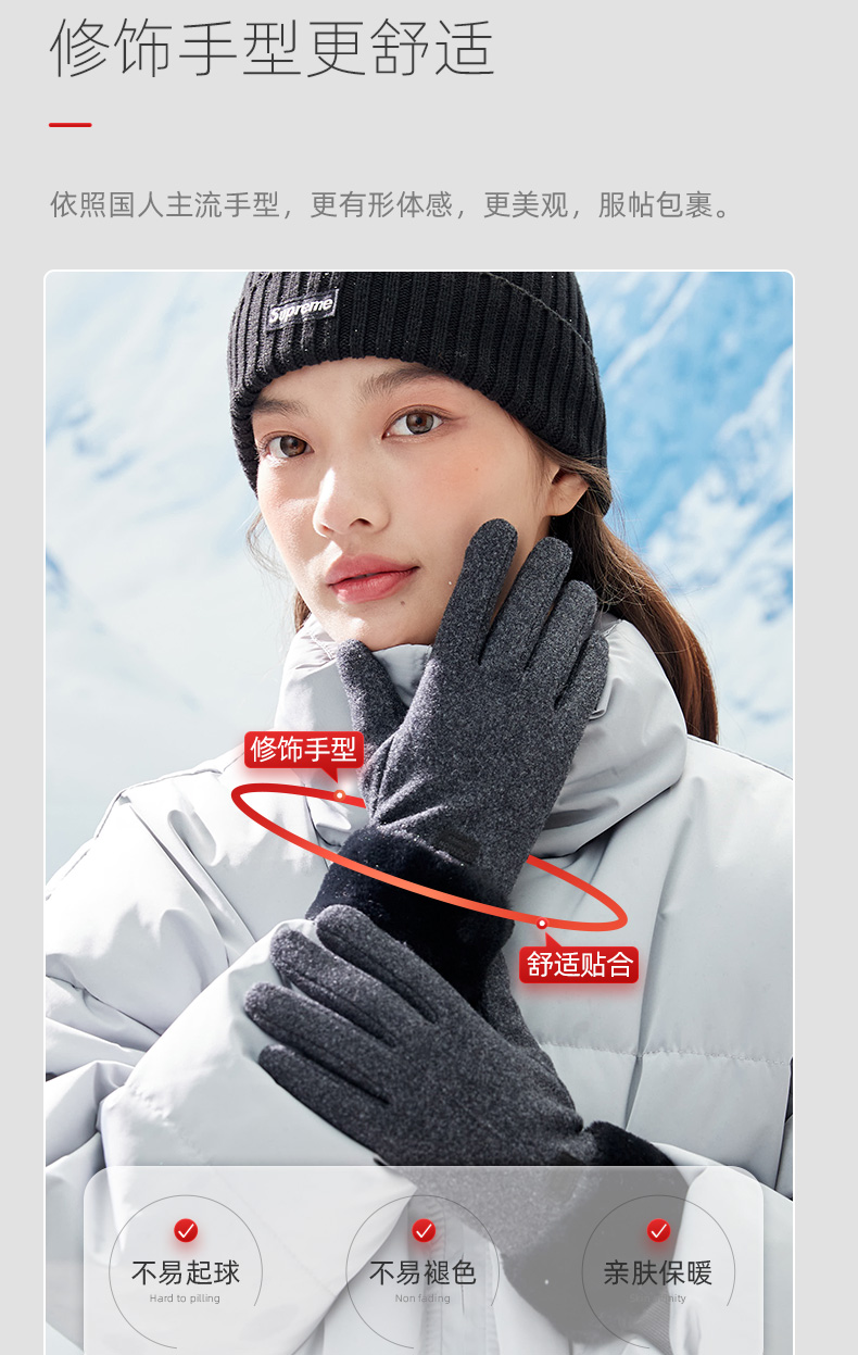 【冬天不怕冷】雾敦堡WODONBLE仿羊绒抗风手套指尖触屏仿羊毛材质内胆加绒升级加厚立体剪裁修饰手型更舒适