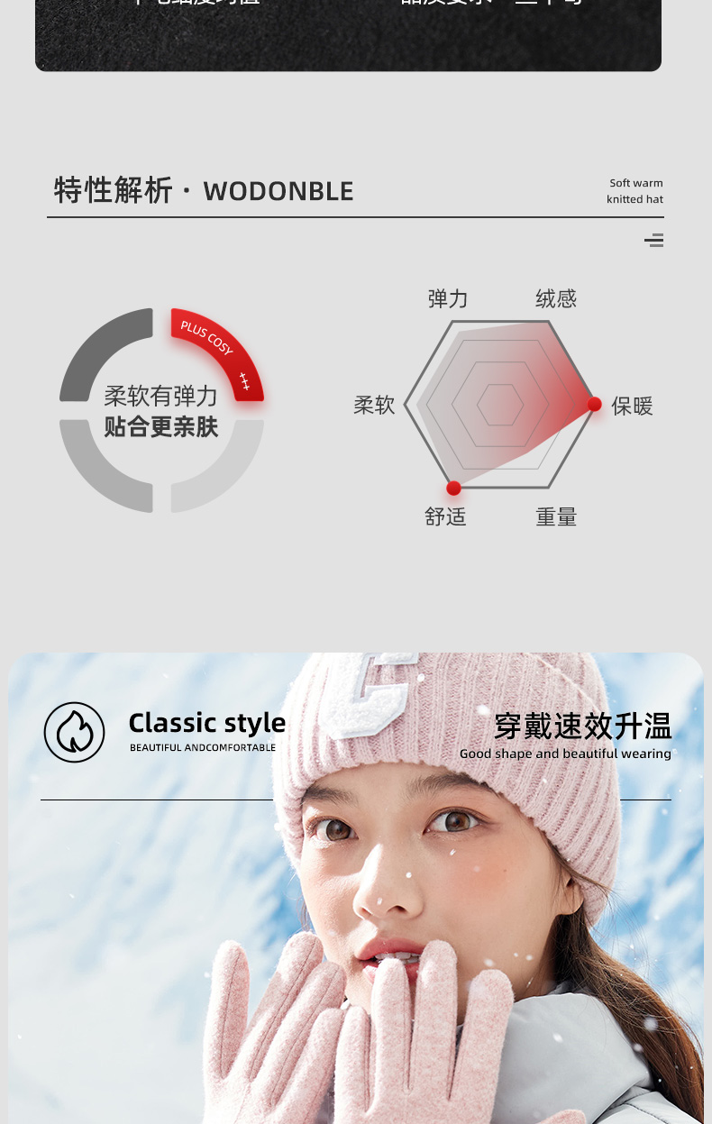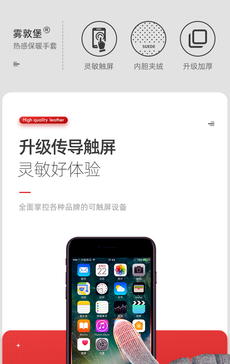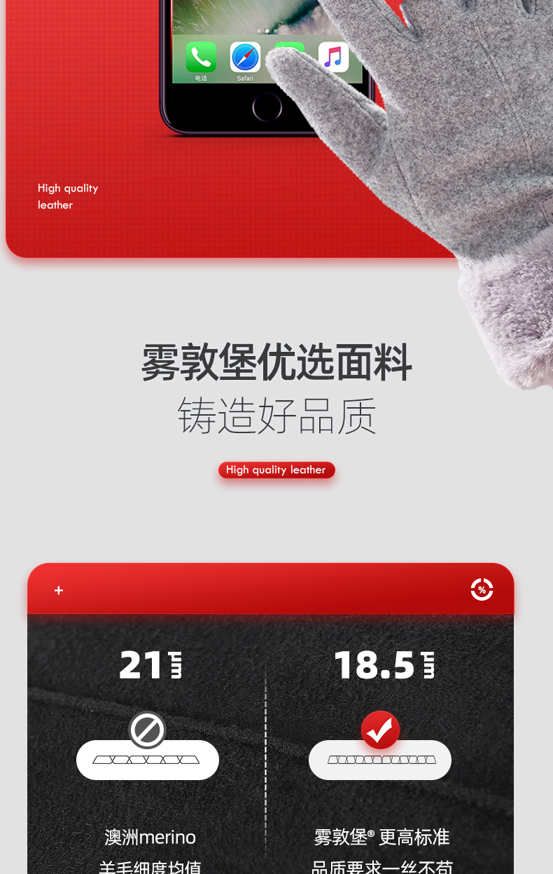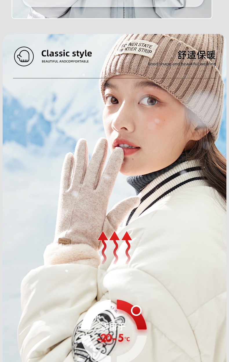【冬天不怕冷】雾敦堡WODONBLE仿羊绒抗风手套指尖触屏仿羊毛材质内胆加绒升级加厚立体剪裁修饰手型更舒适