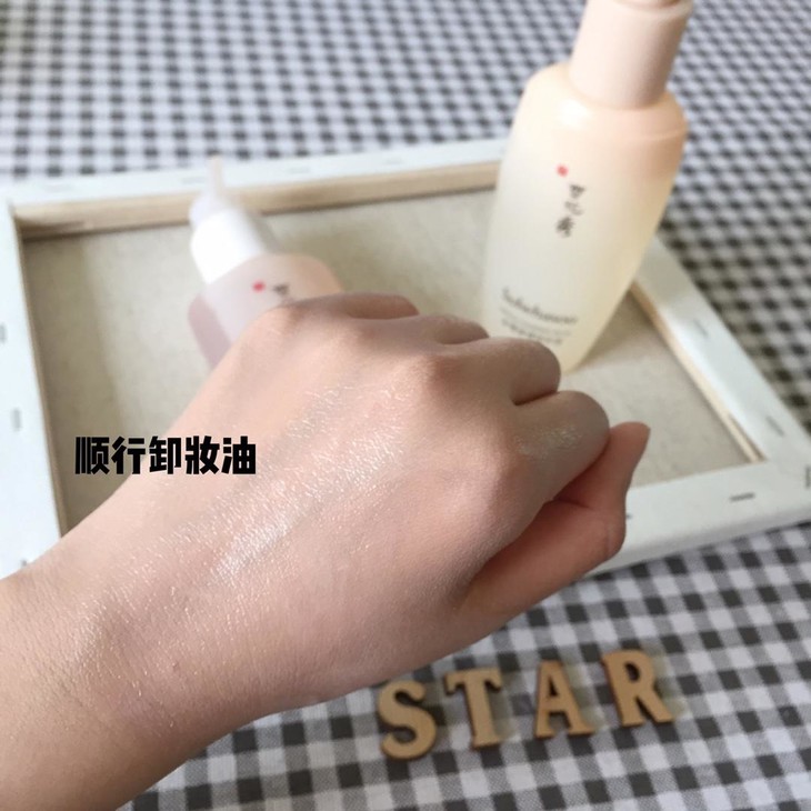 雪花秀顺行卸妆油👍雪花秀顺行卸妆油是可以🙅彻底净化并清洁肌肤的优质草本卸妆油,高效❌清除彩妆及毛孔残留污垢。👀凡是粉底,隔离,bb,防晒,气垫,必须卸妆油第一步☝,然后才是洗面奶~由内而外全面净化🤯,独特柔软滑嫩质感👼,连娇嫩的眼部和👄唇部肌肤也适用。淡淡的中药味哦🌿,温和洁净,卸的干净却不紧绷🍃,具有保湿效果适合任何肤质。用量很省♻,细腻的泡沫,效果非常好~