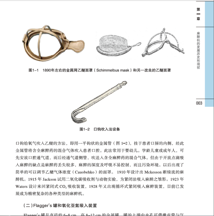 从20世纪50年代末开始,上海交通大学医学院附属r济医院麻醉科致力于麻醉机的临床应用研究,参与了从上海方浜路陶根记弄堂工厂到上海医疗器械四厂和上海医疗设备厂,以及90年代初成立的德国Drager与上海医疗器械股份有限公司合资的工厂生产的各种麻醉机的临床试用和产品鉴定。1987年孙大金教授主持上海市麻醉学会期问,在上海医学会和上海医疗设备厂的支持下主编了《呼吸器与麻醉机》专著。多年来我们参与了伞国麻醉机与呼吸机标准的制定,我们还编写了《现代麻醉学》第3、4版以及《当代麻醉学》第1、2版的麻醉机与呼吸机章节。几十年大量的临床实践和学术研讨,在麻醉机与呼吸机的结构、原理和临床应用方面积累了丰富的经验。