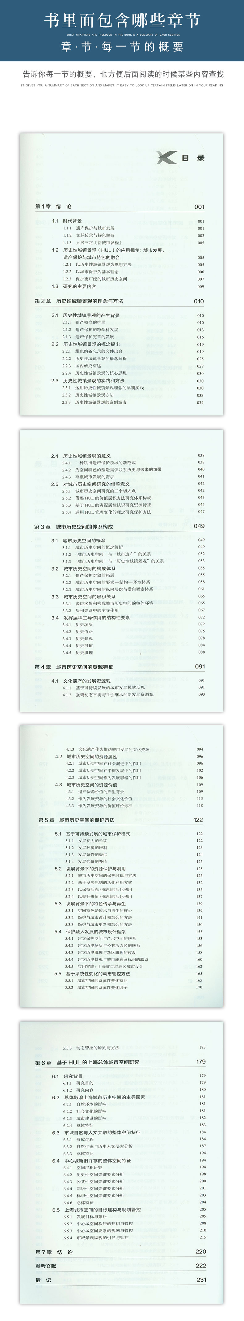 本书首先对历史性城镇景观的产生背景、文件概念、方法实践、思想理念进行了系统梳理与深入研究,提出历史性城镇景观对城市发展、城市特色以及遗产保护三者融合的积极意义,以及对城市历史空间研究的三个切入点,即从历史层积的关系研究城市历史空间的构成、从发展资源的角度研究城市历史空间的价值、以管控空间变化为手段研究城市历史空间的保护与发展。最后,在上海总体城市设计研究中对前述理论及方法进行实际应用,作为城市历史空间保护与地区发展相融合的试点案例。