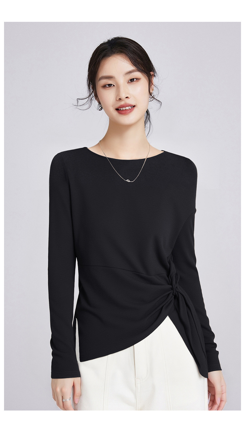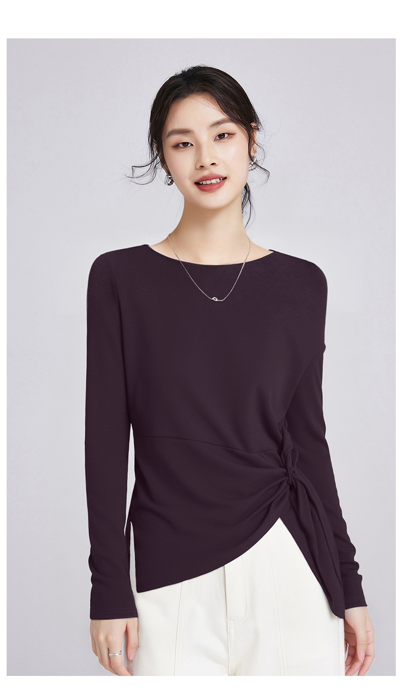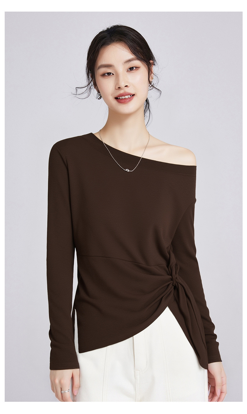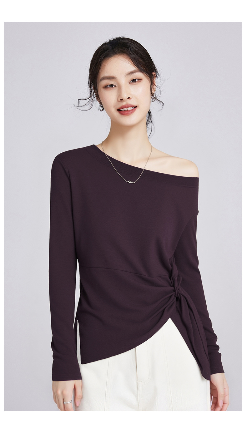 「自j」全新升级【铂金会员119/天猫159/差价40】(45508)洛诗琳一字肩长袖T恤2025秋季不规则开叉收腰打底衫上衣