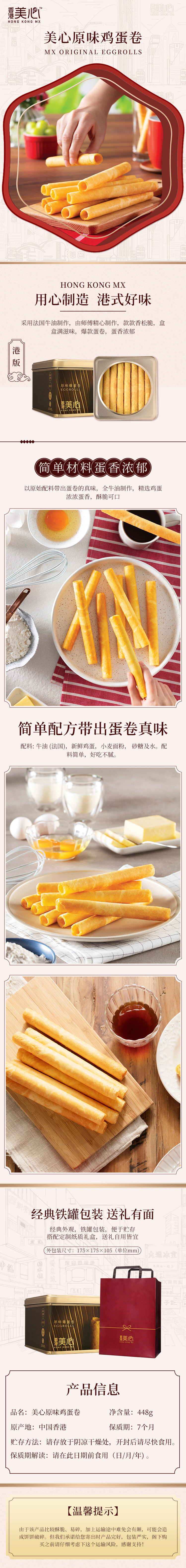 现货 中国香港进口特产美心蛋卷原味鸡蛋卷饼干448g零食手工年货
