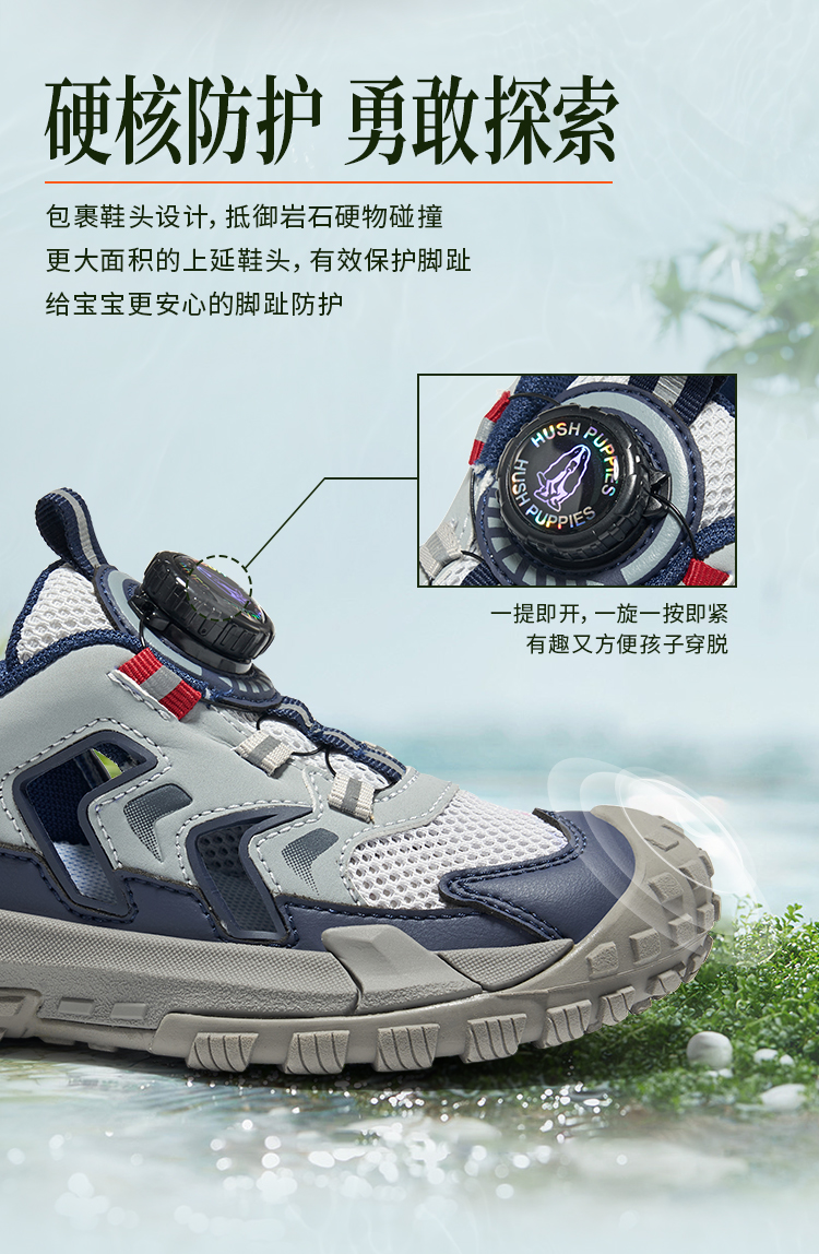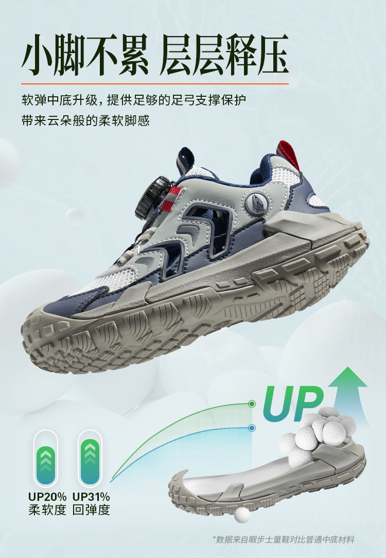 测评优品-暇步士儿童休闲运动鞋 夏季 户外 网面 跑鞋 柔软 免系鞋带