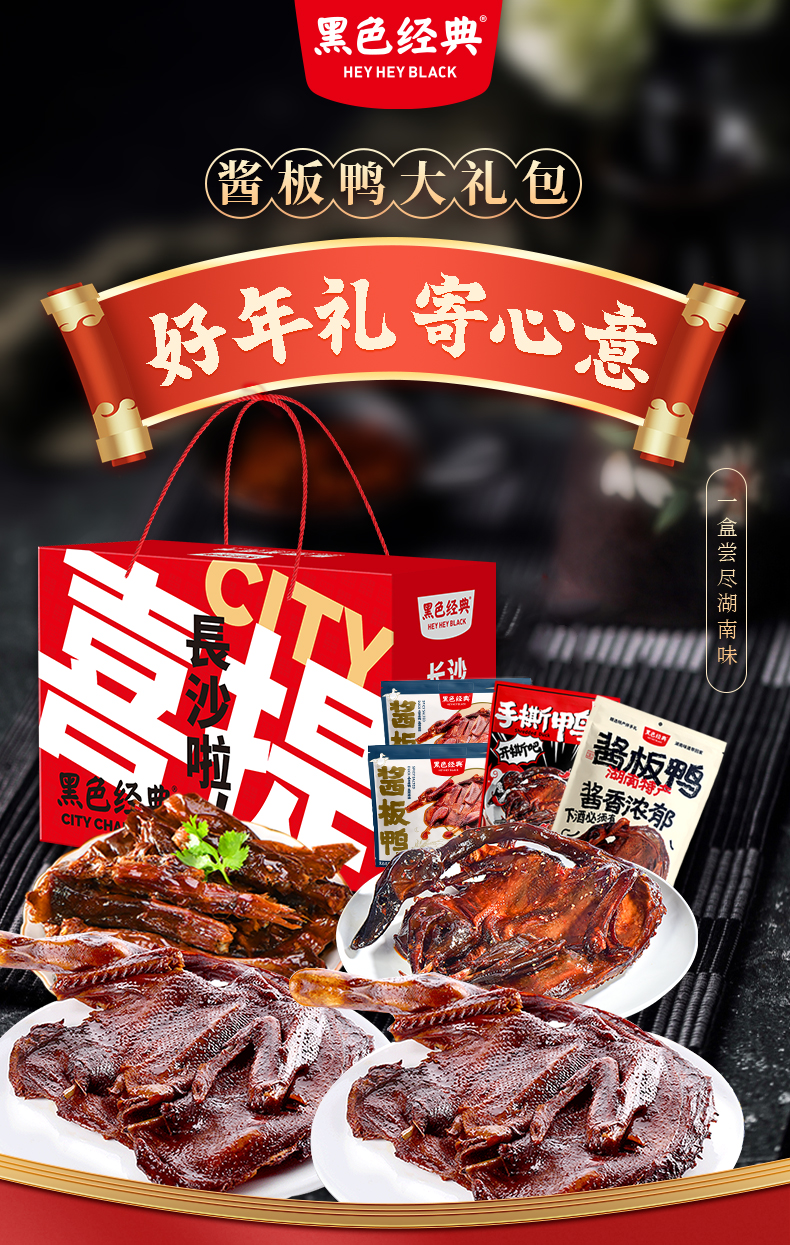 【酱板鸭大礼包】黑色经典湖南特产 内含4袋整只酱板鸭 3种口味一盒畅享