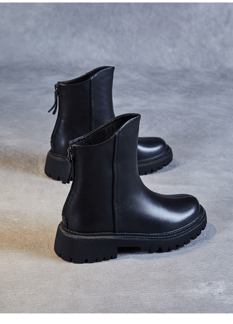头层牛皮粗跟,厚底英伦风马丁靴系带中筒短靴ZM233530