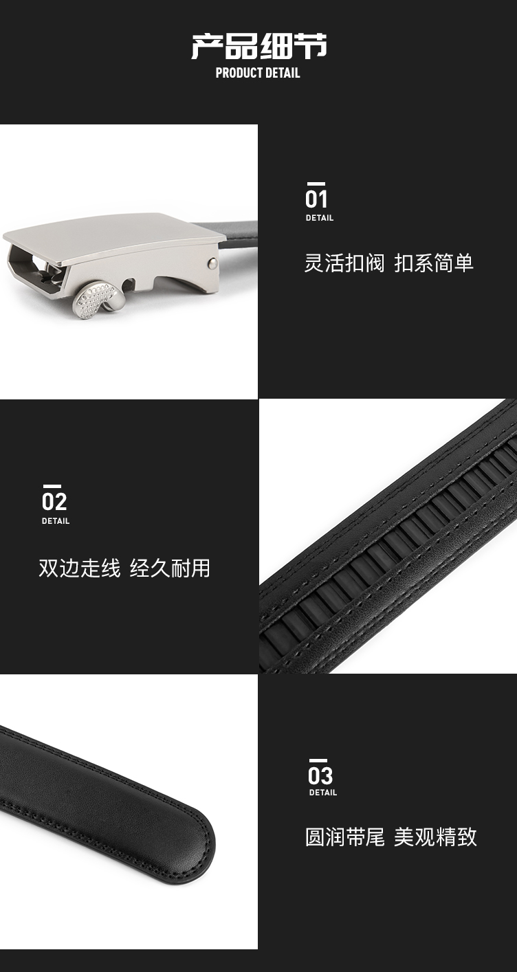 【白扣头牛皮腰带】男士自动扣快速穿脱皮腰带 牛皮带身柔韧耐折防断耐用