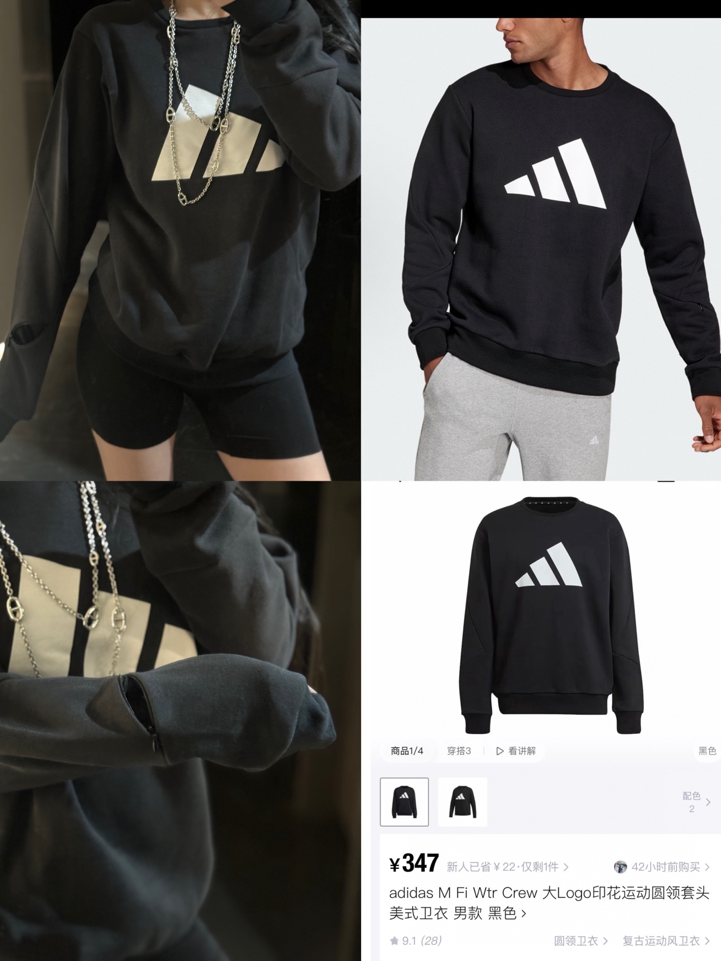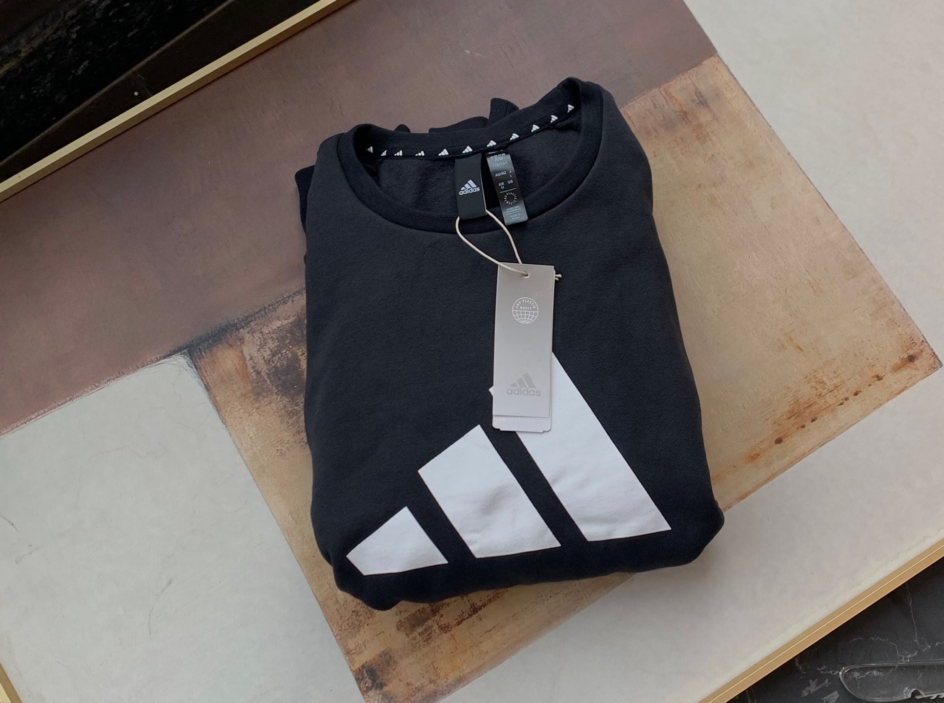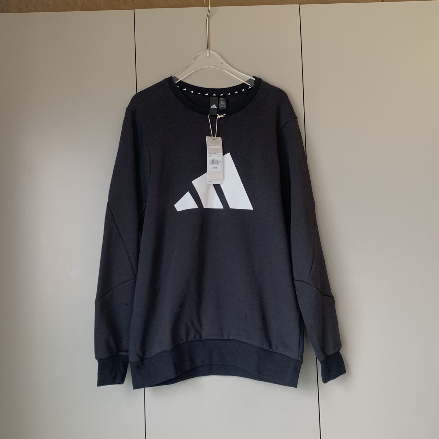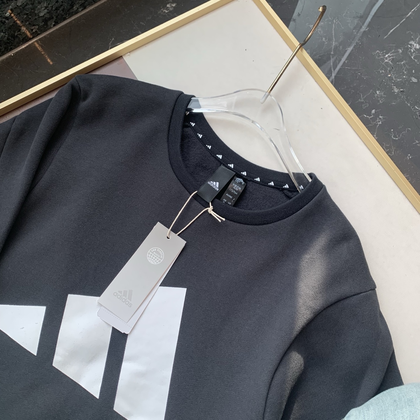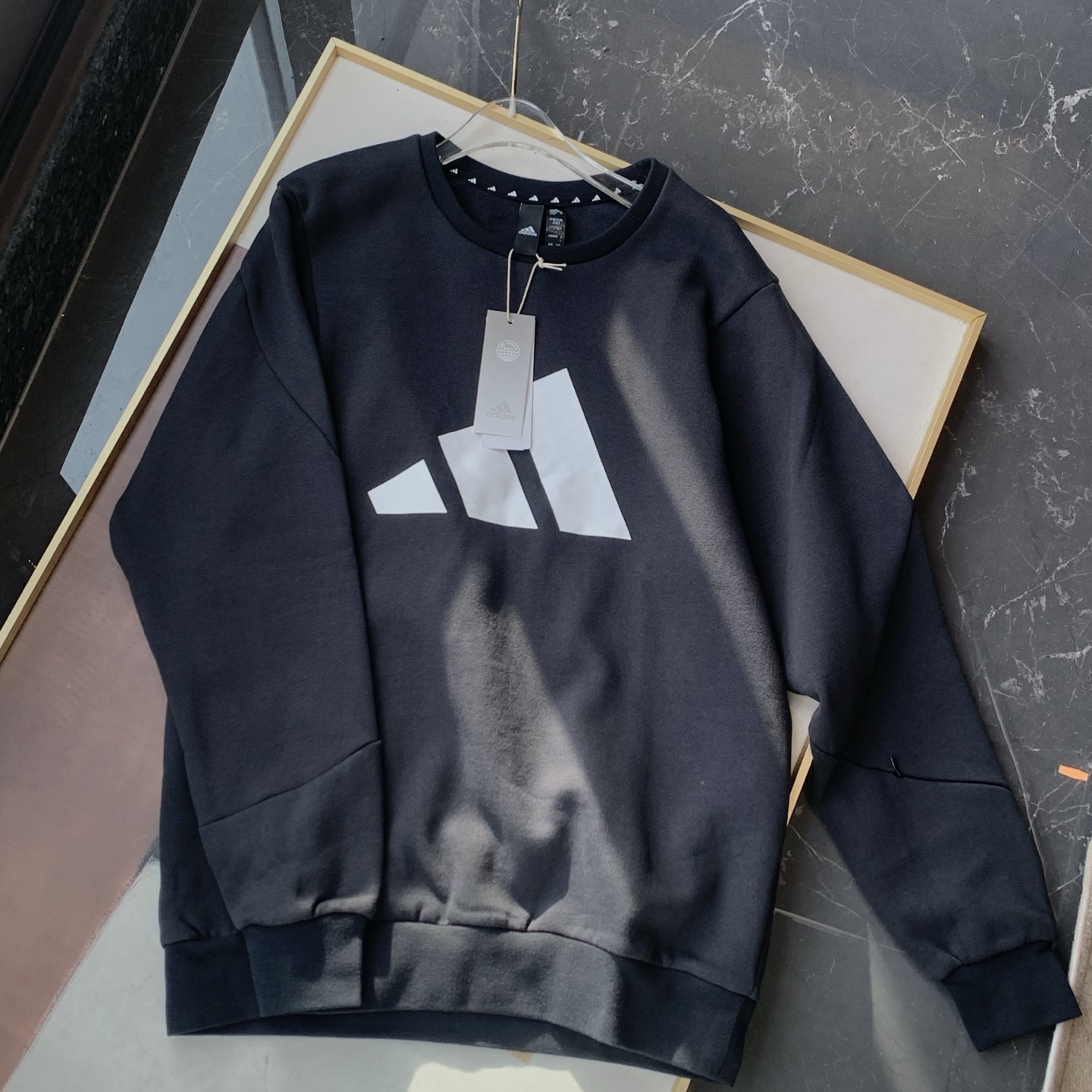 a&d 加细绒款卫衣🔥 M Fi Wtr Crew 大Logo印花加绒圆领套头美式卫衣 当运动潮流遇上暖心质感,这款adi&das M Fi Wtr Crew大Logo印花运动圆领套头卫衣便是答案。以经典黑色为主调,👉胸前巨型白色品牌Logo极具视觉冲击力,瞬间点亮造型,美式街头风格拉满,采用棉混仿面料,内里加绒设计,在微凉时节为你筑起温暖屏障,兼顾舒适亲肤与保暖性能,让你在户外行走、运动健身或日常通勤时,都能被暖意包裹。细节处更见巧思,袖口隐藏口袋,可收纳小物件,实用又别致,为整体设计增添几分惊喜。圆领版型简约大气,不挑身形,轻松适配各种风格的穿搭者,蕾姐M效果⚠️M码80-140斤以内⚠️