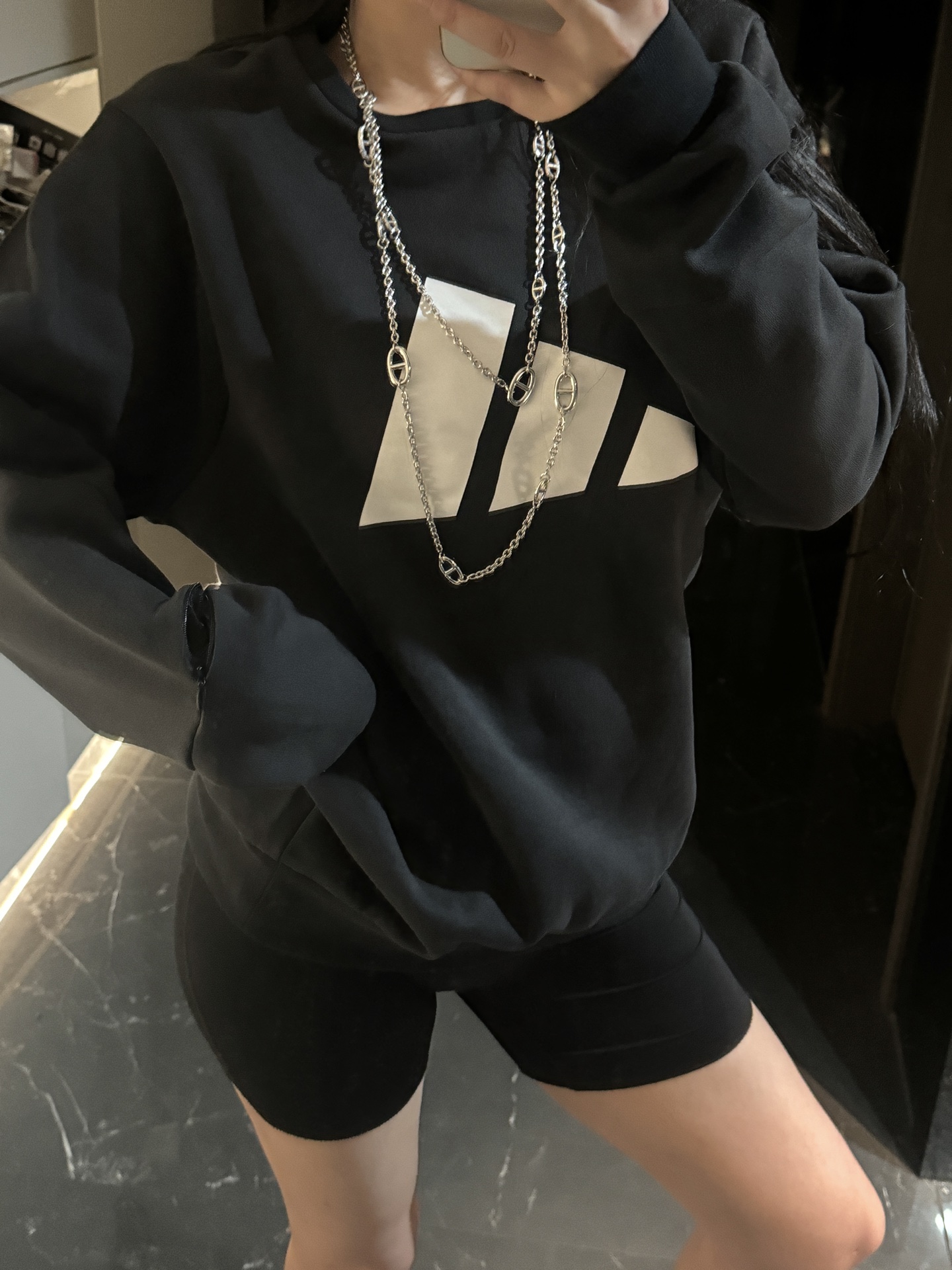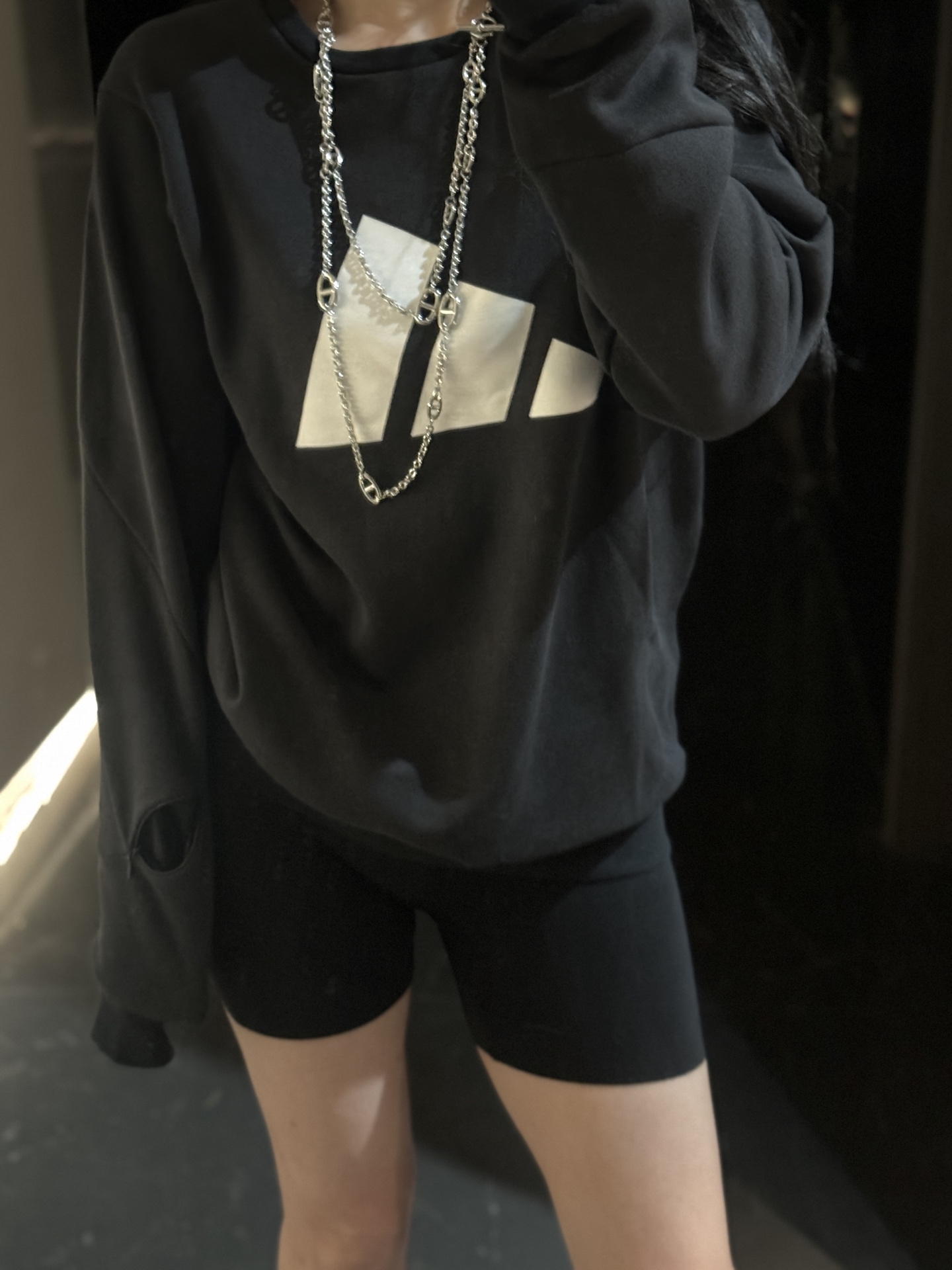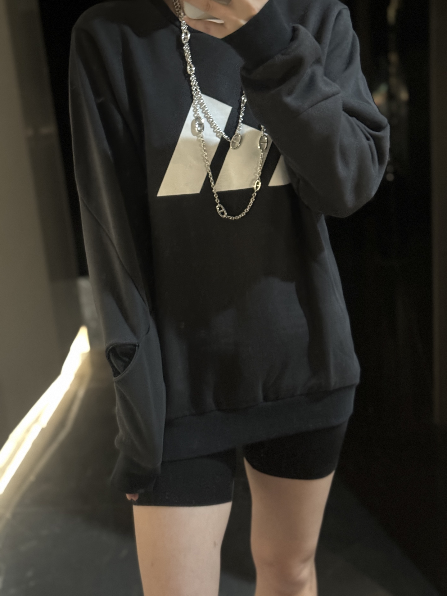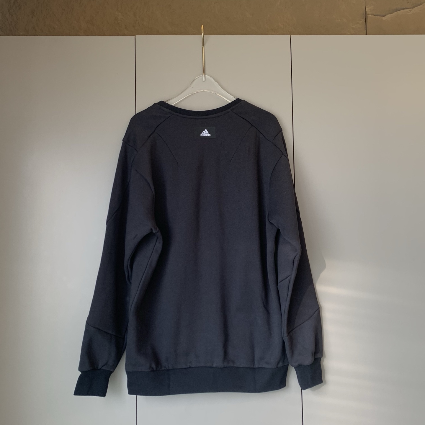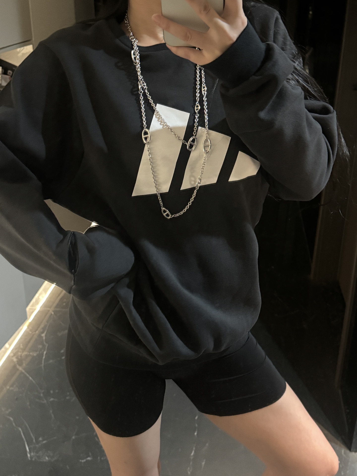 a&d 加细绒款卫衣🔥 M Fi Wtr Crew 大Logo印花加绒圆领套头美式卫衣 当运动潮流遇上暖心质感,这款adi&das M Fi Wtr Crew大Logo印花运动圆领套头卫衣便是答案。以经典黑色为主调,👉胸前巨型白色品牌Logo极具视觉冲击力,瞬间点亮造型,美式街头风格拉满,采用棉混仿面料,内里加绒设计,在微凉时节为你筑起温暖屏障,兼顾舒适亲肤与保暖性能,让你在户外行走、运动健身或日常通勤时,都能被暖意包裹。细节处更见巧思,袖口隐藏口袋,可收纳小物件,实用又别致,为整体设计增添几分惊喜。圆领版型简约大气,不挑身形,轻松适配各种风格的穿搭者,蕾姐M效果⚠️M码80-140斤以内⚠️