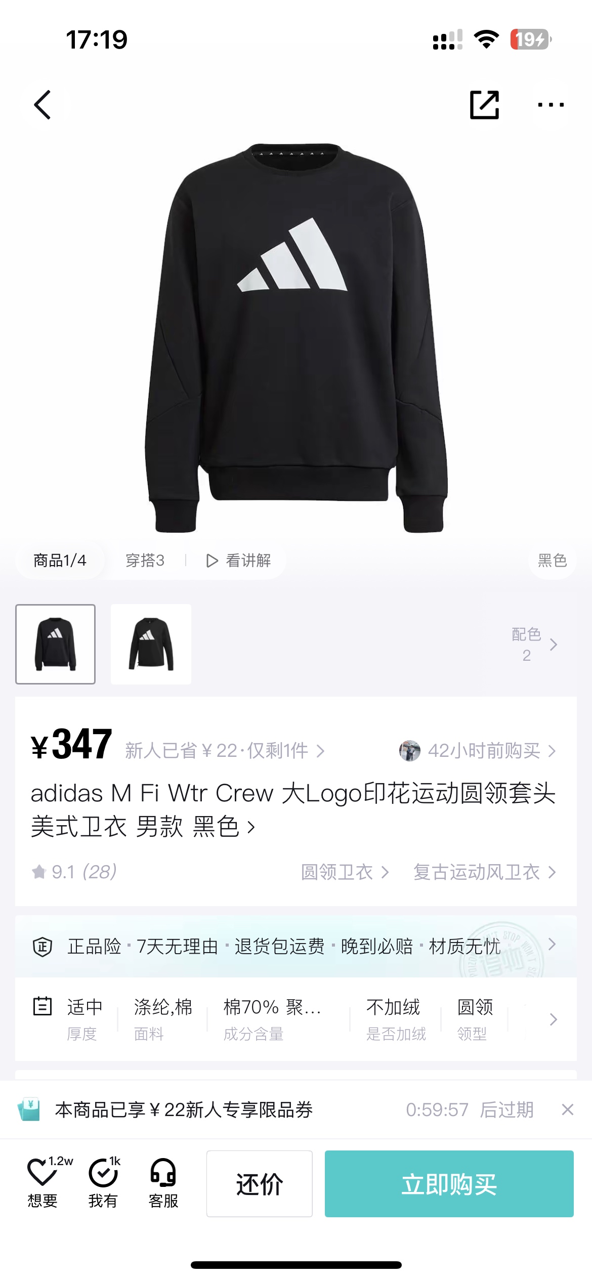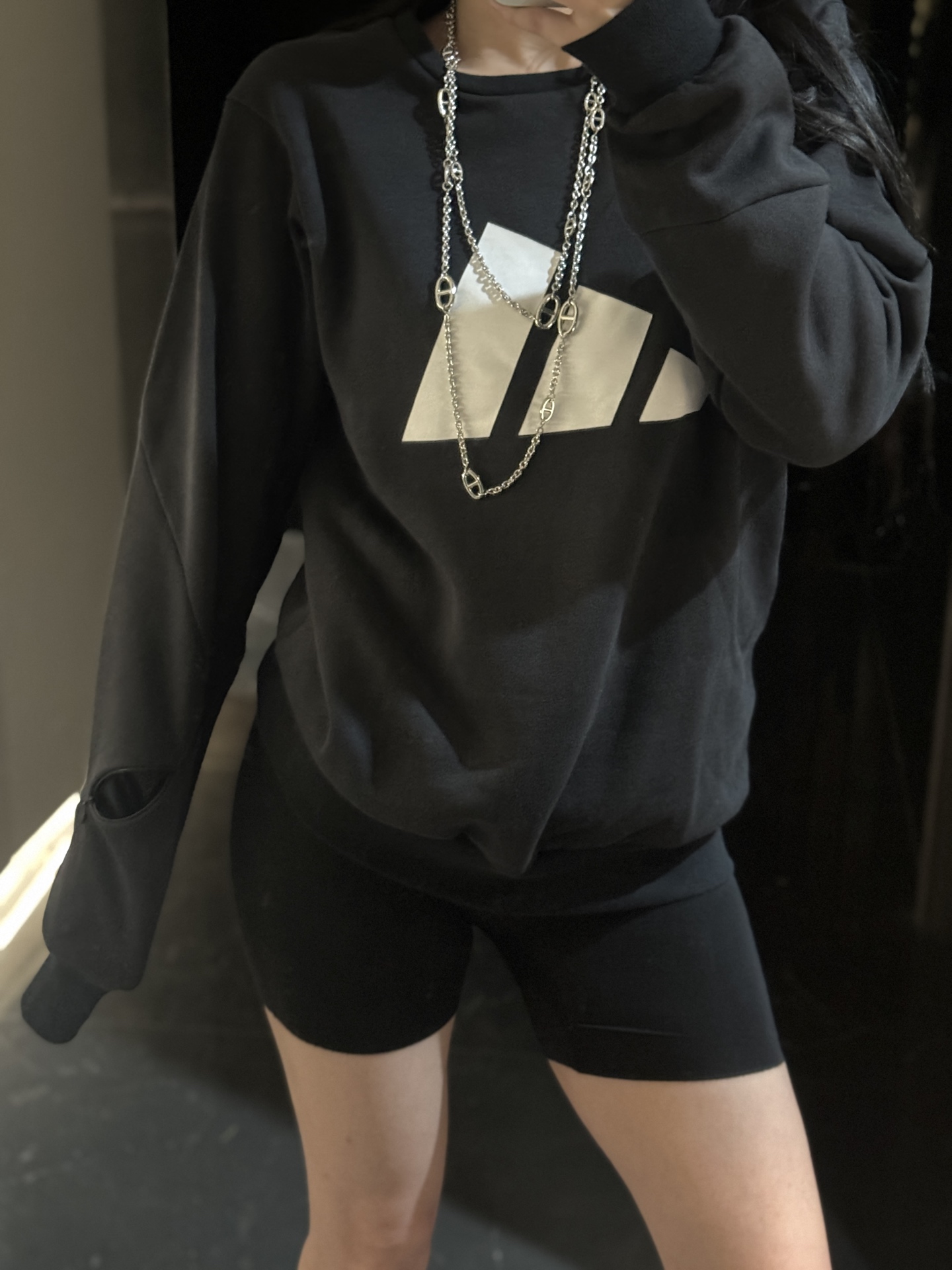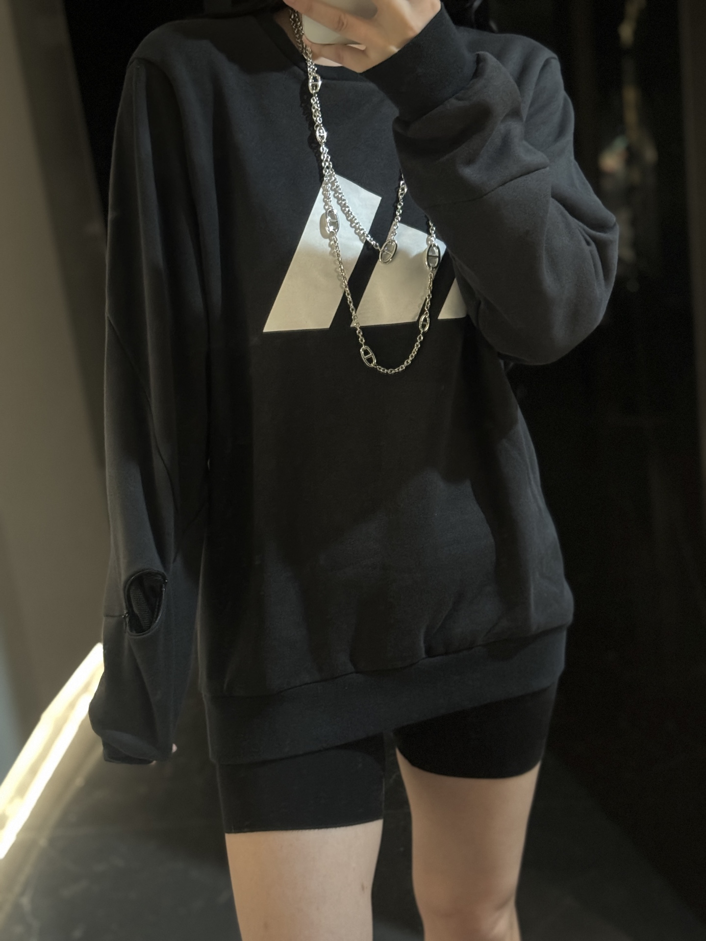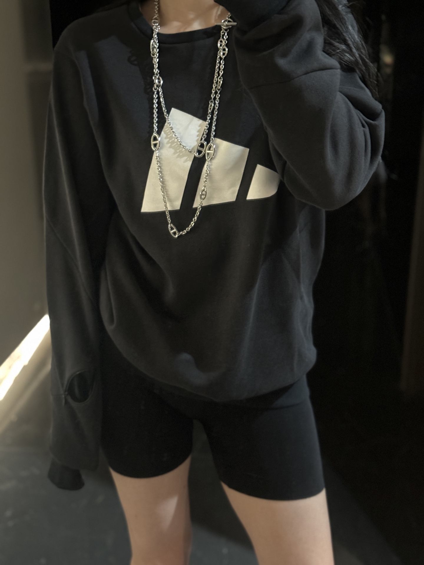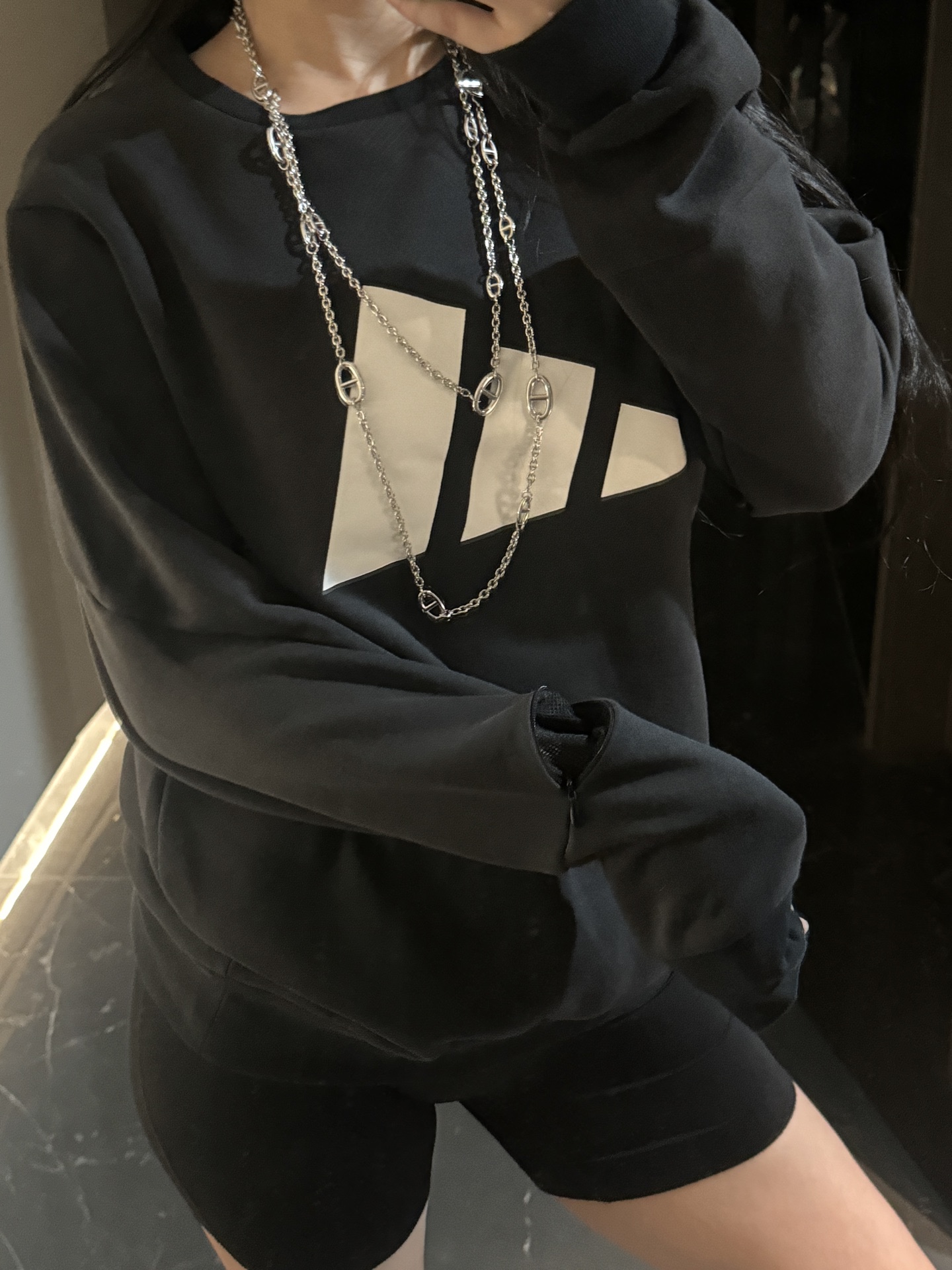 a&d 加细绒款卫衣🔥 M Fi Wtr Crew 大Logo印花加绒圆领套头美式卫衣 当运动潮流遇上暖心质感,这款adi&das M Fi Wtr Crew大Logo印花运动圆领套头卫衣便是答案。以经典黑色为主调,👉胸前巨型白色品牌Logo极具视觉冲击力,瞬间点亮造型,美式街头风格拉满,采用棉混仿面料,内里加绒设计,在微凉时节为你筑起温暖屏障,兼顾舒适亲肤与保暖性能,让你在户外行走、运动健身或日常通勤时,都能被暖意包裹。细节处更见巧思,袖口隐藏口袋,可收纳小物件,实用又别致,为整体设计增添几分惊喜。圆领版型简约大气,不挑身形,轻松适配各种风格的穿搭者,蕾姐M效果⚠️M码80-140斤以内⚠️