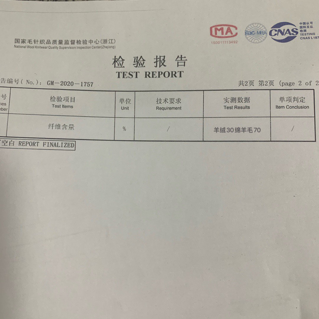检验报告先给大家,30%羊绒70%羊毛